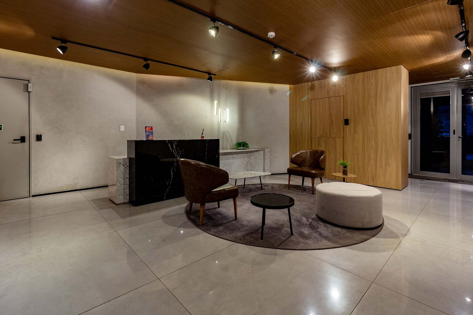 Espaço em um prédio moderno e de alto padrão.