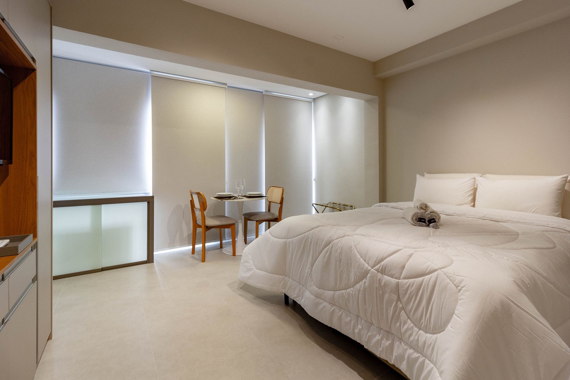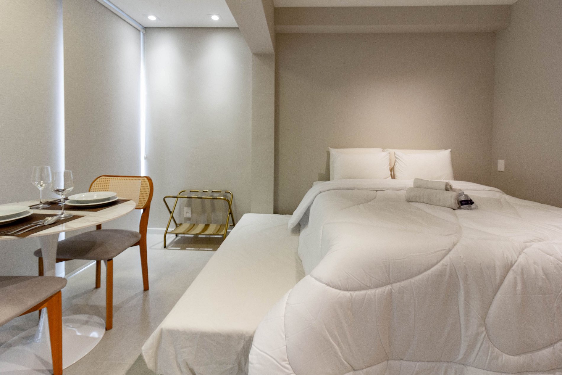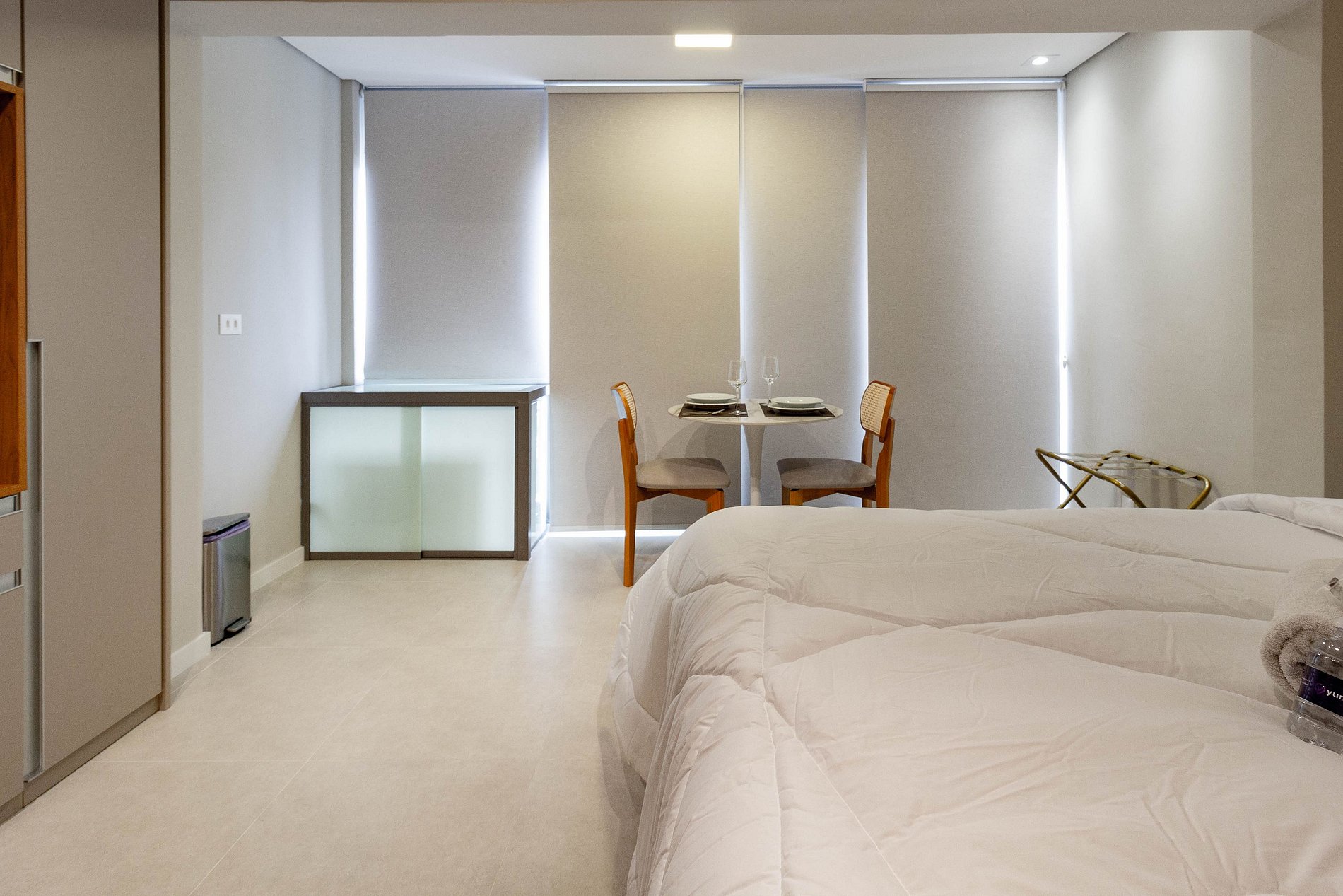 Sinta-se em casa! Nossa acomodação foi planejada com carinho para oferecer o máximo de conforto durante sua estadia. Disponibilizamos tudo o que você precisa: *Cama e Banho: Roupa de cama de linha hotel para noites de descanso premium. *Conectividade: Wi-Fi de alta velocidade e Smart TV. *Comodidades: Cozinha completa para suas refeições, ar-condicionado e ducha com água quente. Será um prazer recebê-lo!