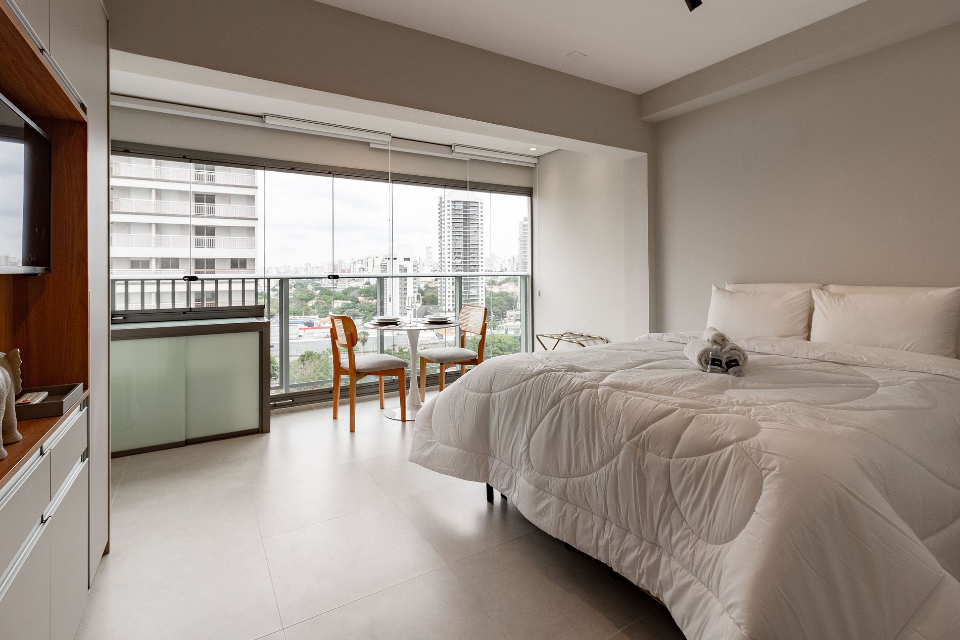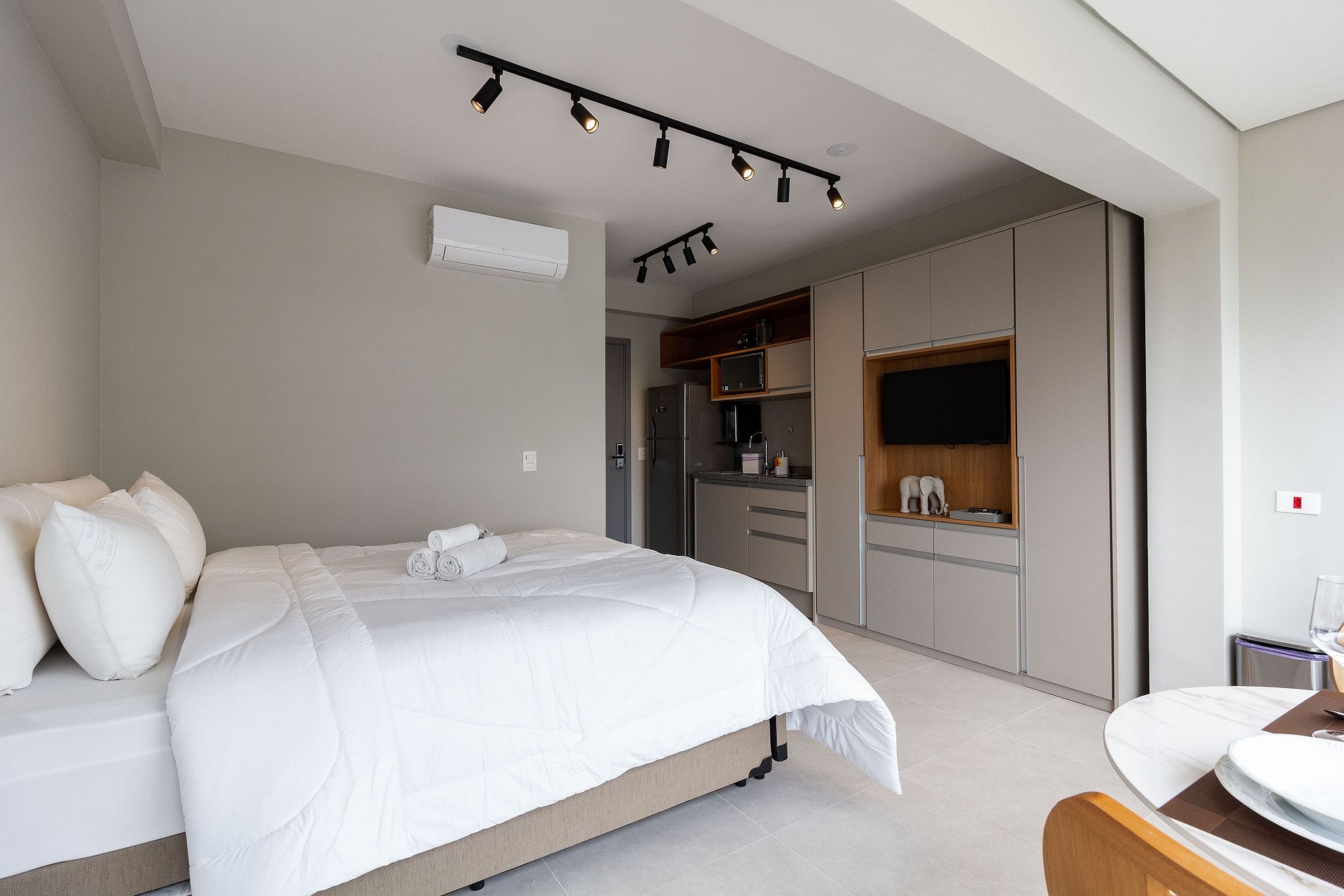 Sinta-se em casa! Nossa acomodação foi planejada com carinho para oferecer o máximo de conforto durante sua estadia. Disponibilizamos tudo o que você precisa: *Cama e Banho: Roupa de cama de linha hotel para noites de descanso premium. *Conectividade: Wi-Fi de alta velocidade e Smart TV. *Comodidades: Cozinha completa para suas refeições, ar-condicionado e ducha com água quente. Será um prazer recebê-lo!