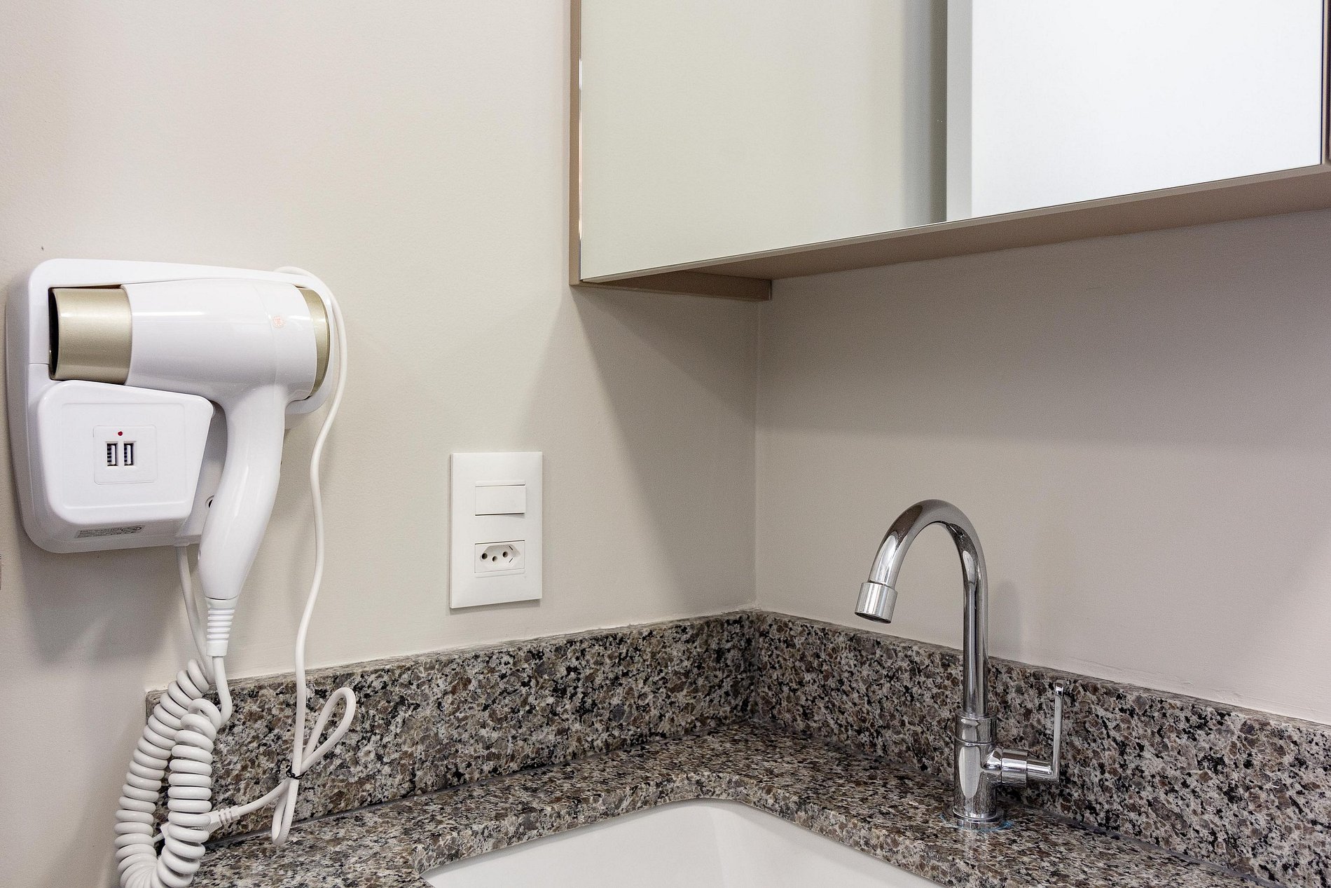 Tomada elétrica próxima à cama
