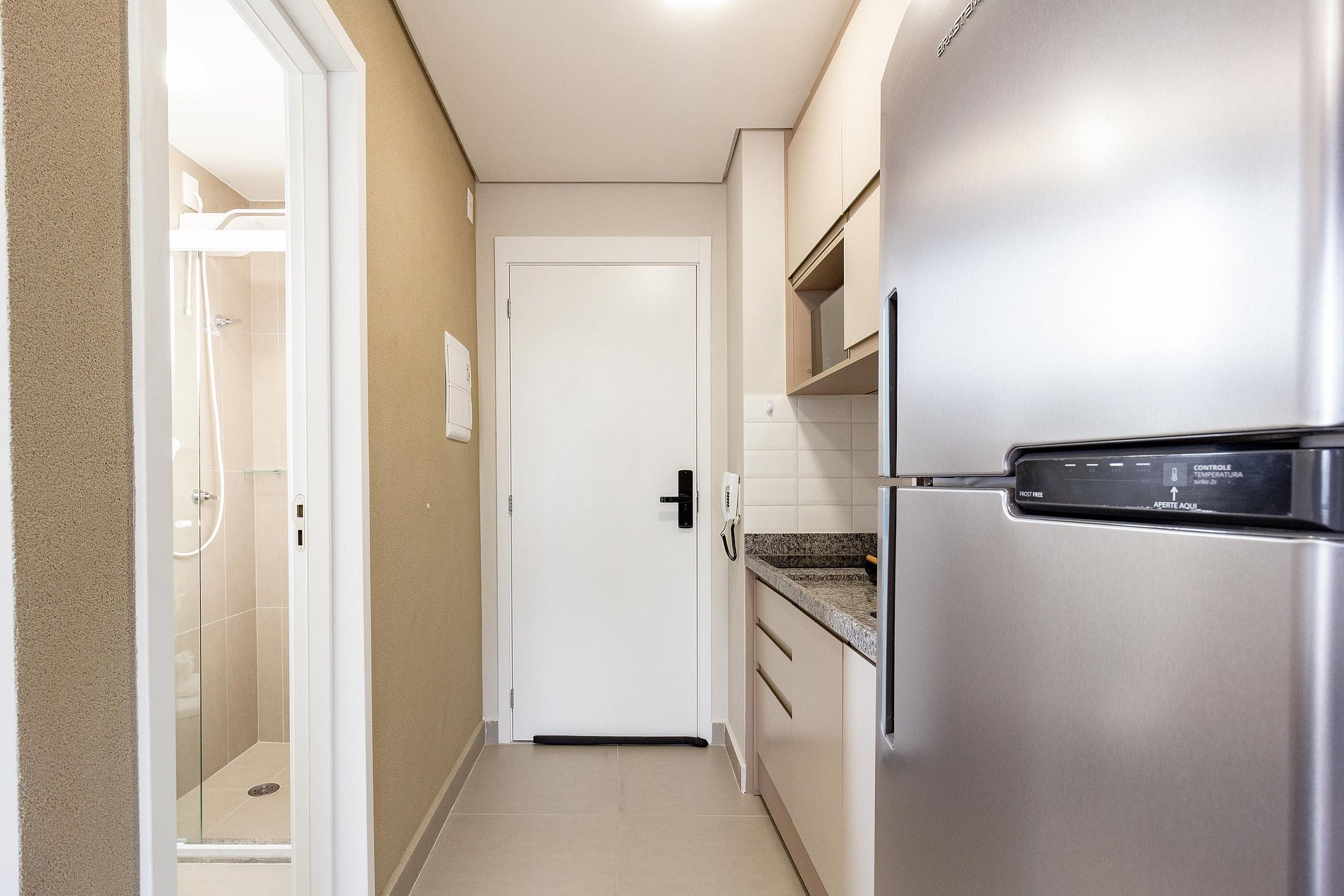 No dia do check-in será encaminhado: senha da fechadura eletrônica, dados do WI-FI e o número do apartamento