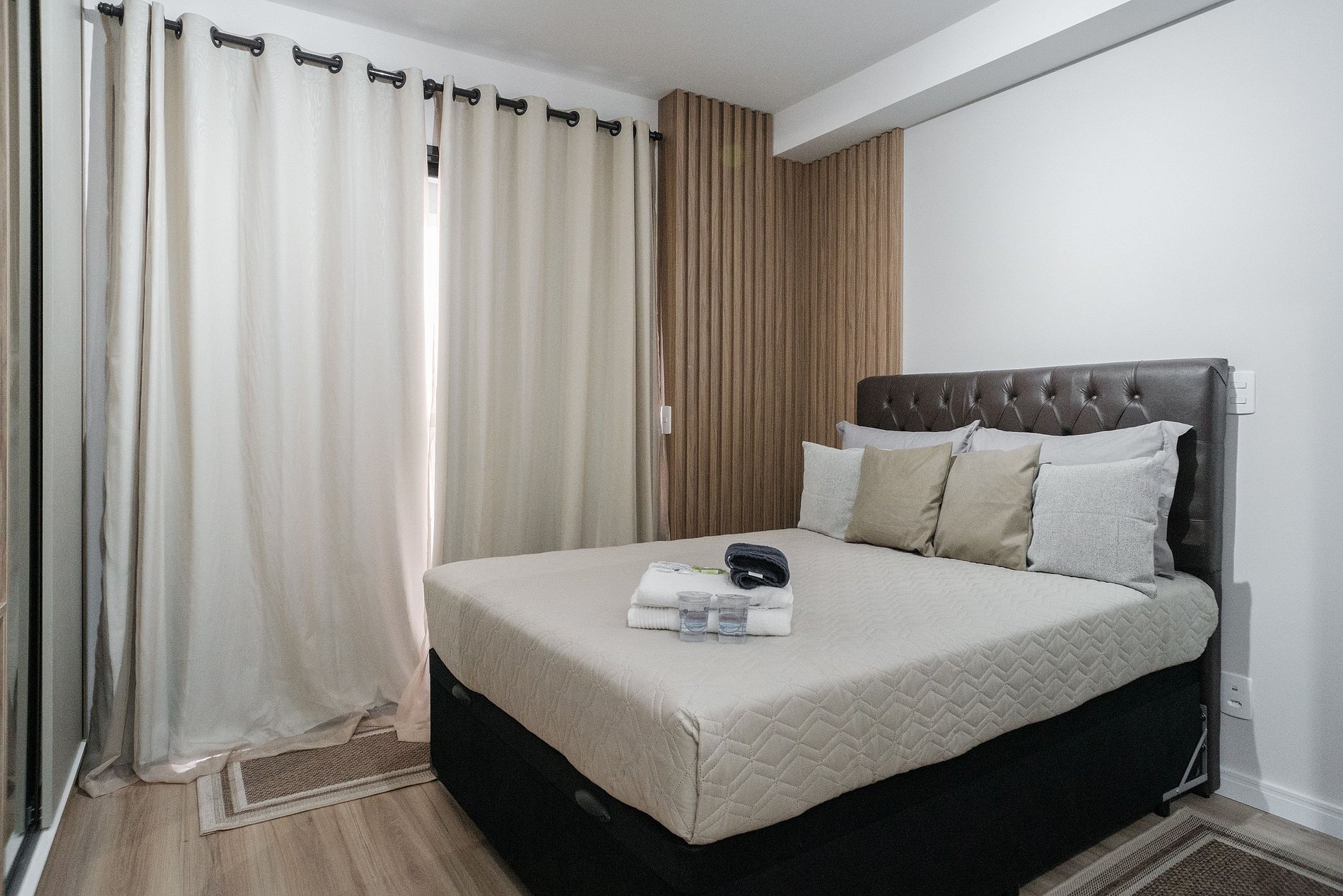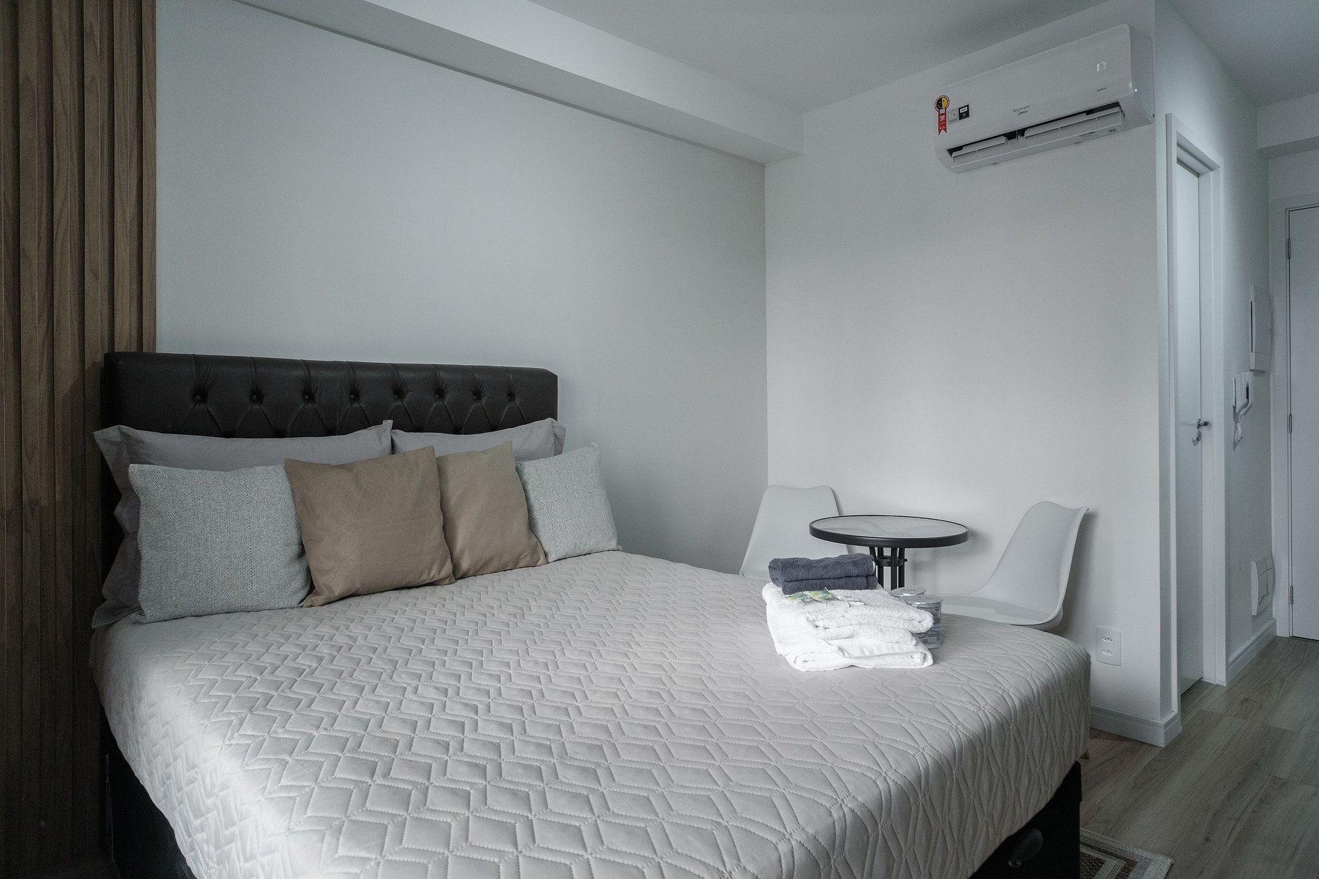 O hóspede encontrará um apartamento completo e com tudo que ele precisa dentro de um quarto: