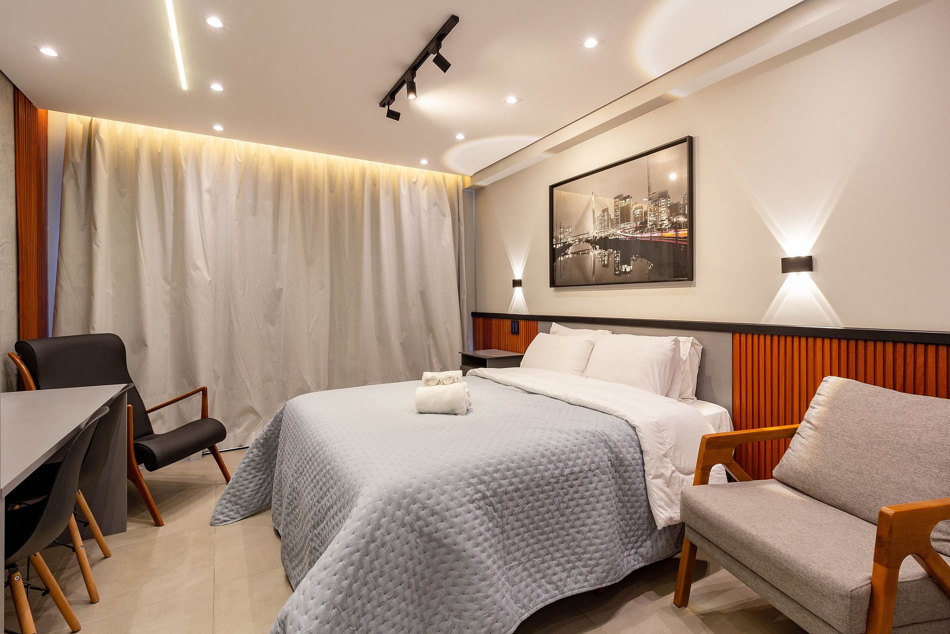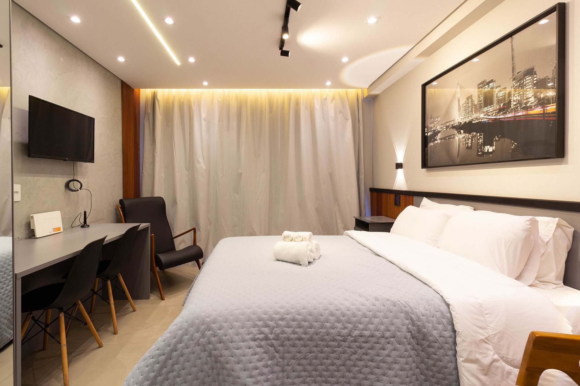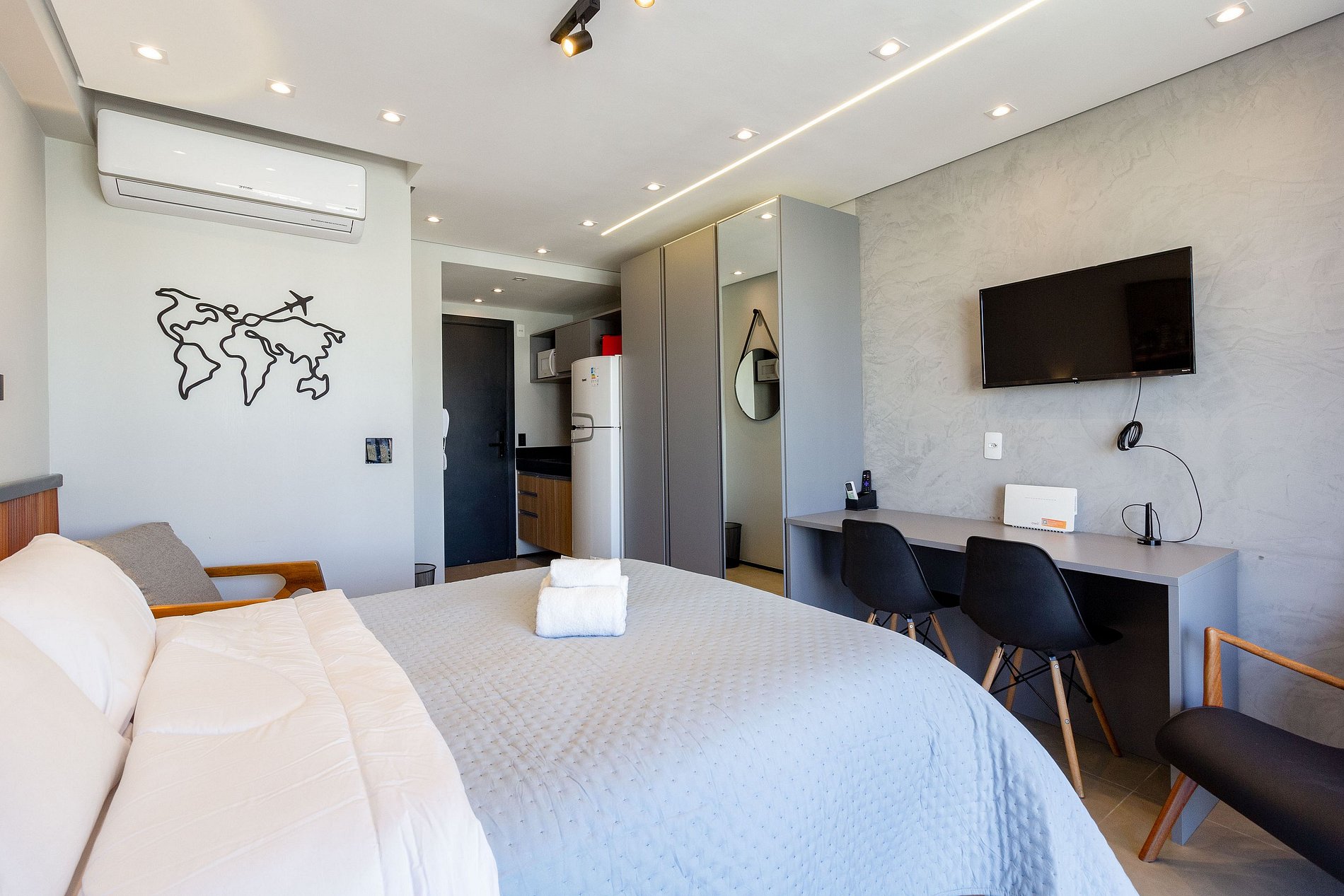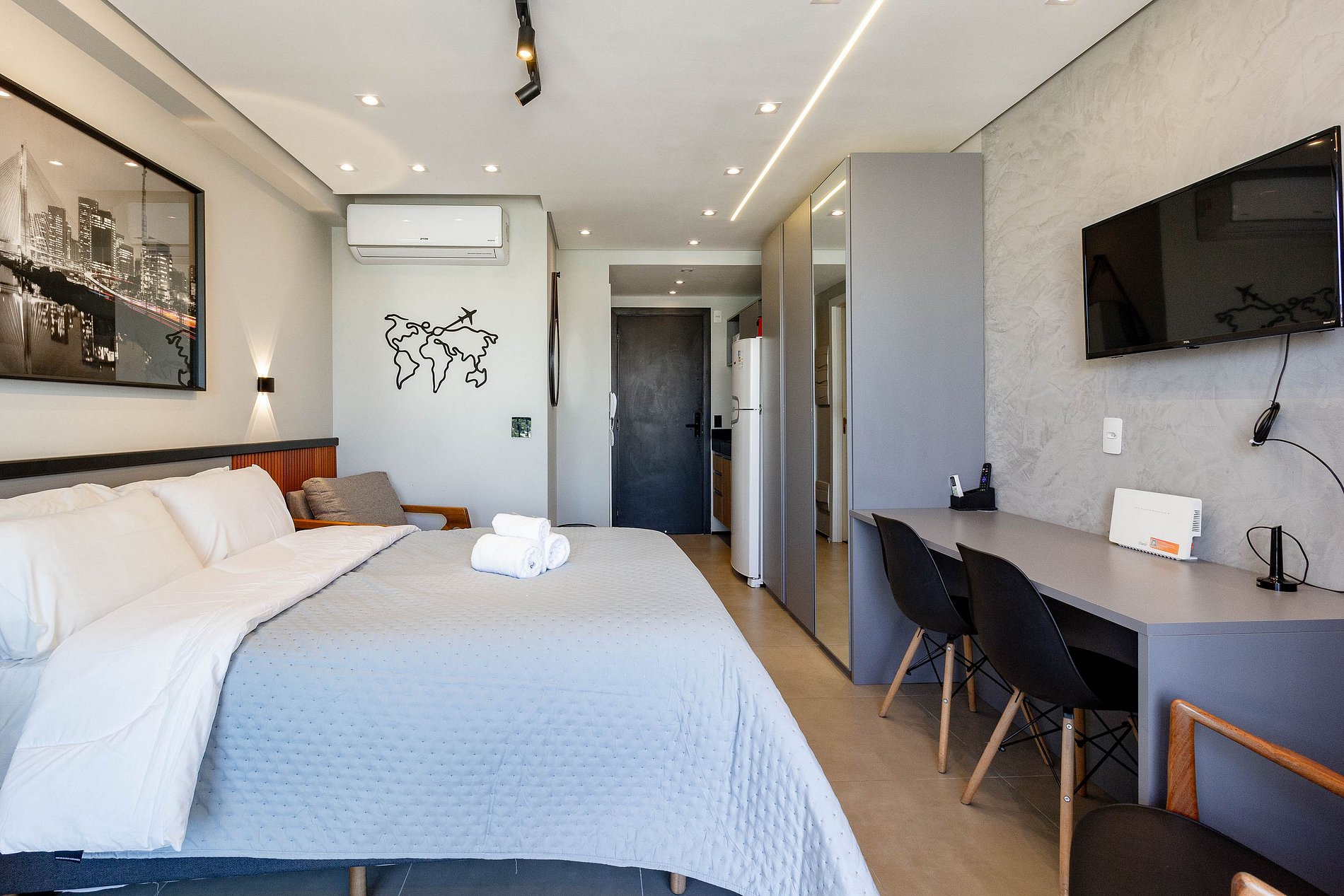 O espaço é novo, acolhedor, completo para tudo o que o hóspede precisar durante a estadia.