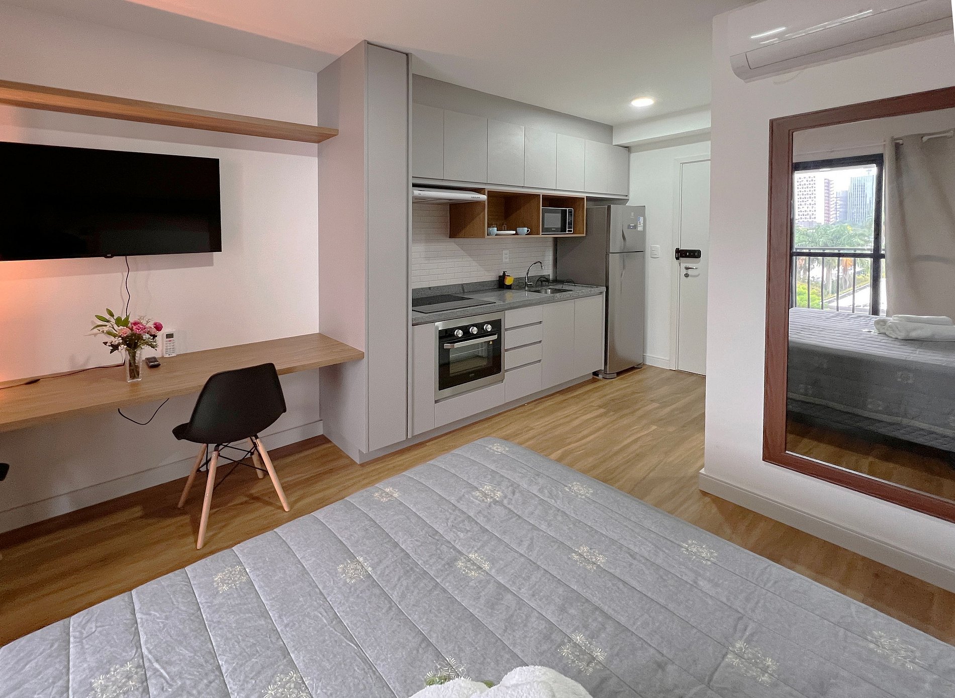 O apartamento conta com: roupa de cama, banho, TV Smart, WI-FI de alta velocidade, colchão confortável e cozinha completa e equipada.