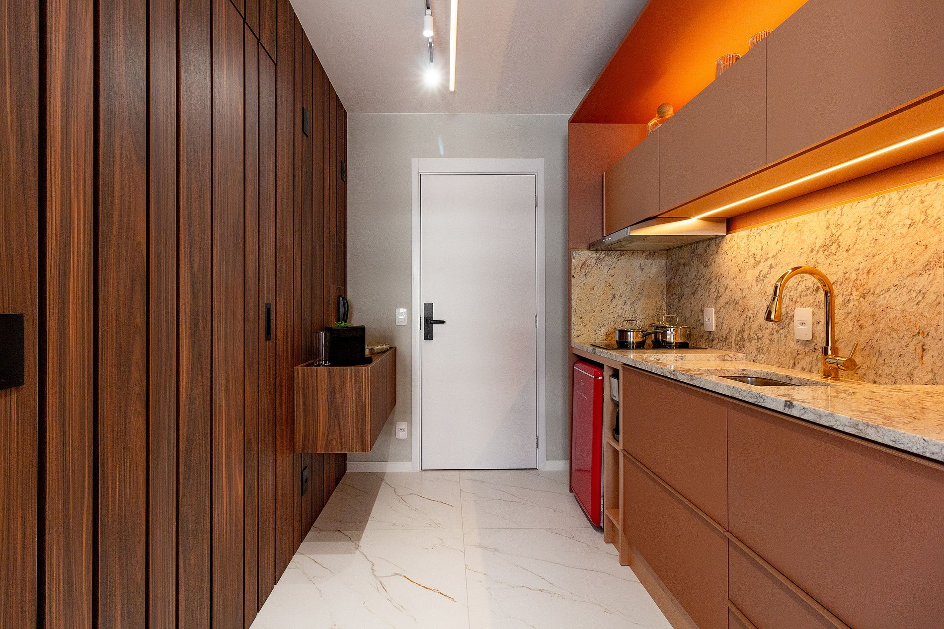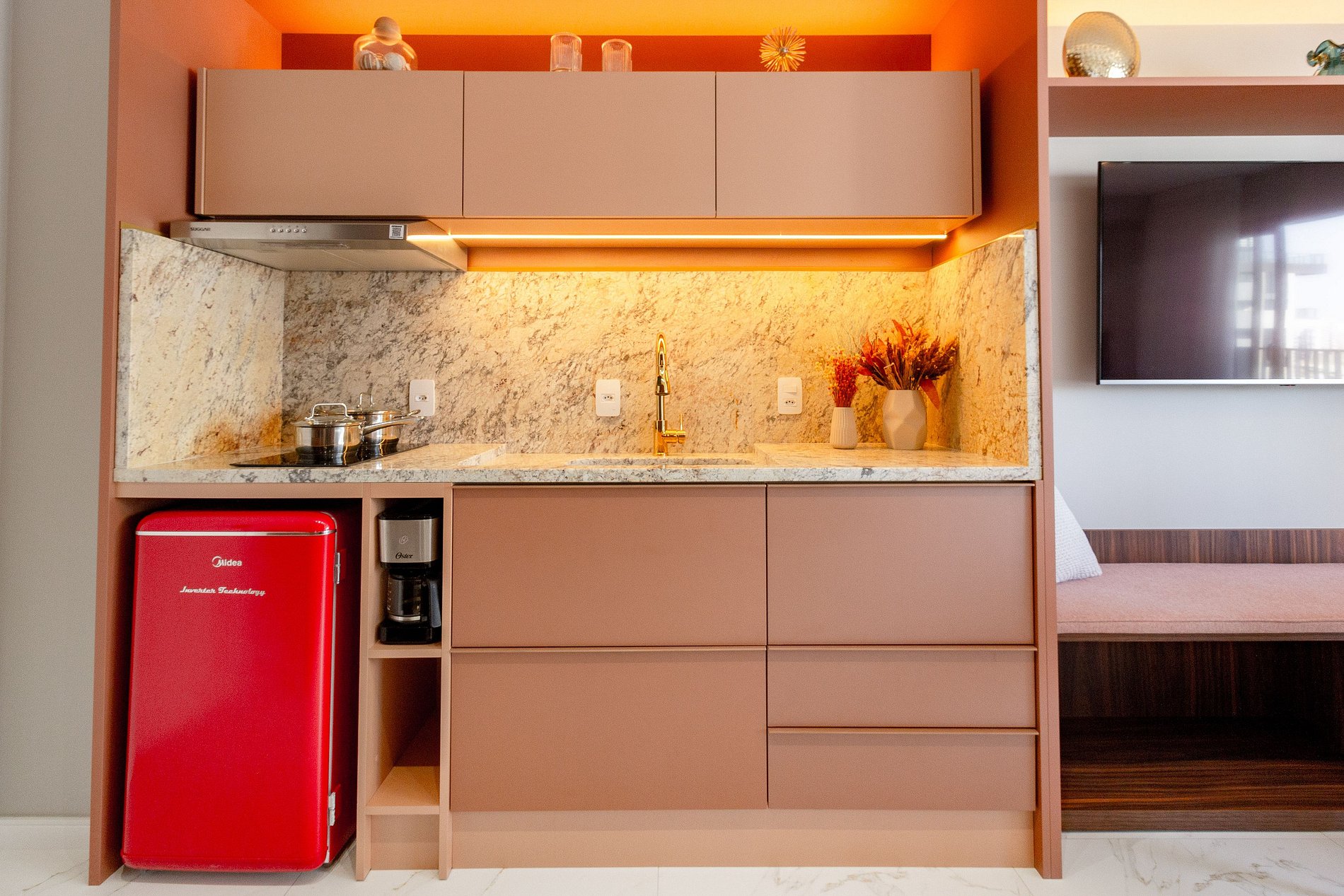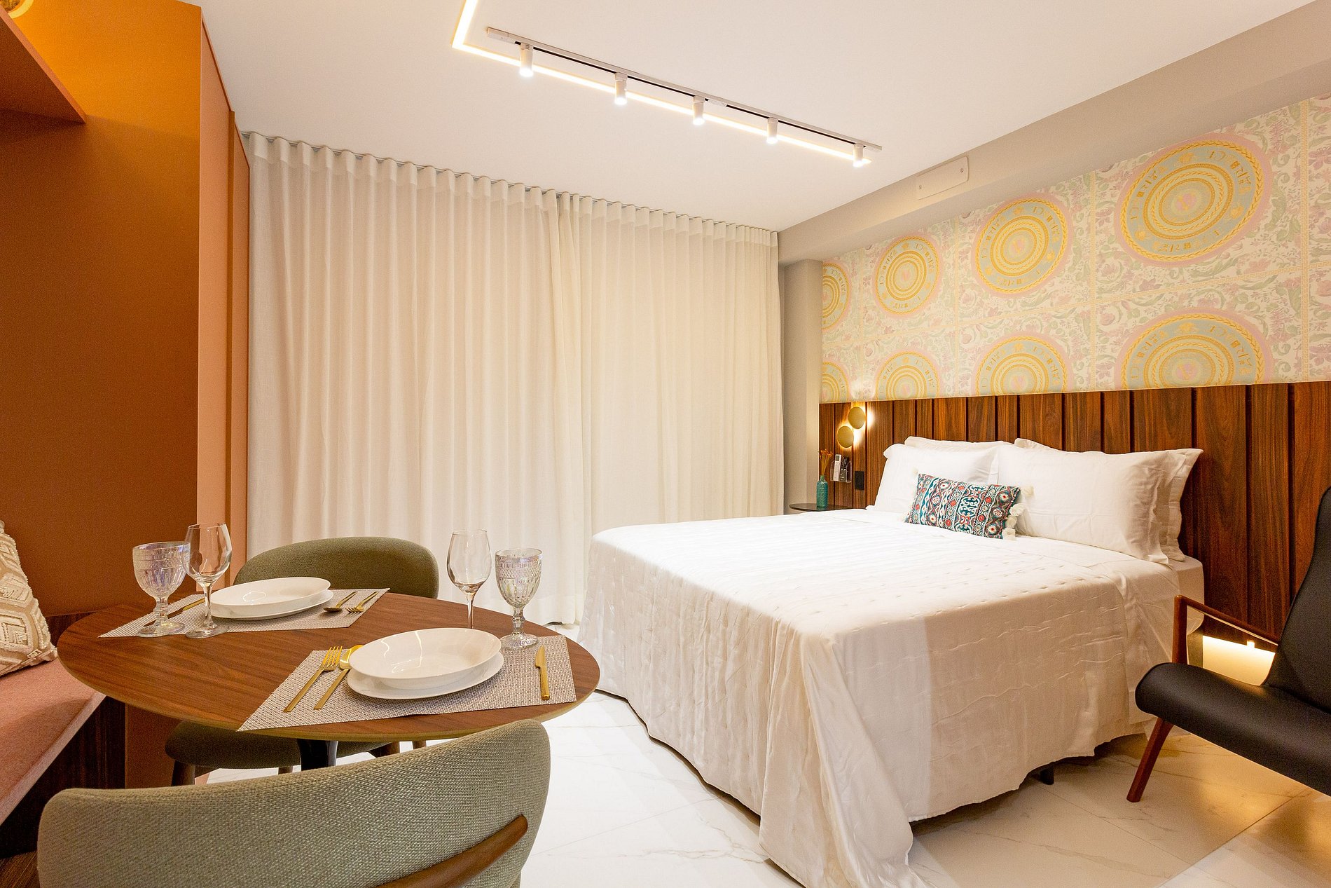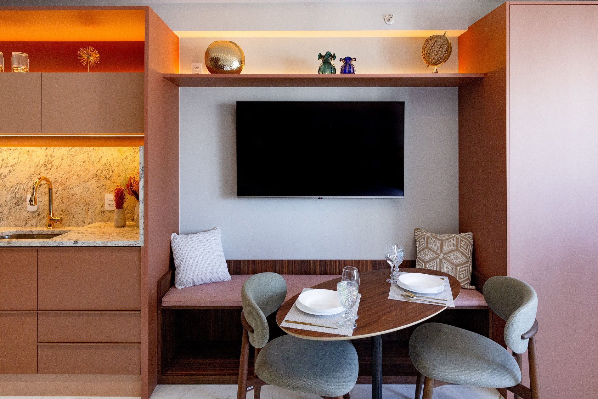 Este studio foi cuidadosamente planejado para oferecer uma experiência sofisticada e funcional em Moema. O ambiente combina design moderno com marcenaria de alto padrão, iluminação aconchegante e excelente aproveitamento de espaço, criando um refúgio urbano elegante e acolhedor.