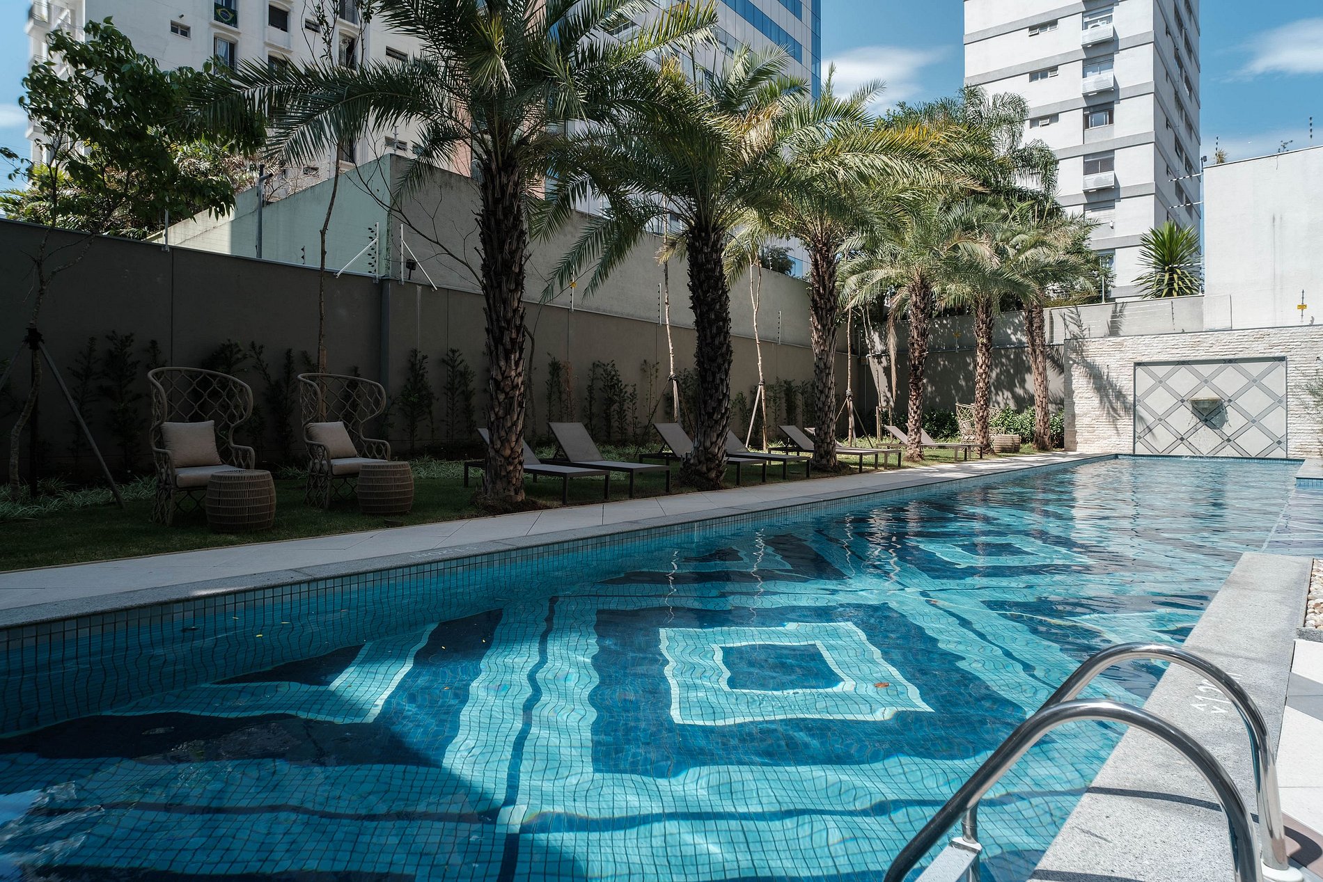 Hóspedes podem utilizar dos espaços comuns do prédio, como: academia, piscina compartilhada e sauna