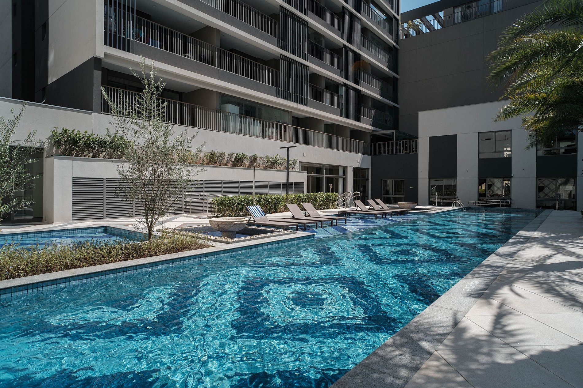 Hóspedes podem utilizar dos espaços comuns do prédio, como: academia, piscina compartilhada e sauna