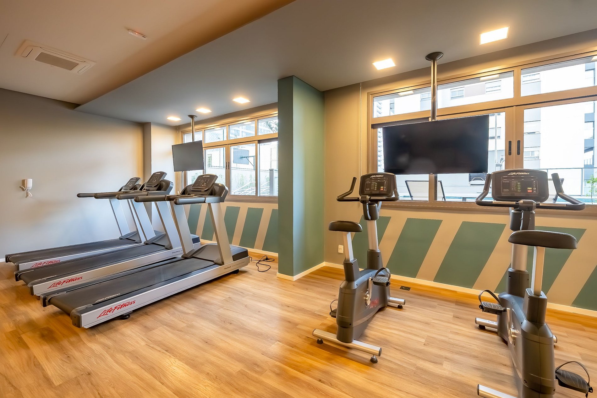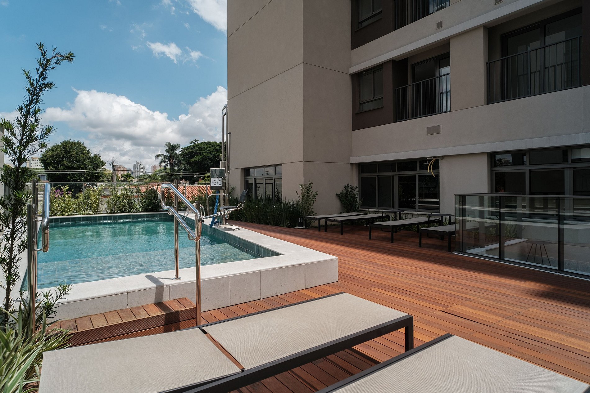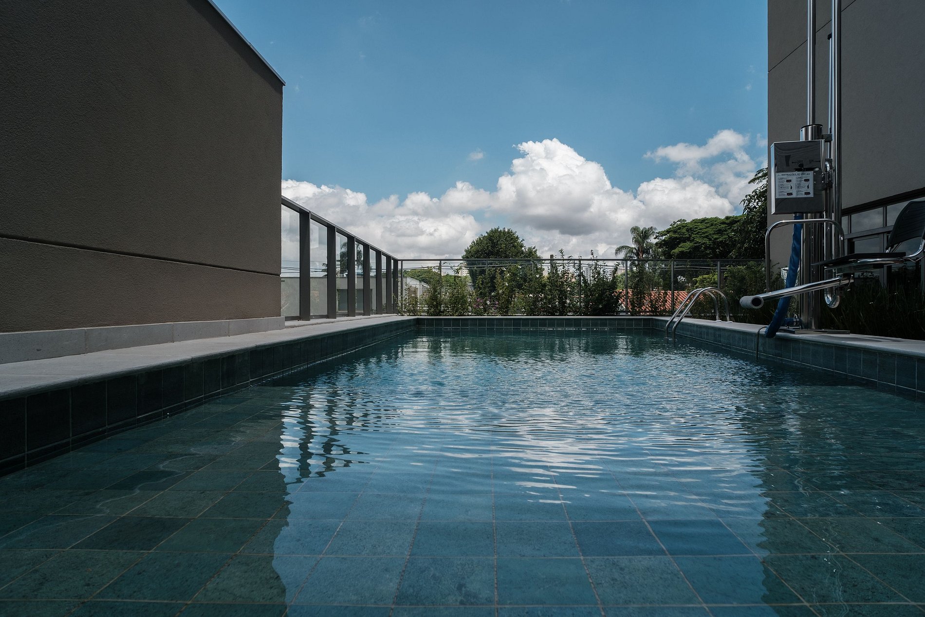 O prédio conta com uma infraestrutura completa que hóspedes podem usufruir normalmente, com: piscina, academia e lavanderia compartilhada