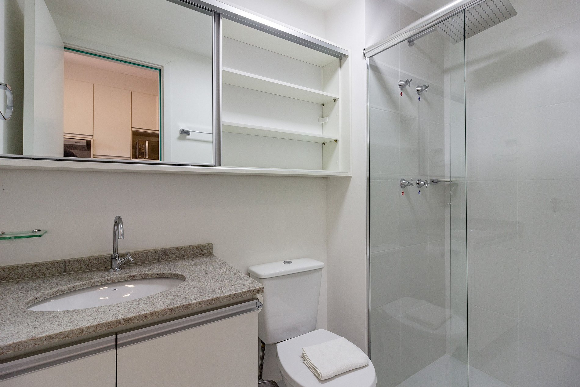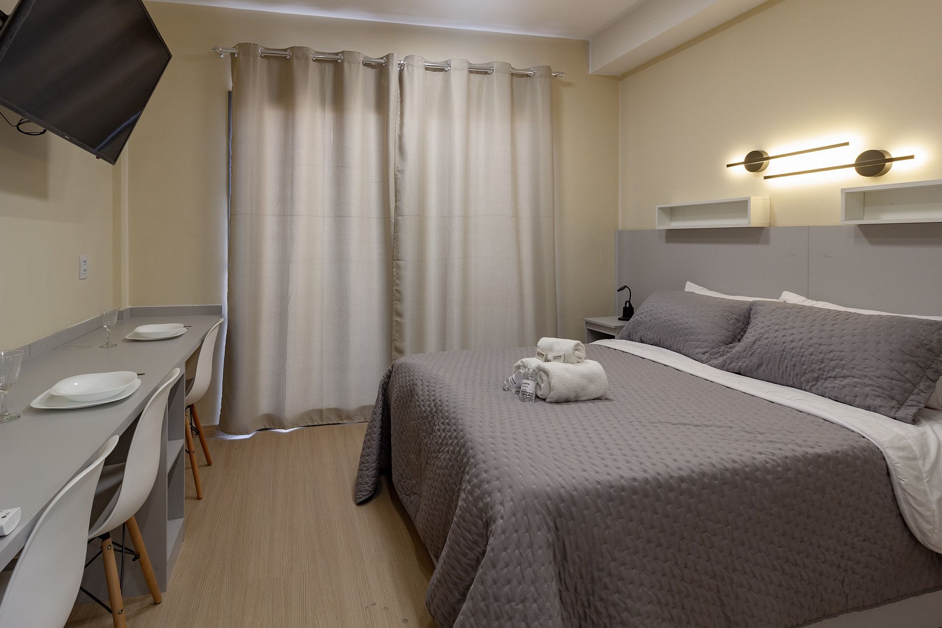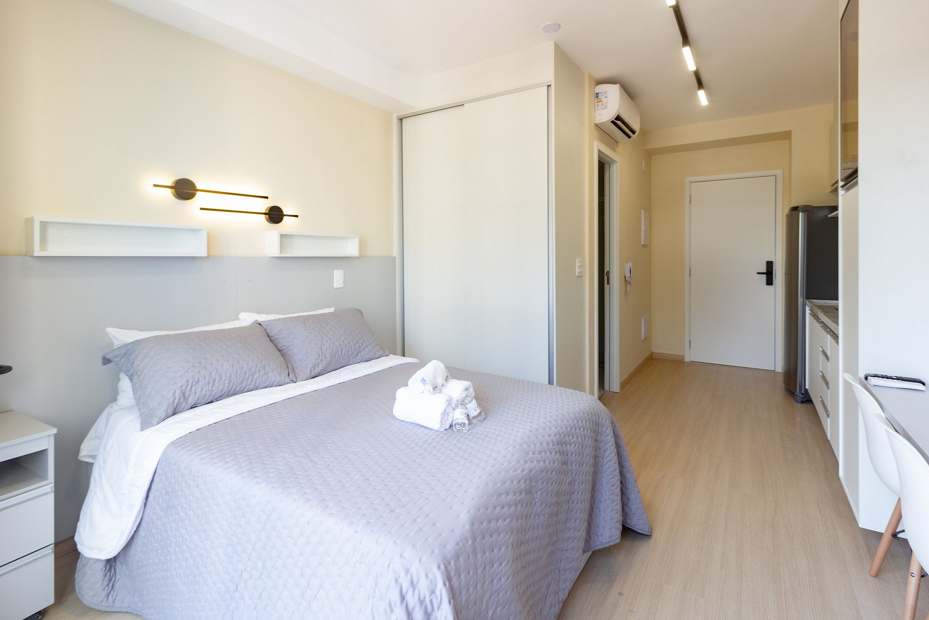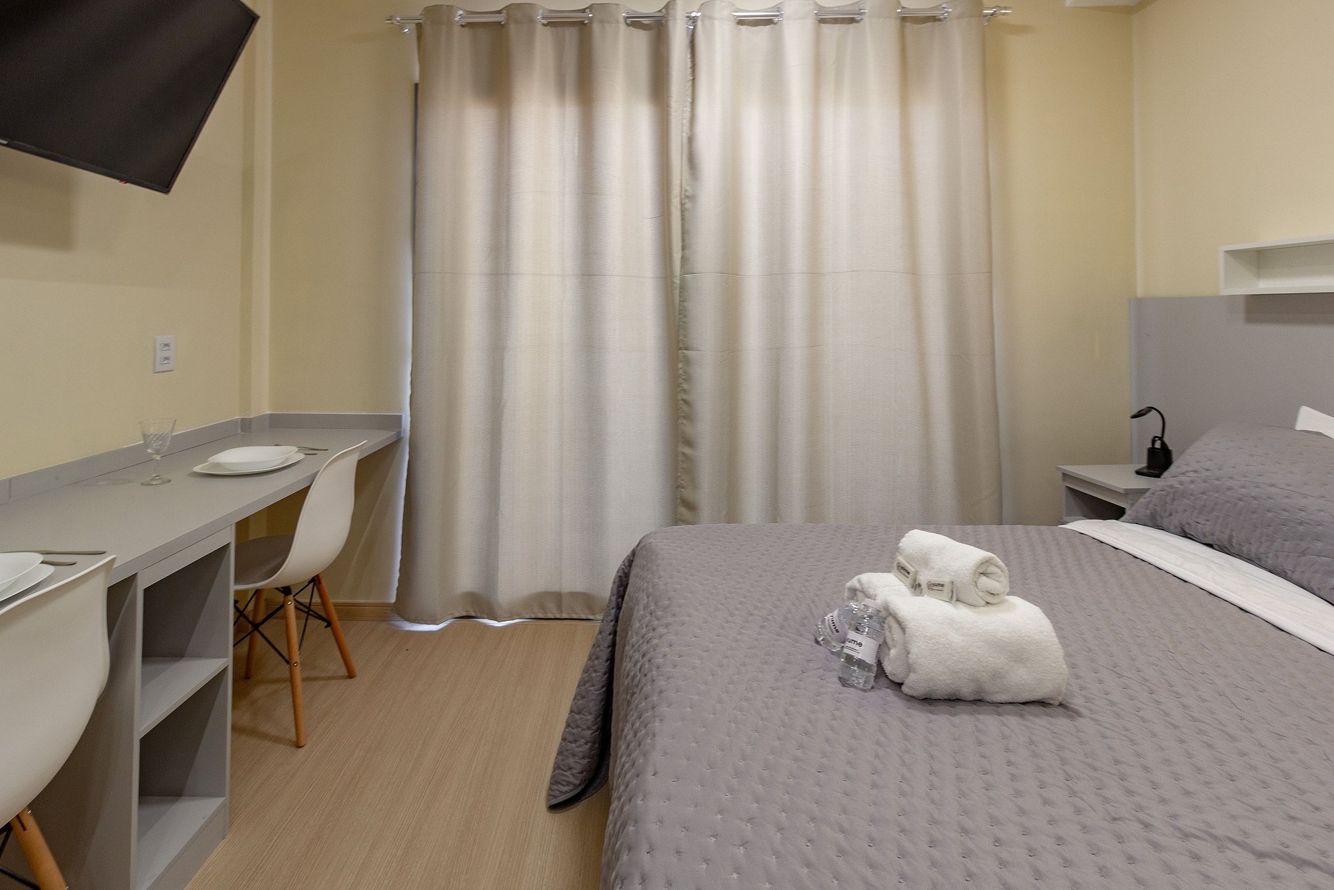 O apartamento é completo e atende perfeitamente até dois hóspedes que estão viajando a trabalho ou a passeio.
