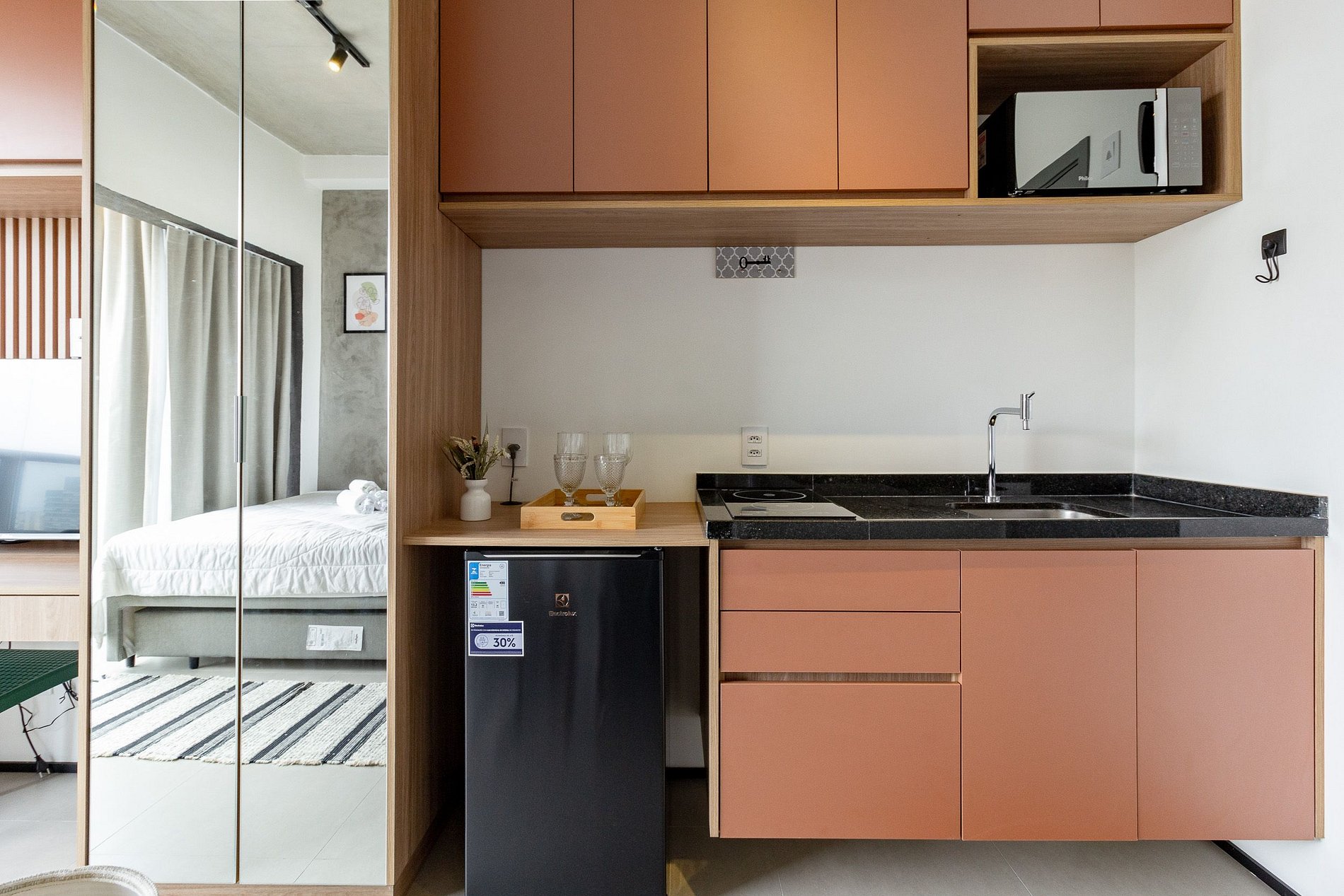 No dia do check-in encaminharemos: número do apartamento, senha da fechadura eletrônica e dados do WI-FI.