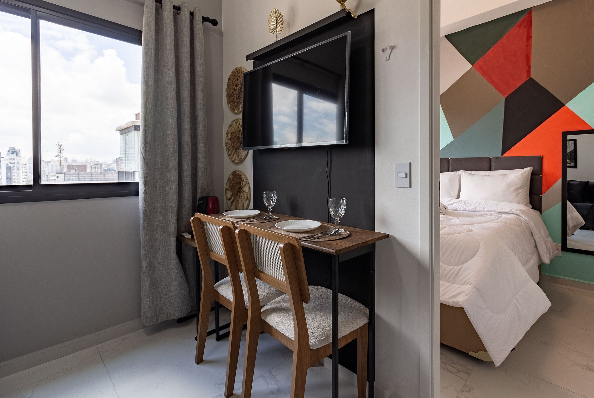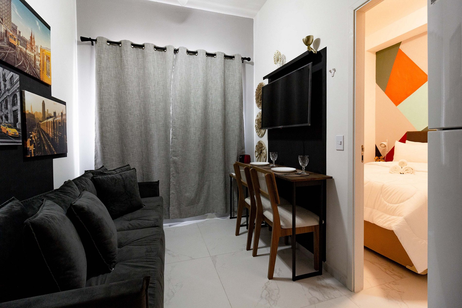 Desfrute de SP neste apartamento impecável! Ideal para lazer ou negócios, acomoda até 4 pessoas com cama de casal e sofá-cama prático. O espaço possui ar-condicionado, cozinha completa, enxoval de qualidade e banheiro com ducha relaxante. Para seu lazer ou trabalho, oferecemos uma Smart TV moderna e Wi-Fi de alta velocidade. Localização privilegiada com infraestrutura de ponta. Viva a melhor experiência urbana com todo o aconchego que você merece!