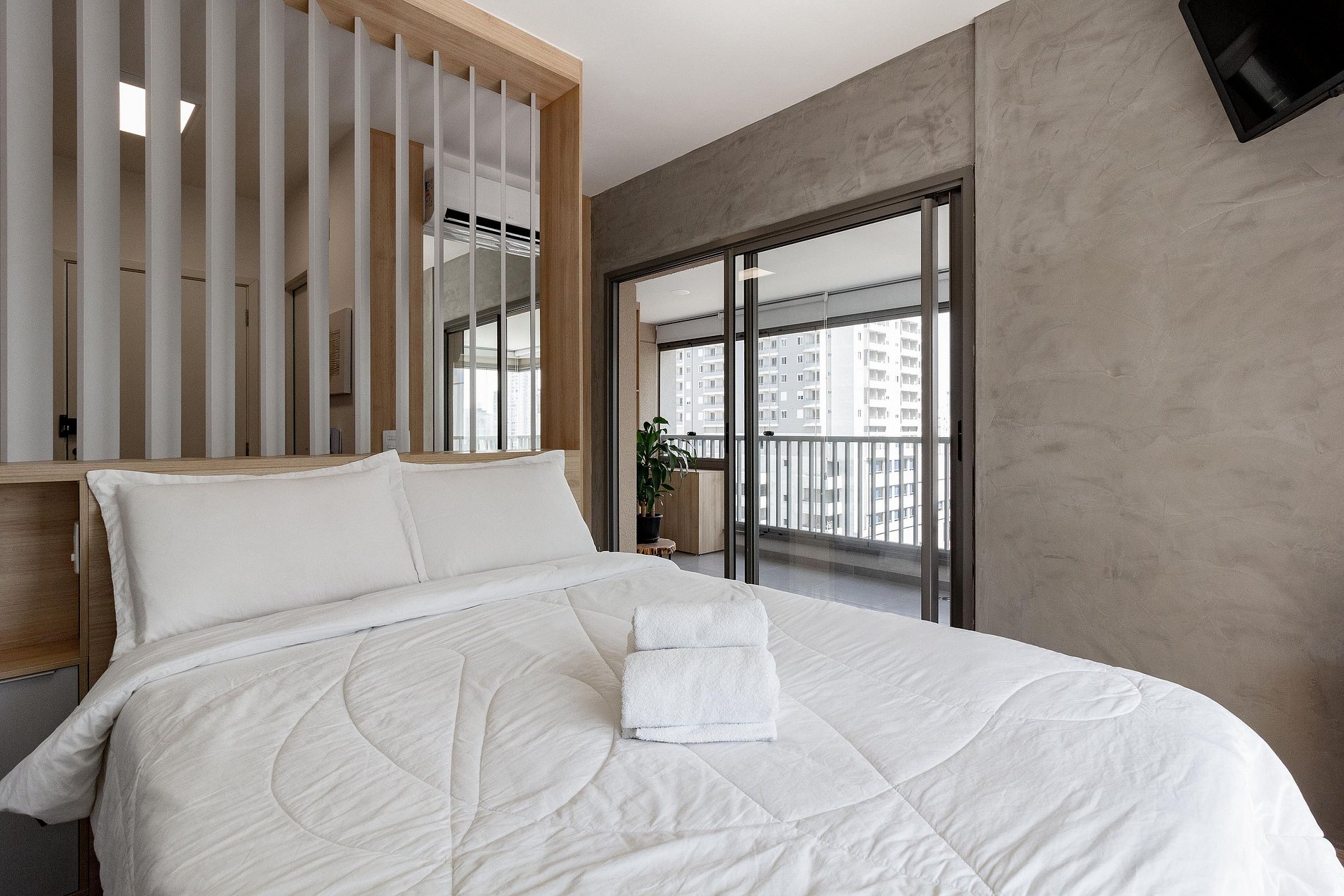 No dia do check-in, você receberá os dados de acesso: senha da fechadura eletrônica, informações de Wi-Fi e o número do apartamento.