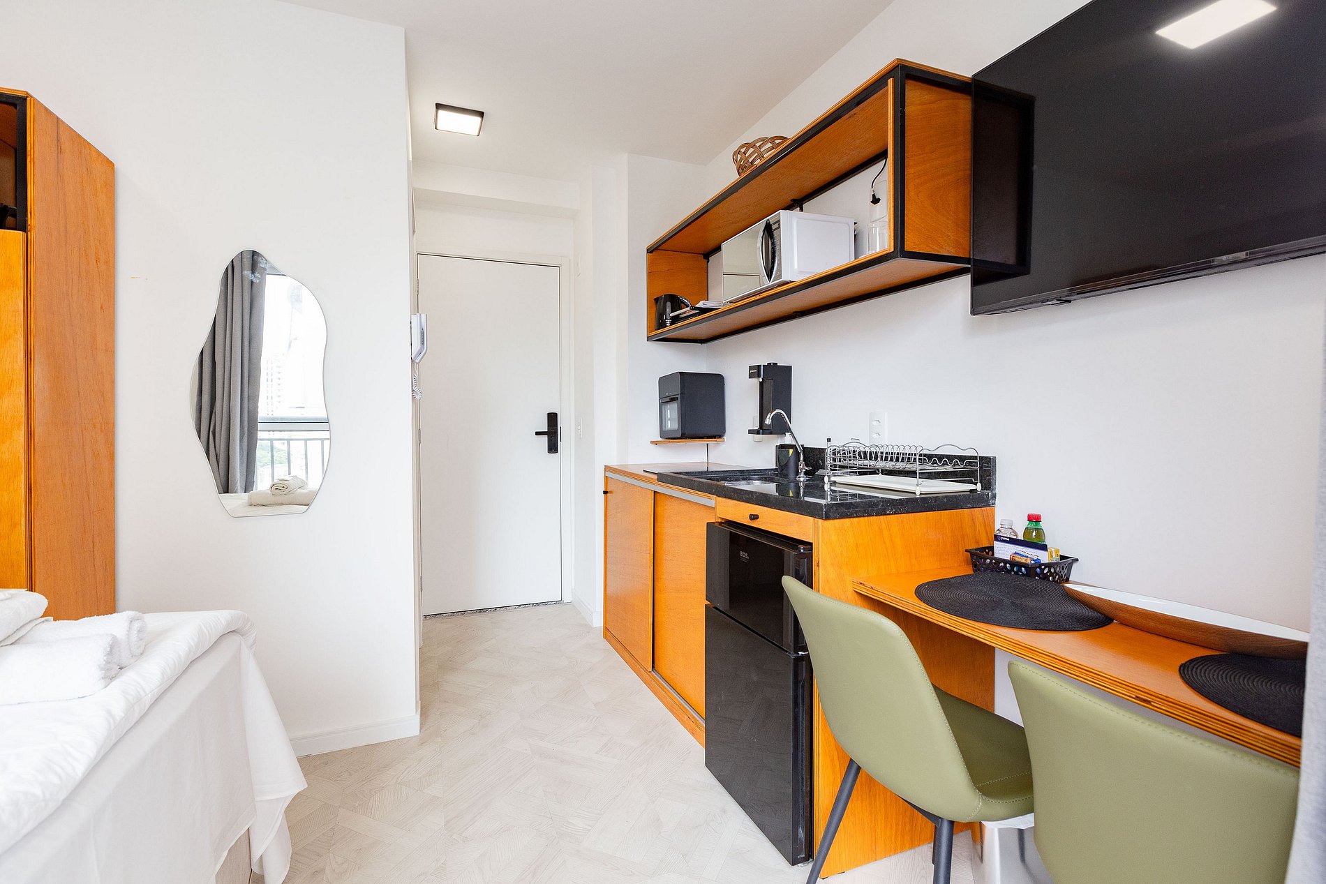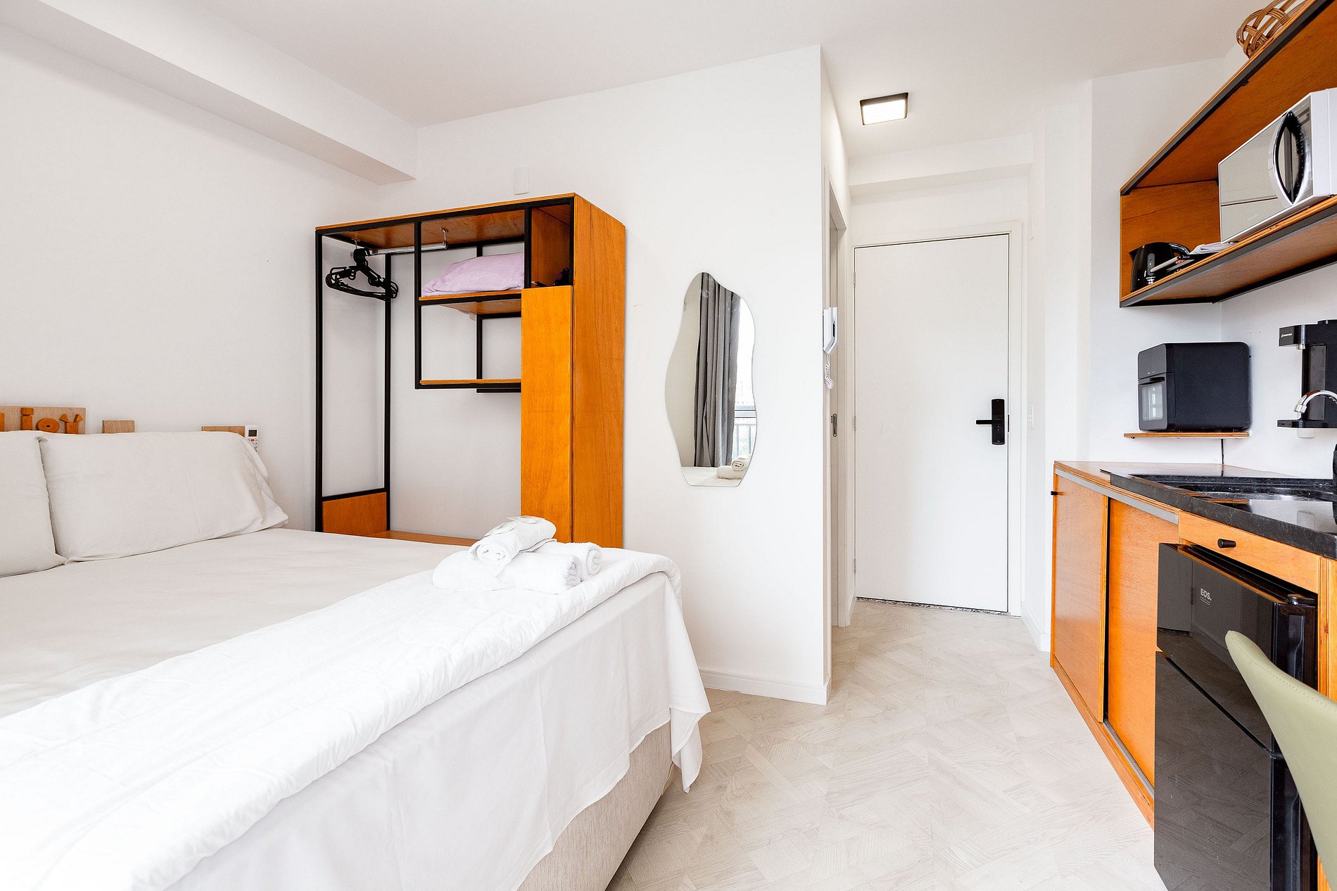 Aproveite um apartamento moderno e completo no coração de São Paulo. Localizado a apenas 500m da Av. Paulista, oferecemos um ambiente seguro com a praticidade do self check-in. O espaço dispõe de cama premium, ar-condicionado, Wi-Fi de alta velocidade, Smart TV e cozinha equipada, com enxoval completo incluso. O edifício ainda conta com academia moderna e lavanderia funcional para sua total comodidade.