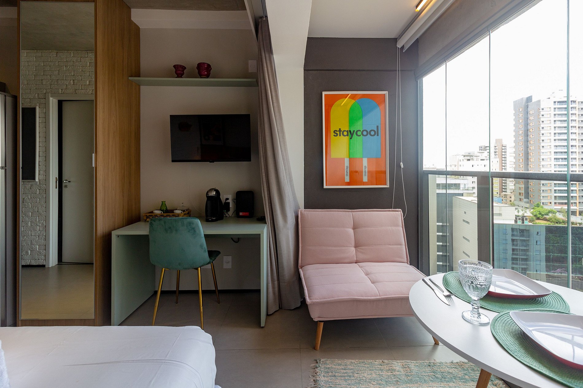O apartamento é um charme e foi planejado cada detalhe para a sua melhor viagem: