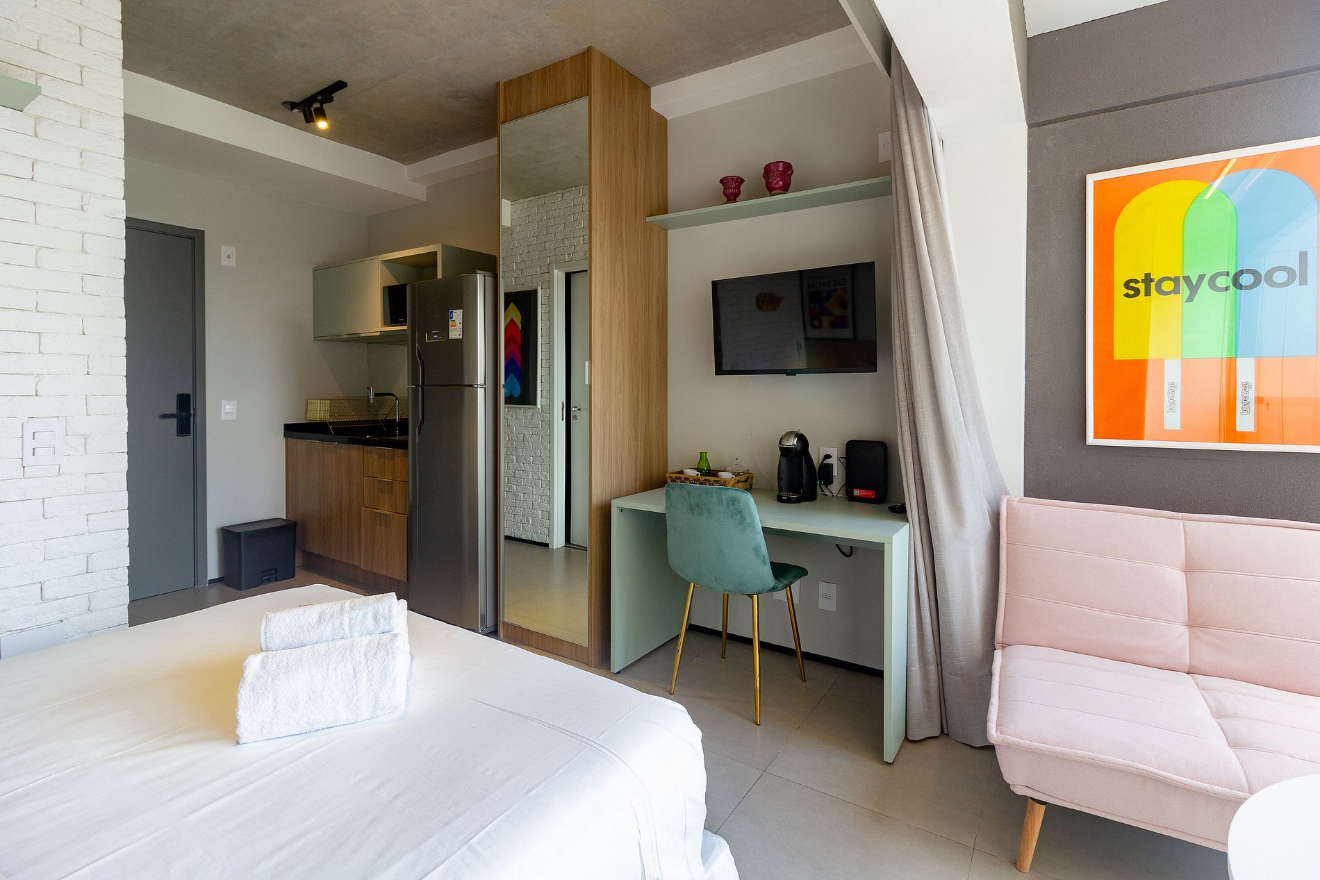 O apartamento é um charme e foi planejado cada detalhe para a sua melhor viagem: