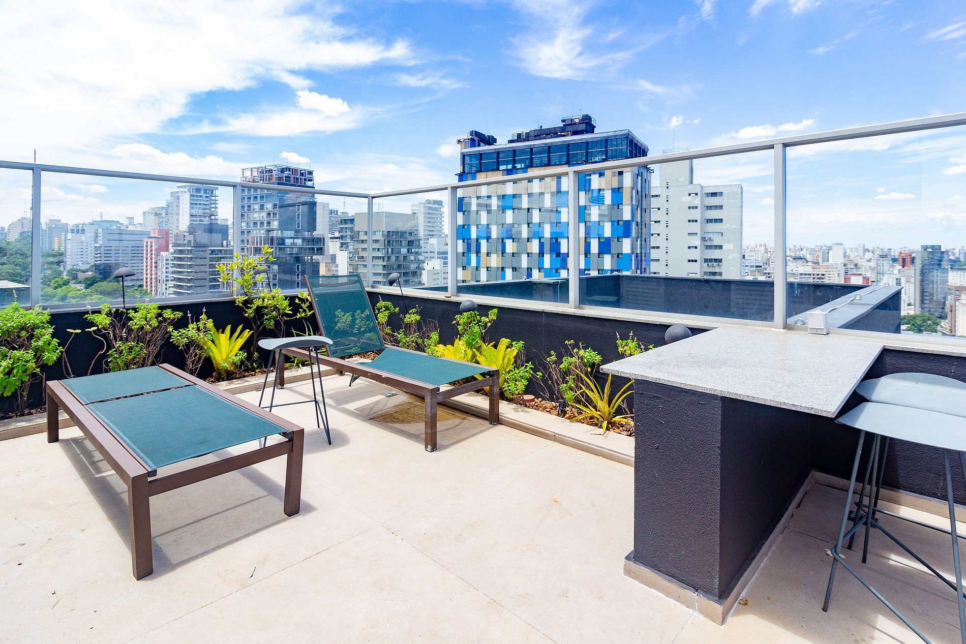 Prédio novo e com excelente infraestrutura: sistema de self check-in, portaria 24h, segurança e elevadores.