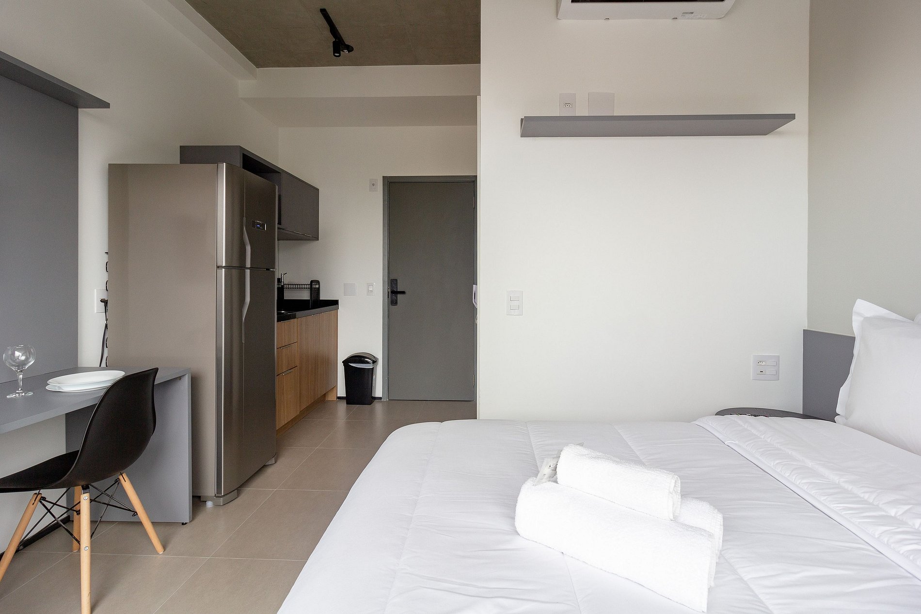 O prédio conta com portaria 24h, estacionamento (valor a pagar no local), elevadores, segurança e áreas de espaço, como: piscina no rooftop, academia, lavanderia compartilhada, coworking e mercado de autoatendimento.