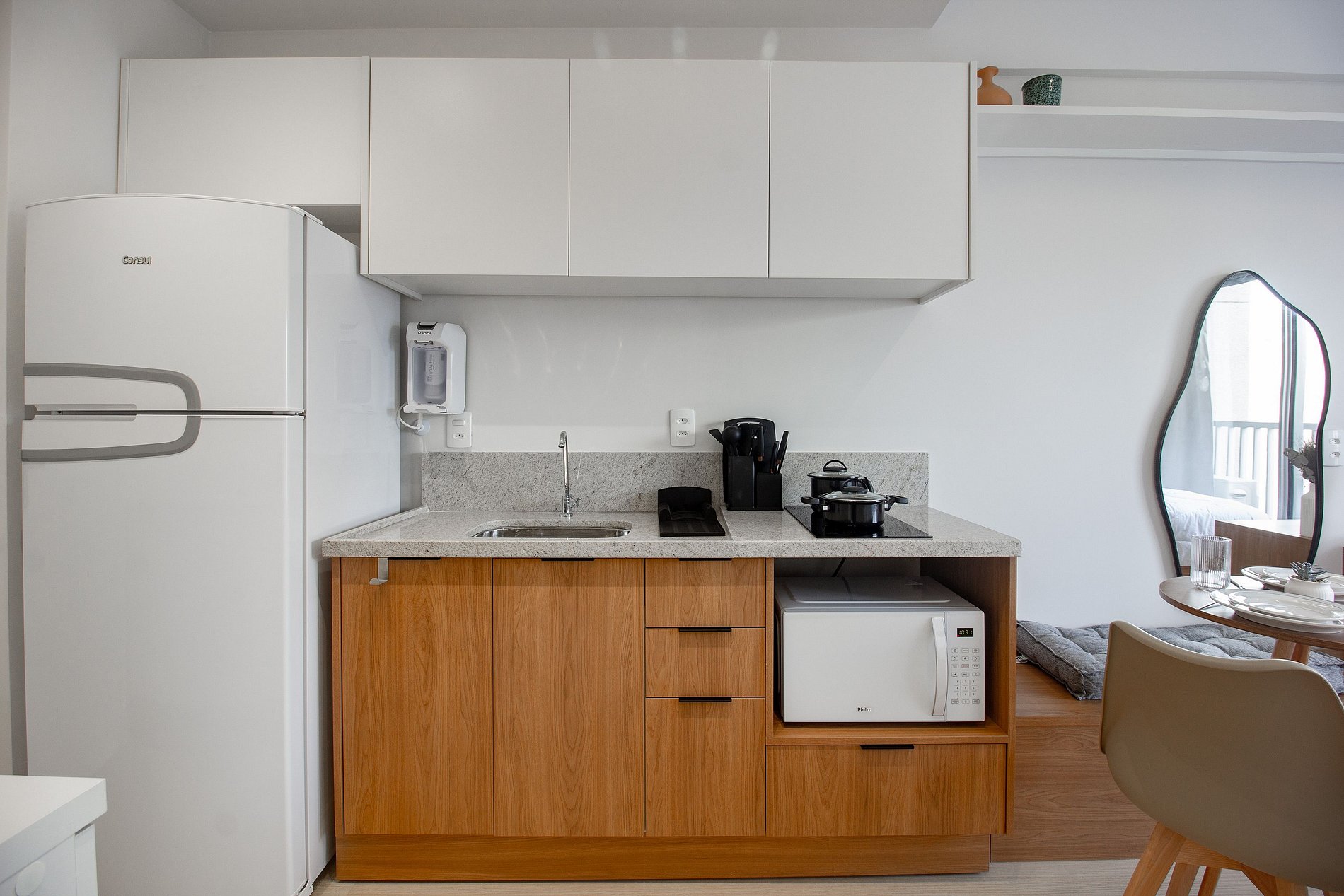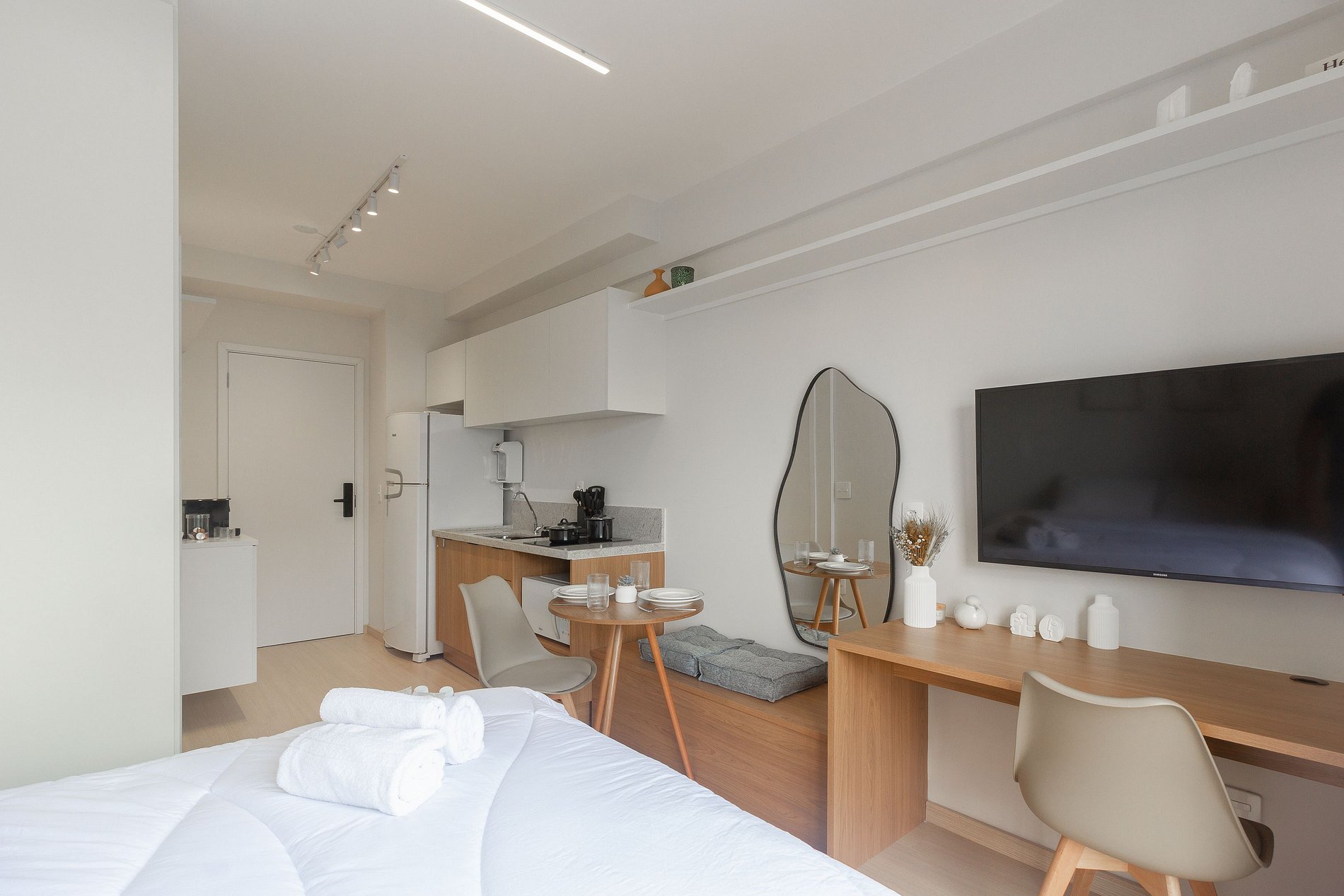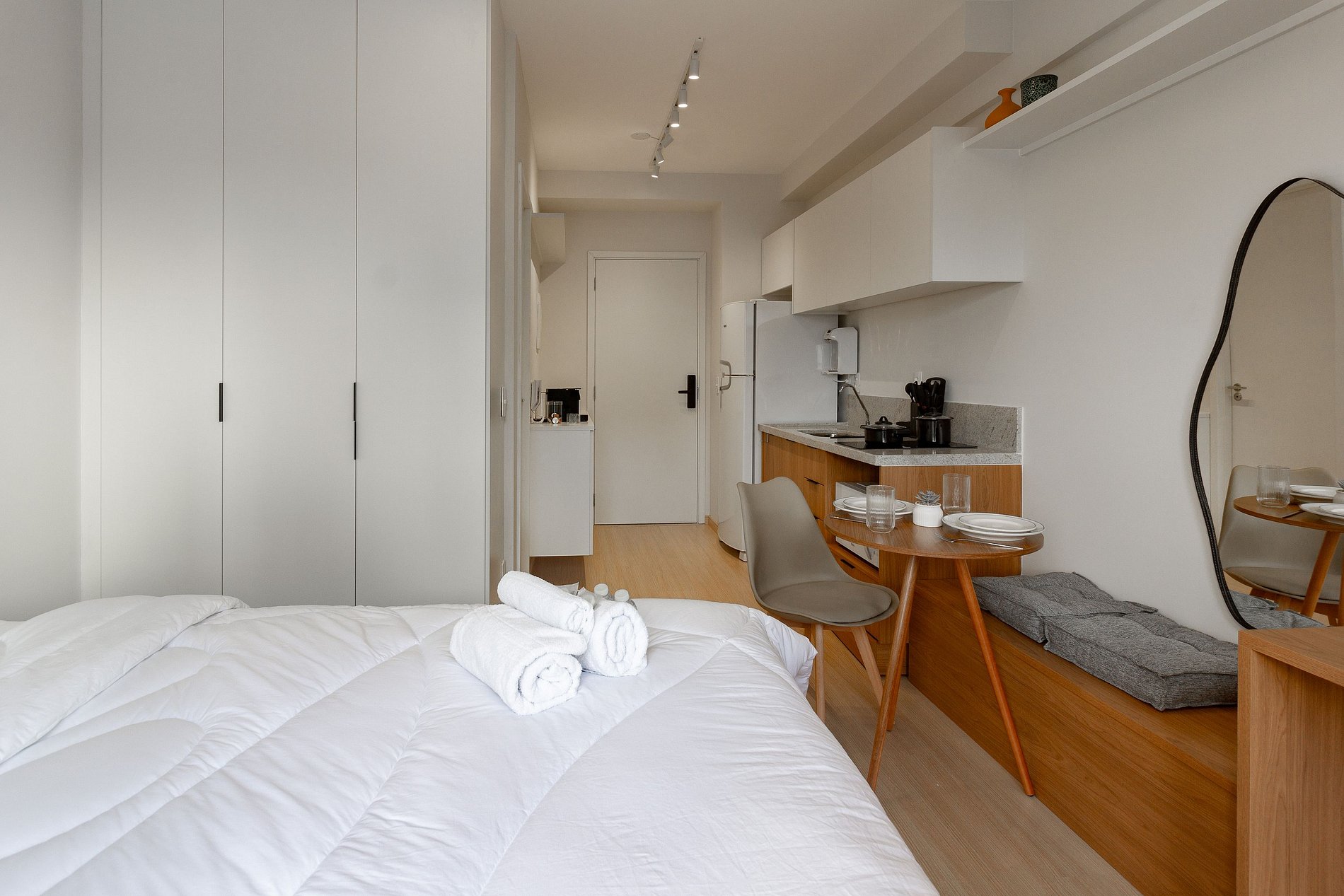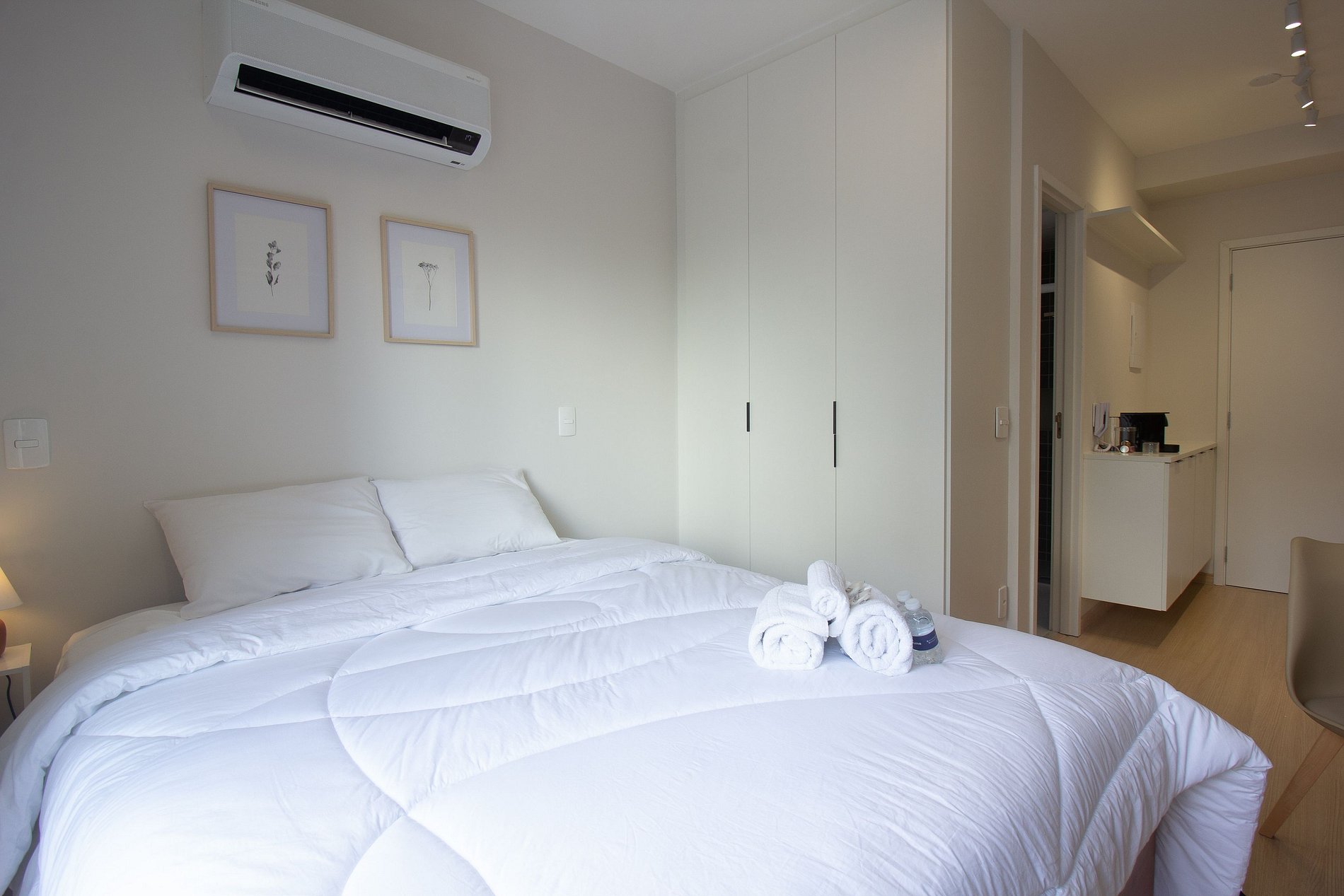 Cada detalhe do apartamento foi planejada para a sua melhor estadia, sendo a escolha ideal para quem busca conforto e praticidade durante uma viagem a trabalho ou a passeio