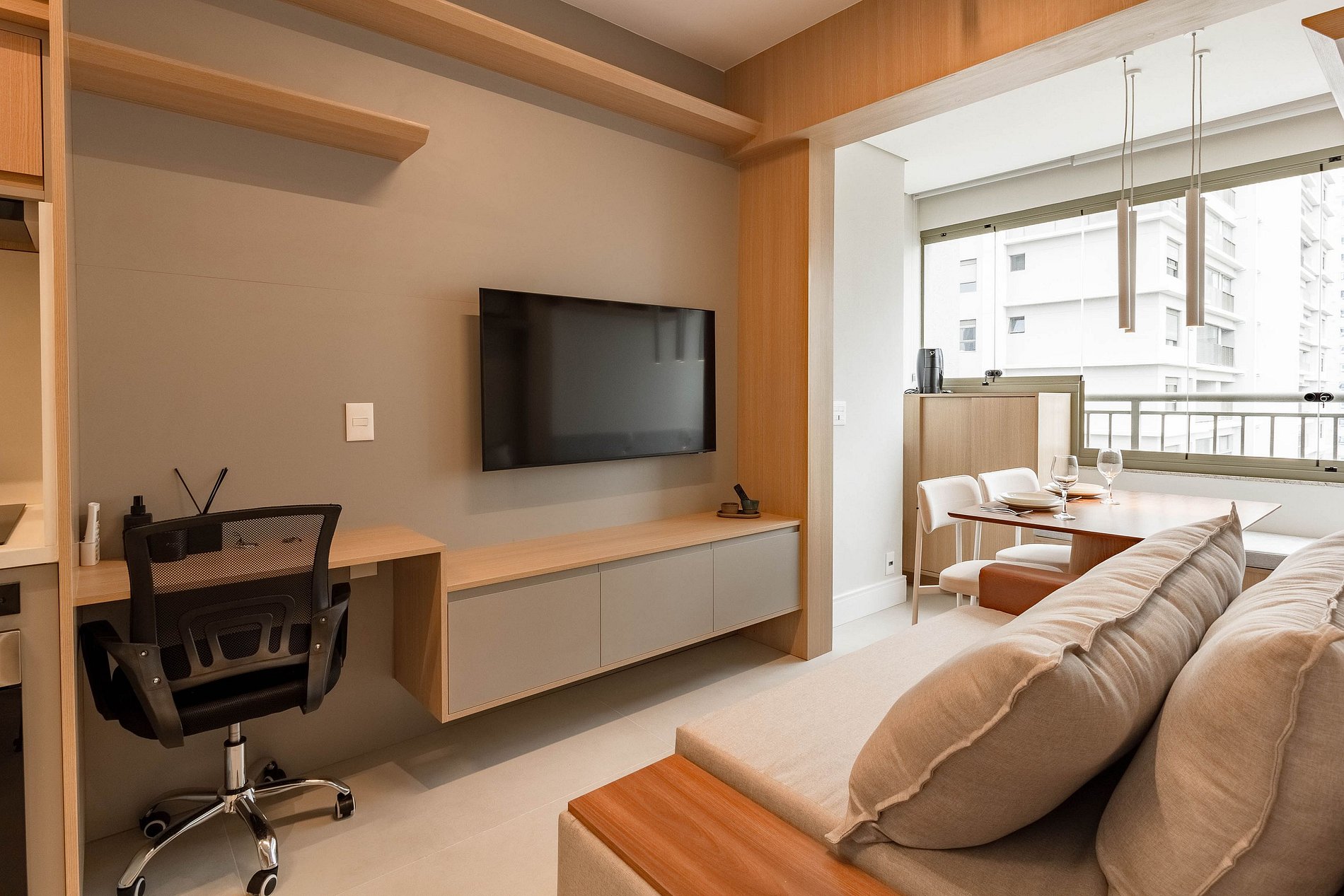 Desfrute de um lindo apartamento, planejado em cada detalhe para o seu máximo conforto, ideal tanto para viagens a trabalho quanto a passeio.