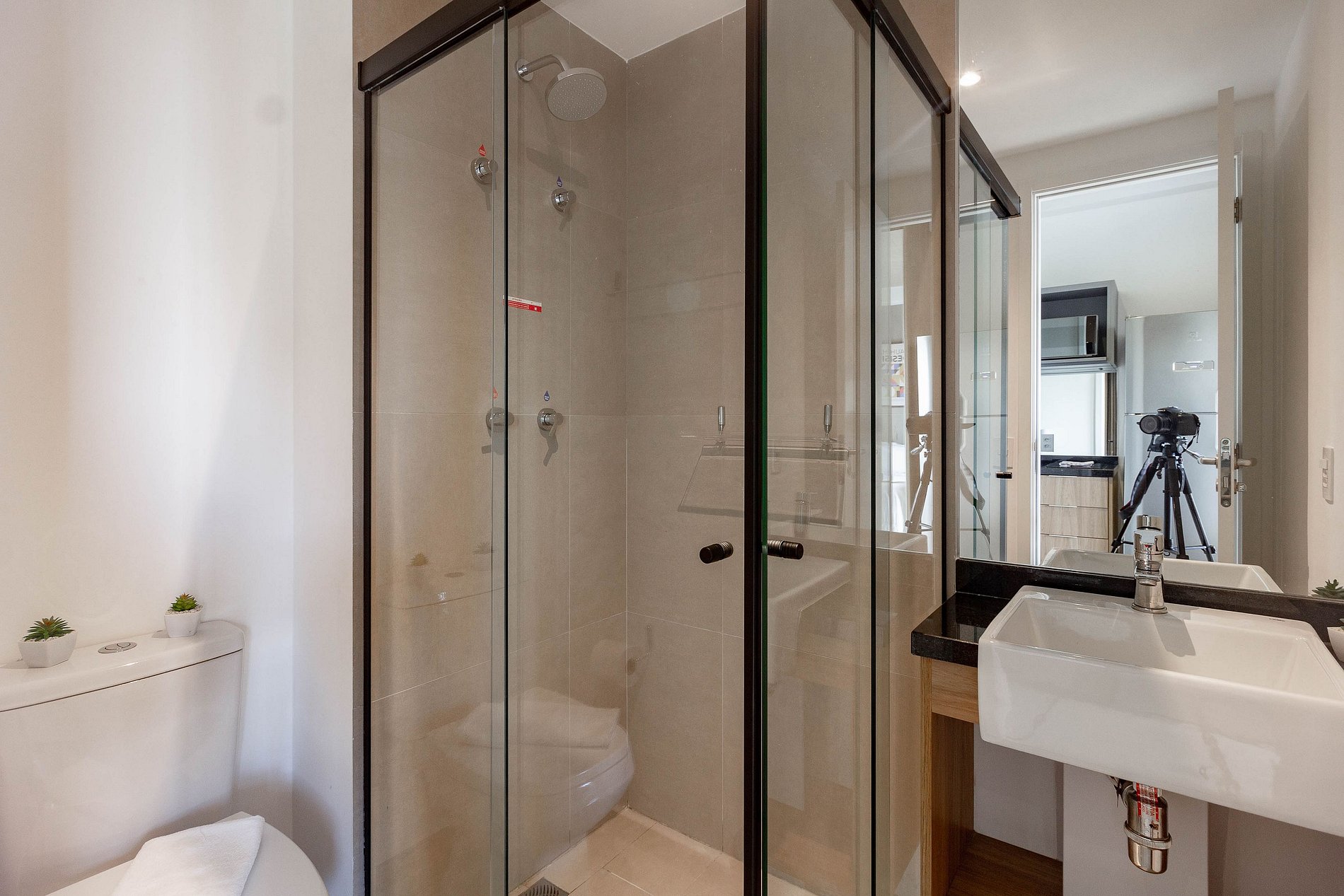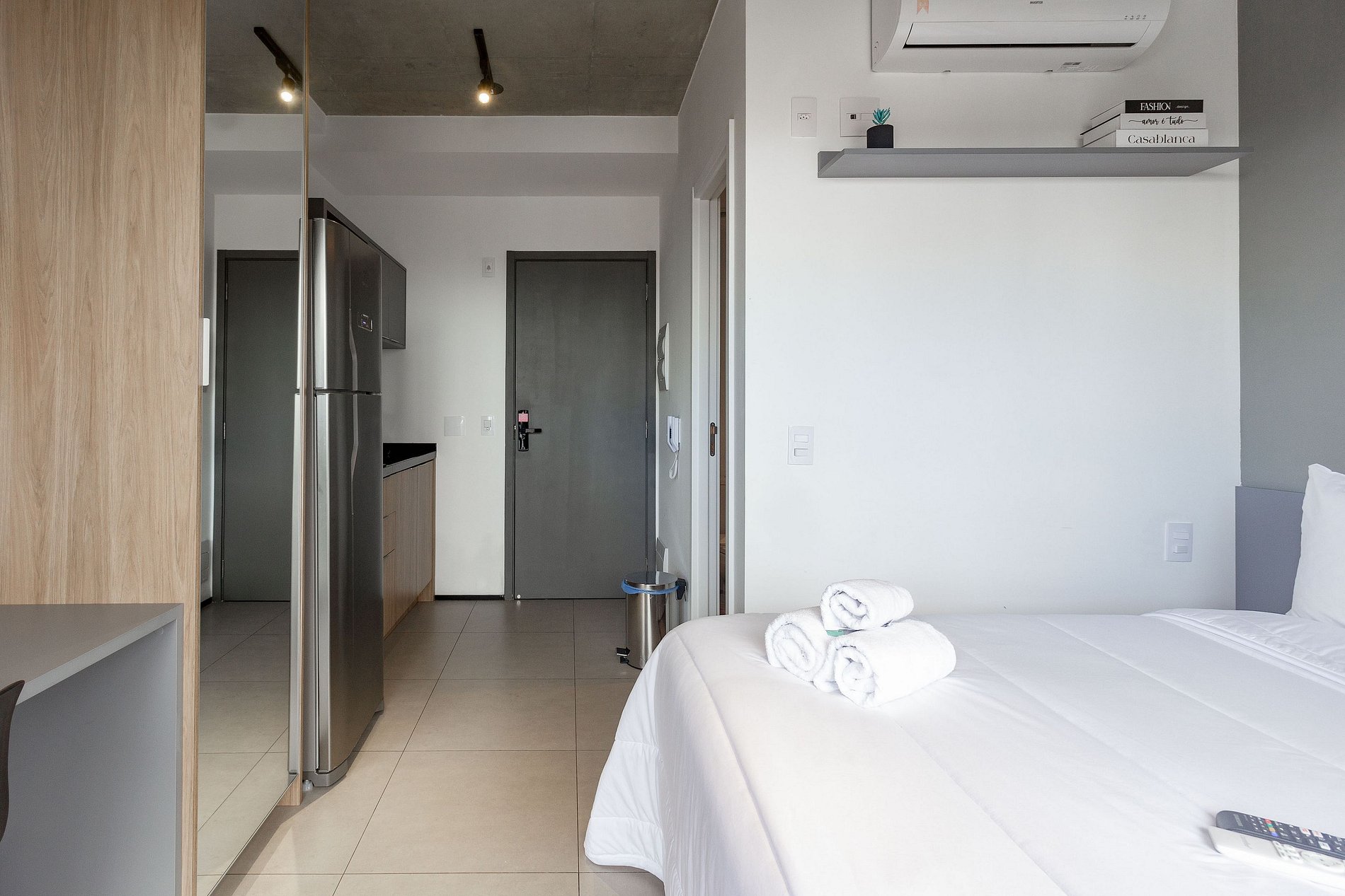 O prédio conta com portaria 24h, sistema de self check-in, elevadores e espaços de área comum que podem ser utilizados normalmente, como: academia, piscina, lavanderia compartilhada e coworking