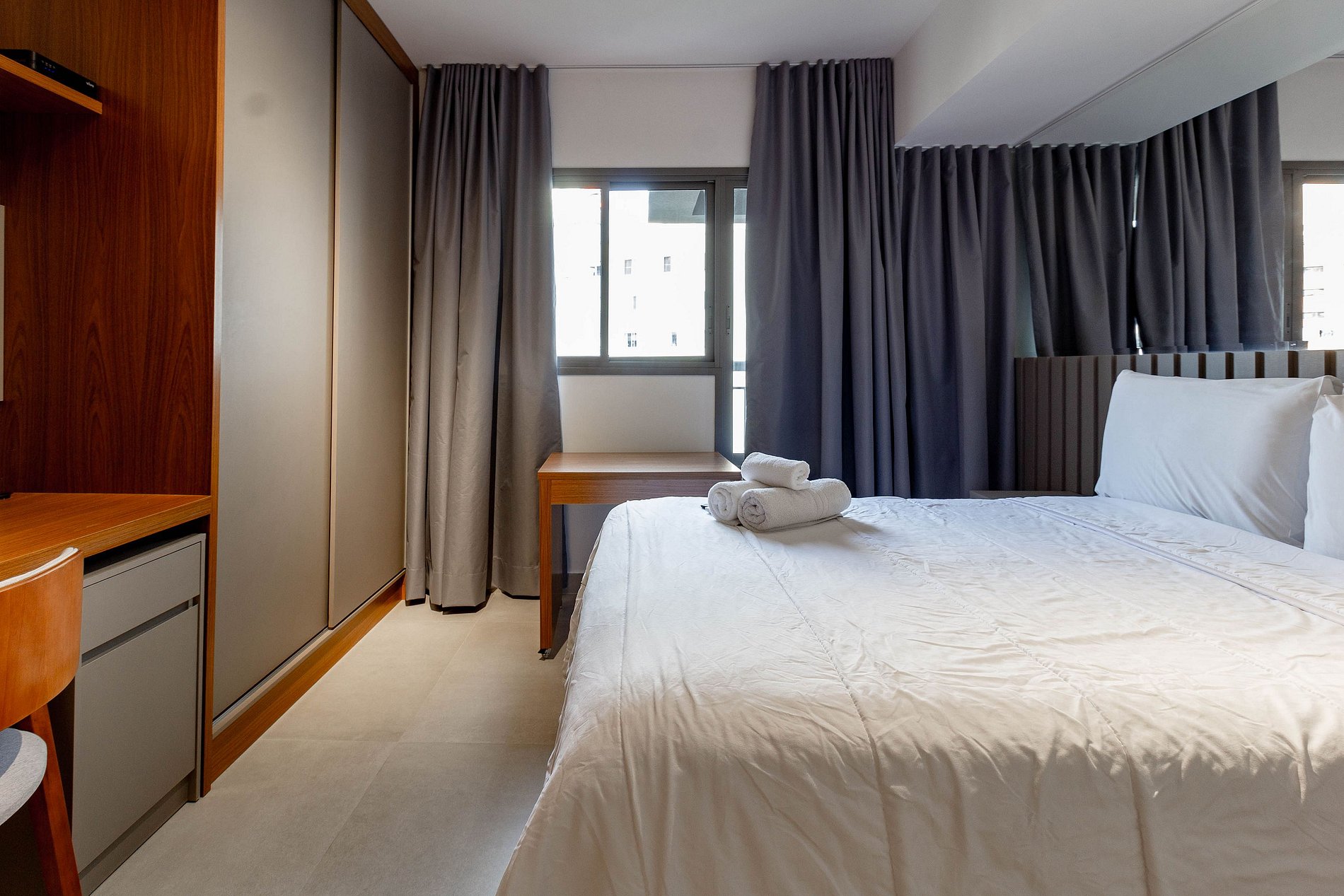 O prédio conta com uma excelente infraestrutura, com portaria 24h e sistema de self check-in.