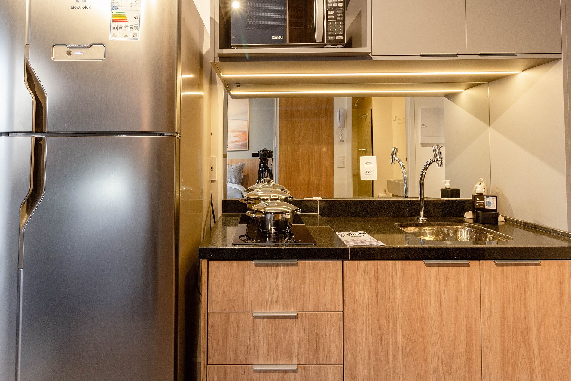 O apartamento foi planejado em cada detalhe para a sua melhor estadia, atendendo perfeitamente até duas pessoas.