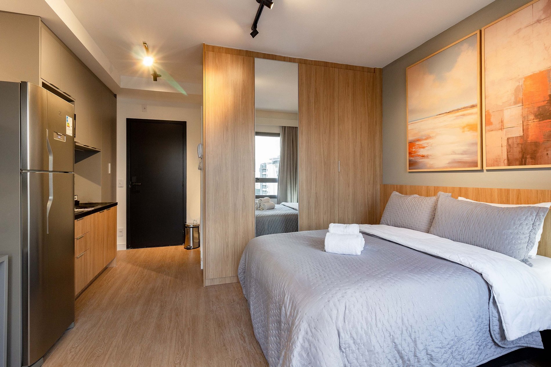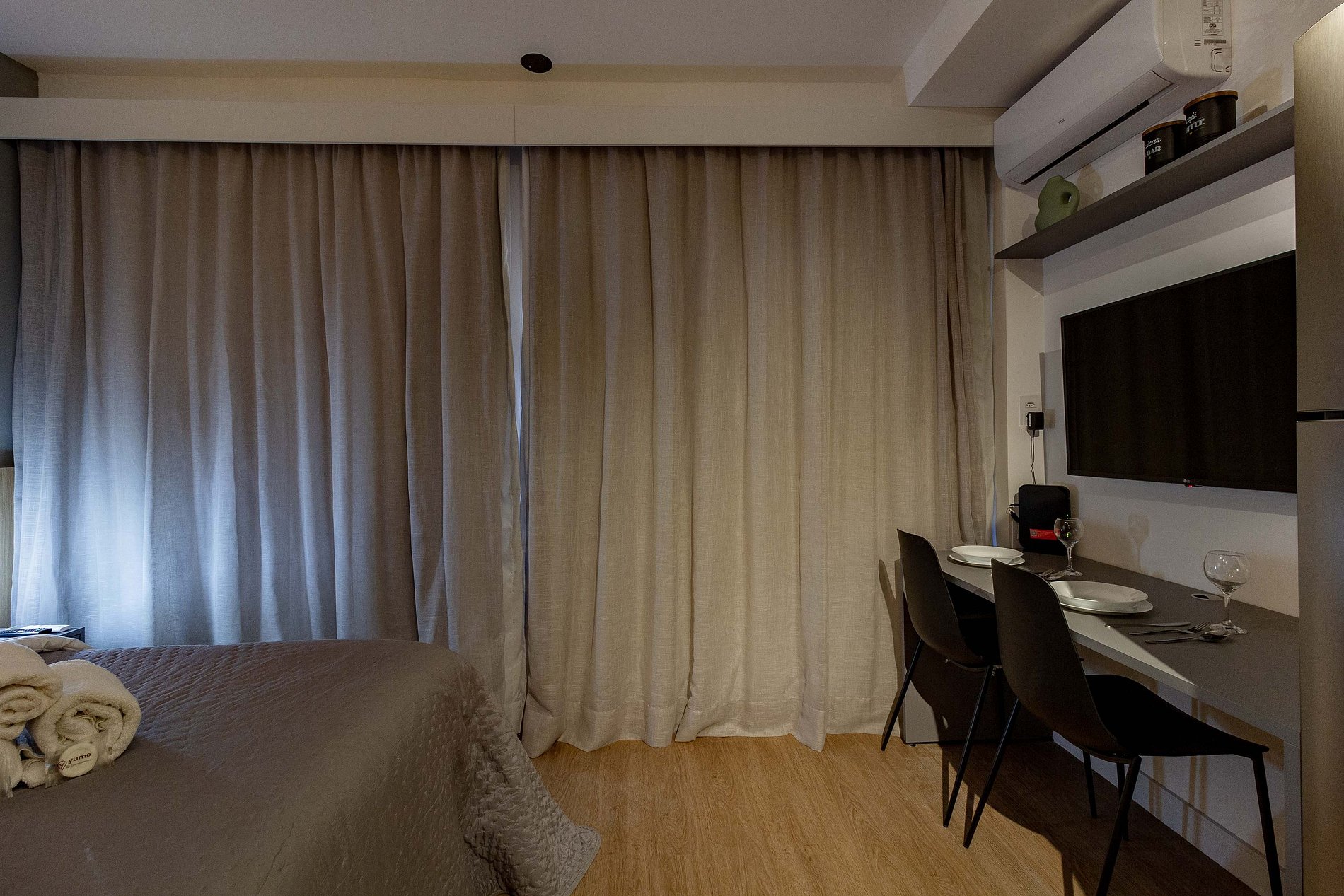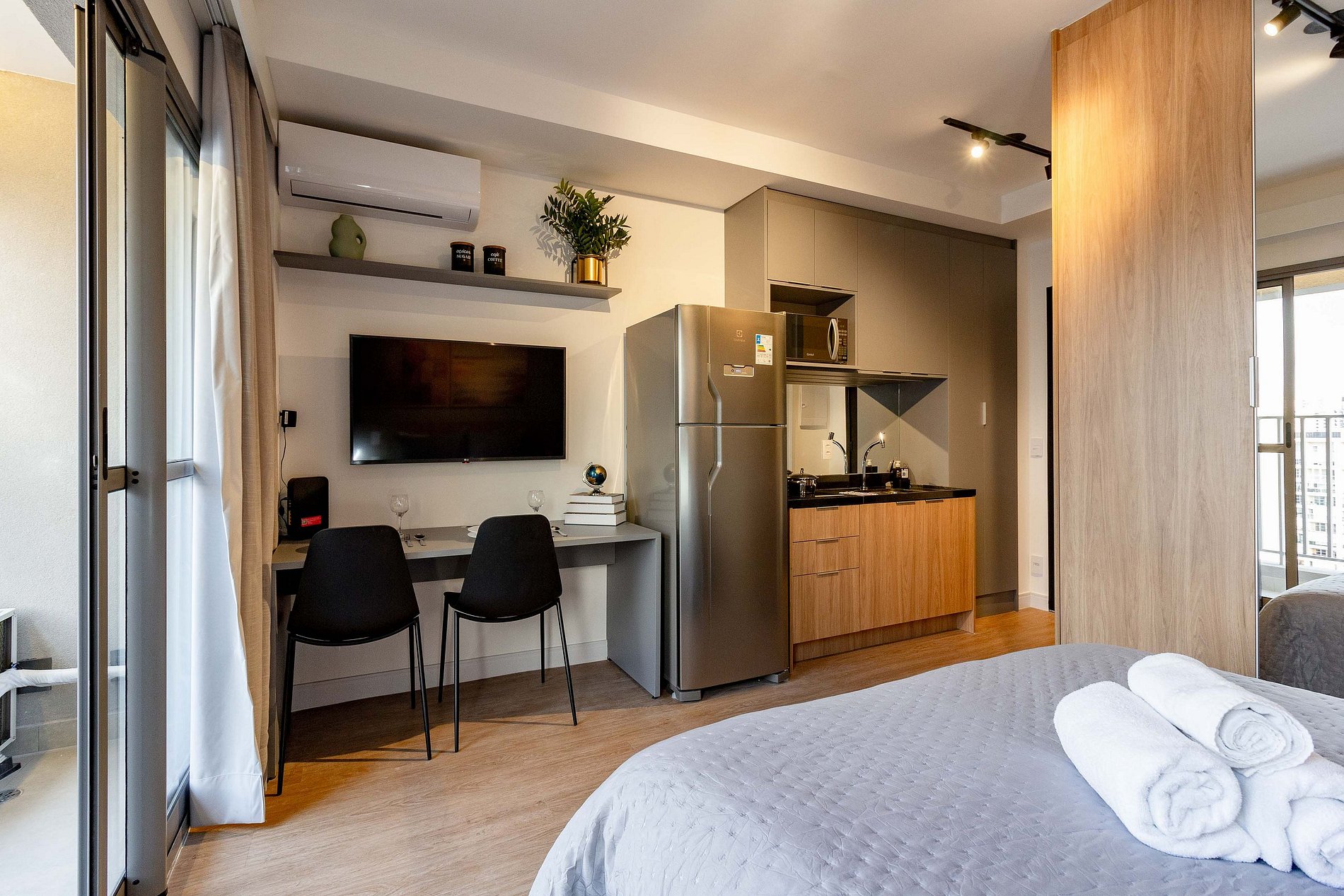 O apartamento foi planejado em cada detalhe para a sua melhor estadia, atendendo perfeitamente até duas pessoas.