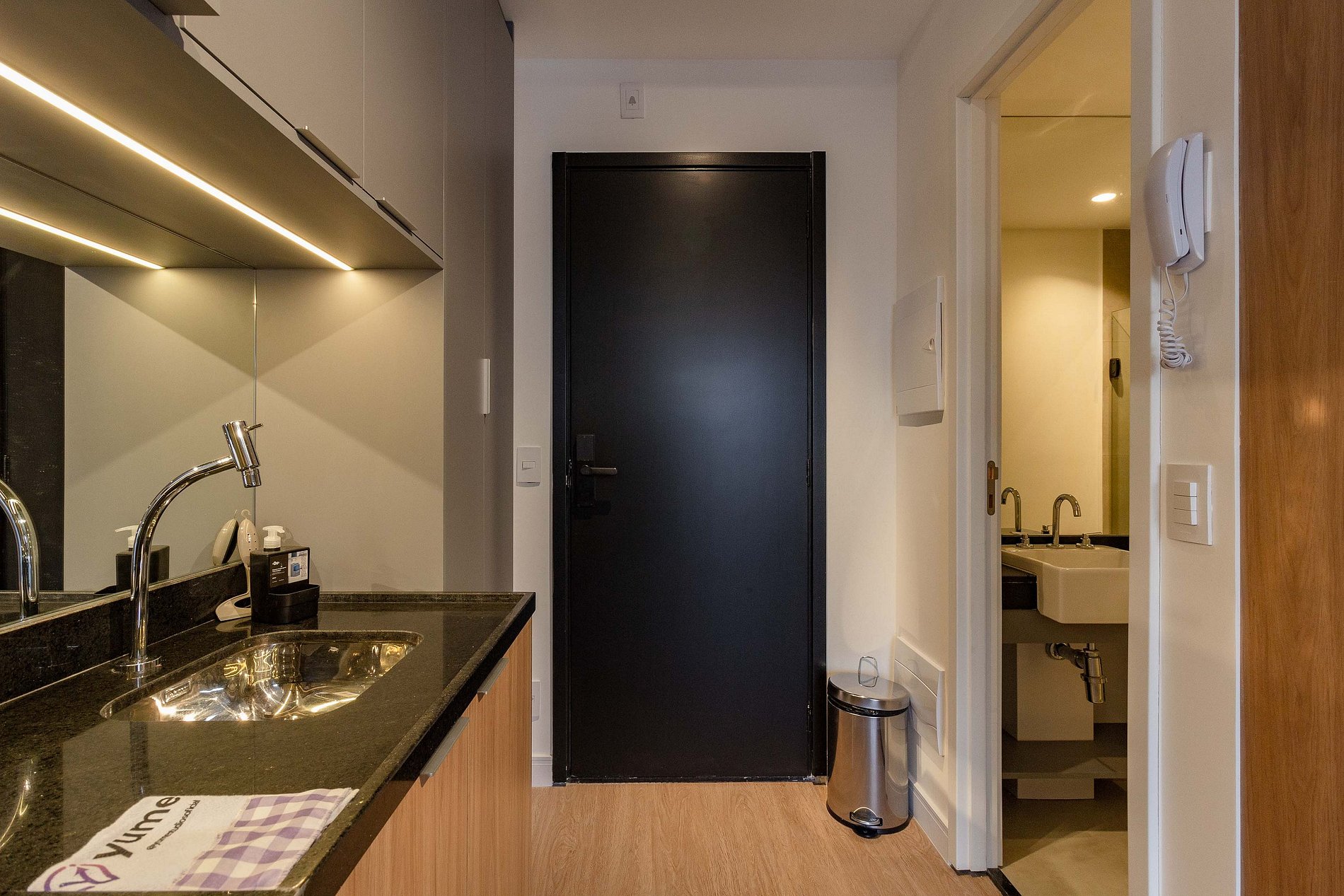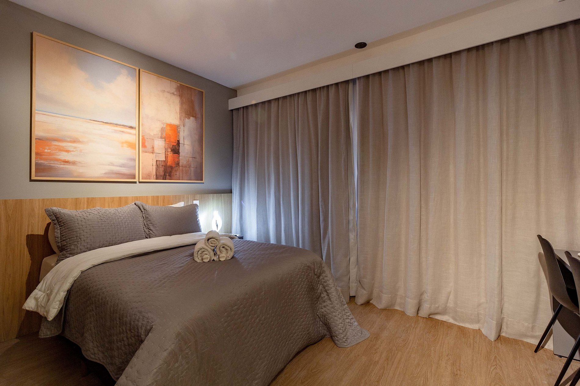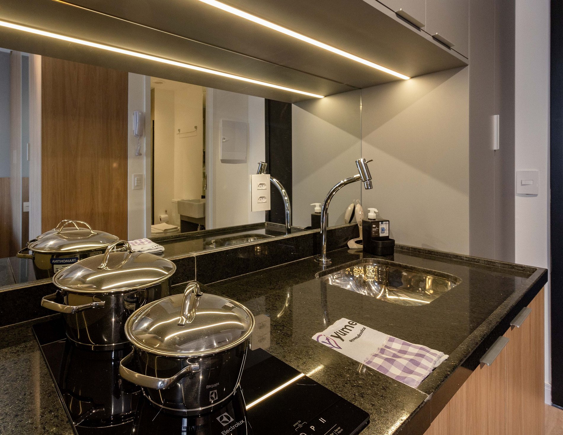 O apartamento foi planejado em cada detalhe para a sua melhor estadia, atendendo perfeitamente até duas pessoas.