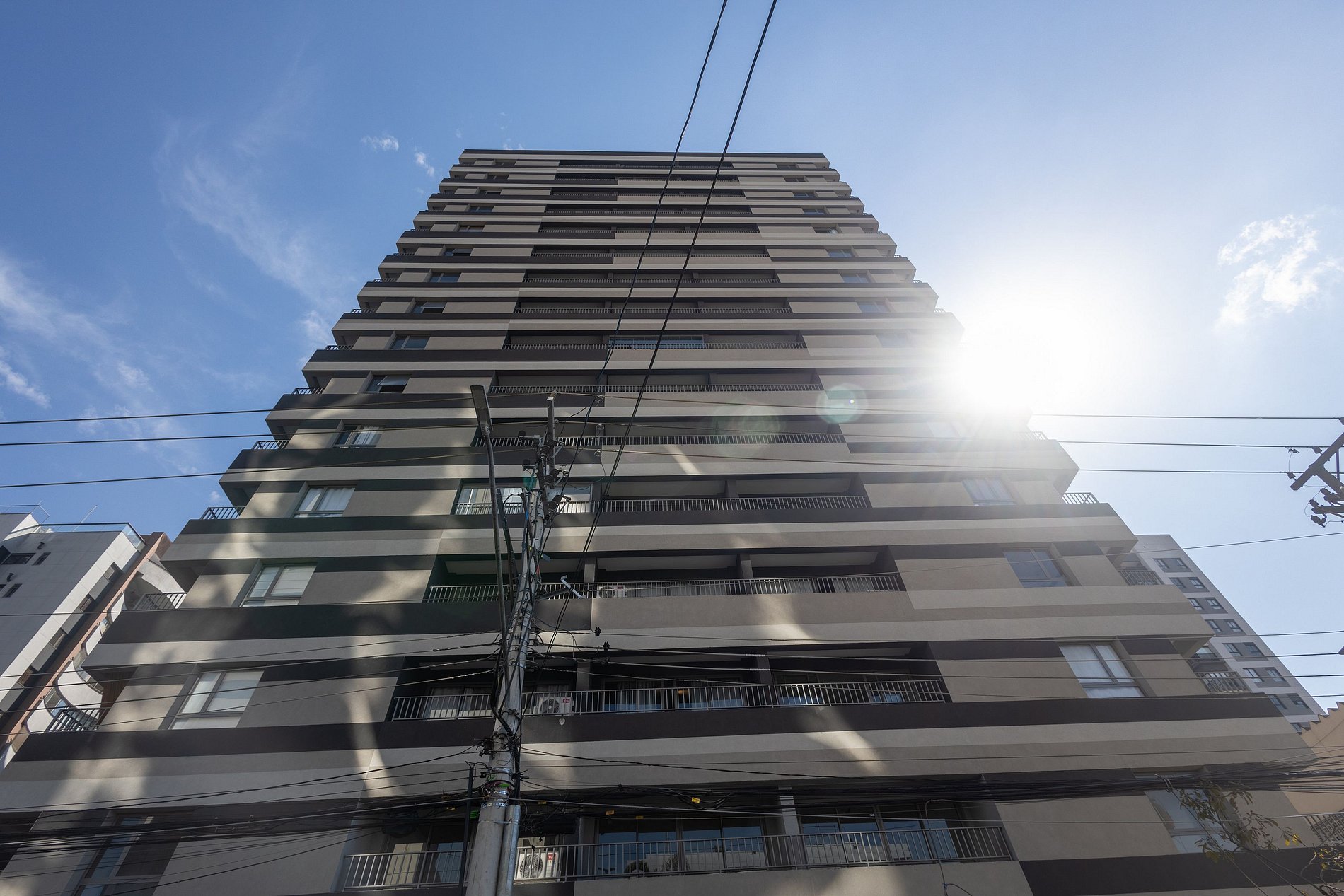 O prédio conta com lavanderia compartilhada, coworking e um lindo terraço para curtir e apreciar o por do sol.