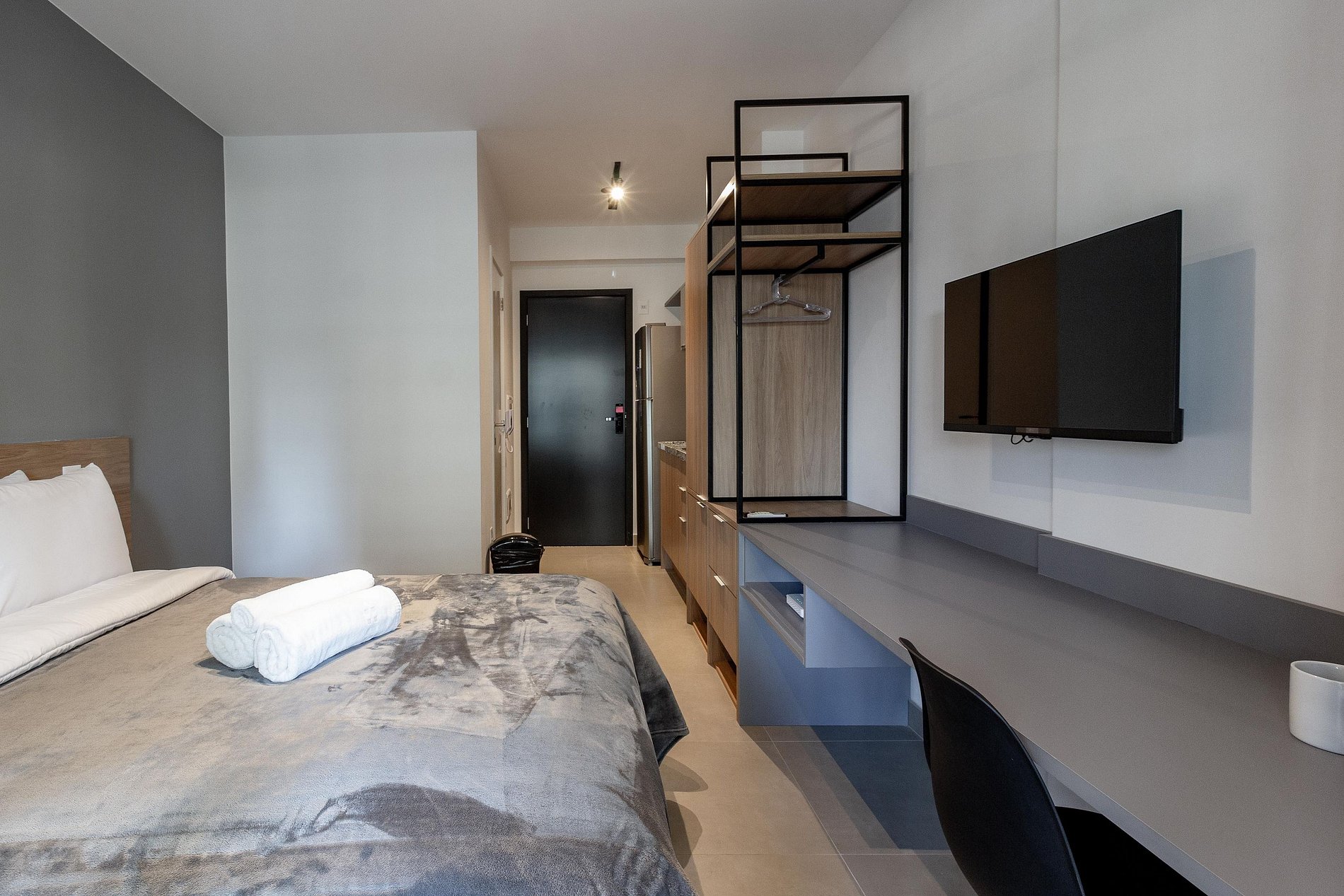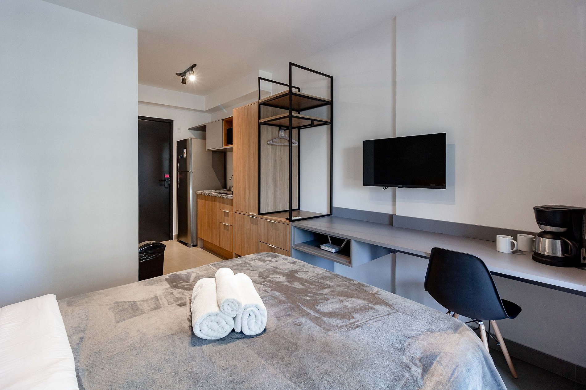 O prédio possui sistema de self check-in, portaria 24h, segurança e espaços de área comum que os hóspedes podem utilizar normalmente, como: academia, piscina, lavanderia compartilhada e coworking