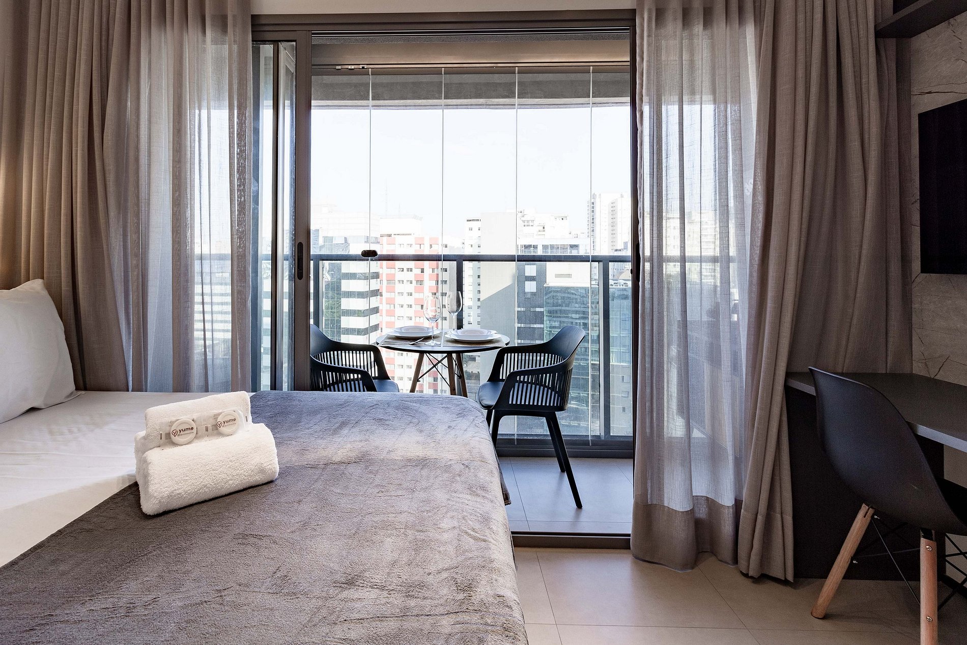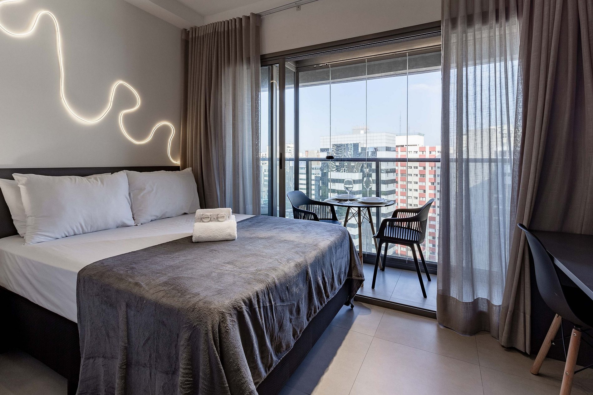 O prédio conta com portaria 24h, sistema de self check-in, acesso por elevadores e espaços de área comum que os hóspedes podem utilizar normalmente, como: academia, lavanderia compartilhada, coworking e piscina no rooftop.