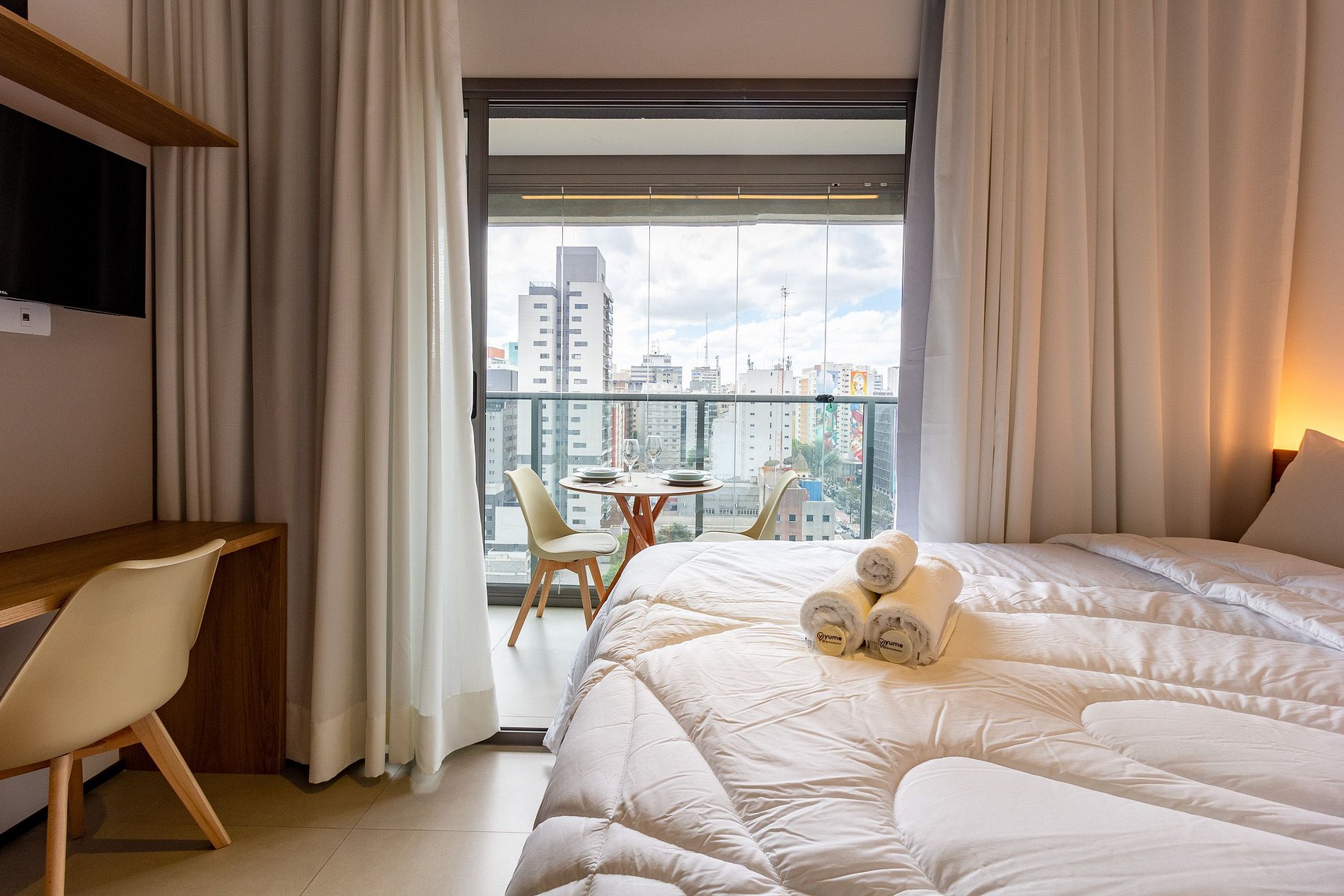 O prédio conta com portaria 24h, sistema de self check-in, acesso por elevadores e espaços de área comum que os hóspedes podem utilizar normalmente, como: academia, lavanderia compartilhada, coworking e piscina no rooftop.