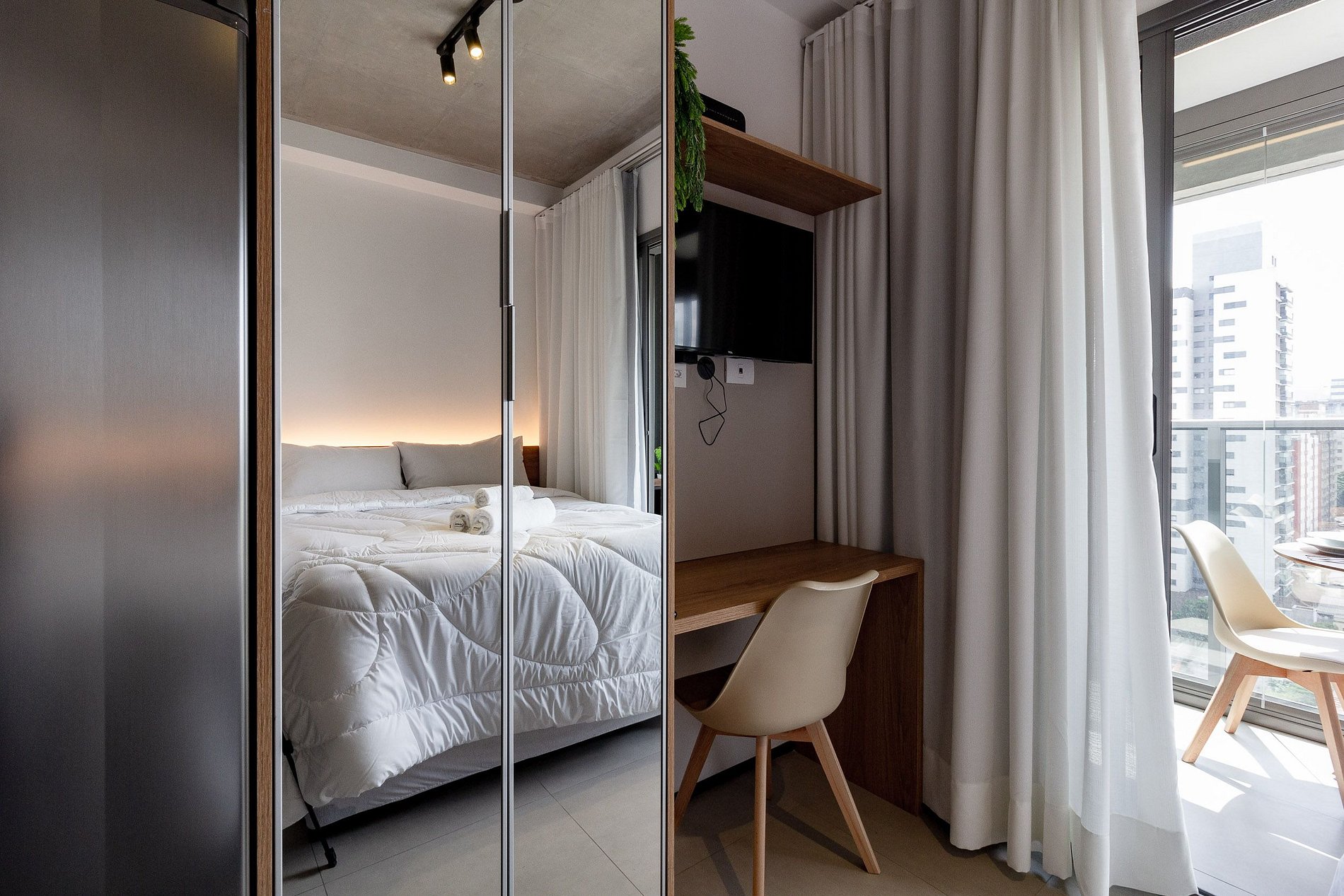O prédio conta com portaria 24h, sistema de self check-in, acesso por elevadores e espaços de área comum que os hóspedes podem utilizar normalmente, como: academia, lavanderia compartilhada, coworking e piscina no rooftop.