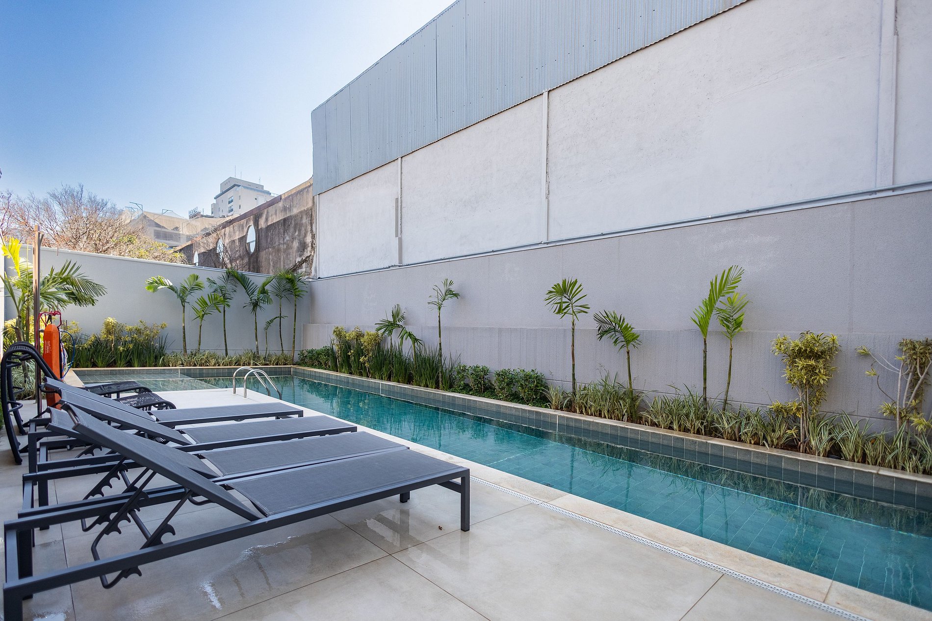 O prédio conta com portaria 24h, sistema de self check-in, acesso por elevadores e espaços de área comum que podem ser utilizados normalmente, como: academia, piscina e lavanderia compartilhada