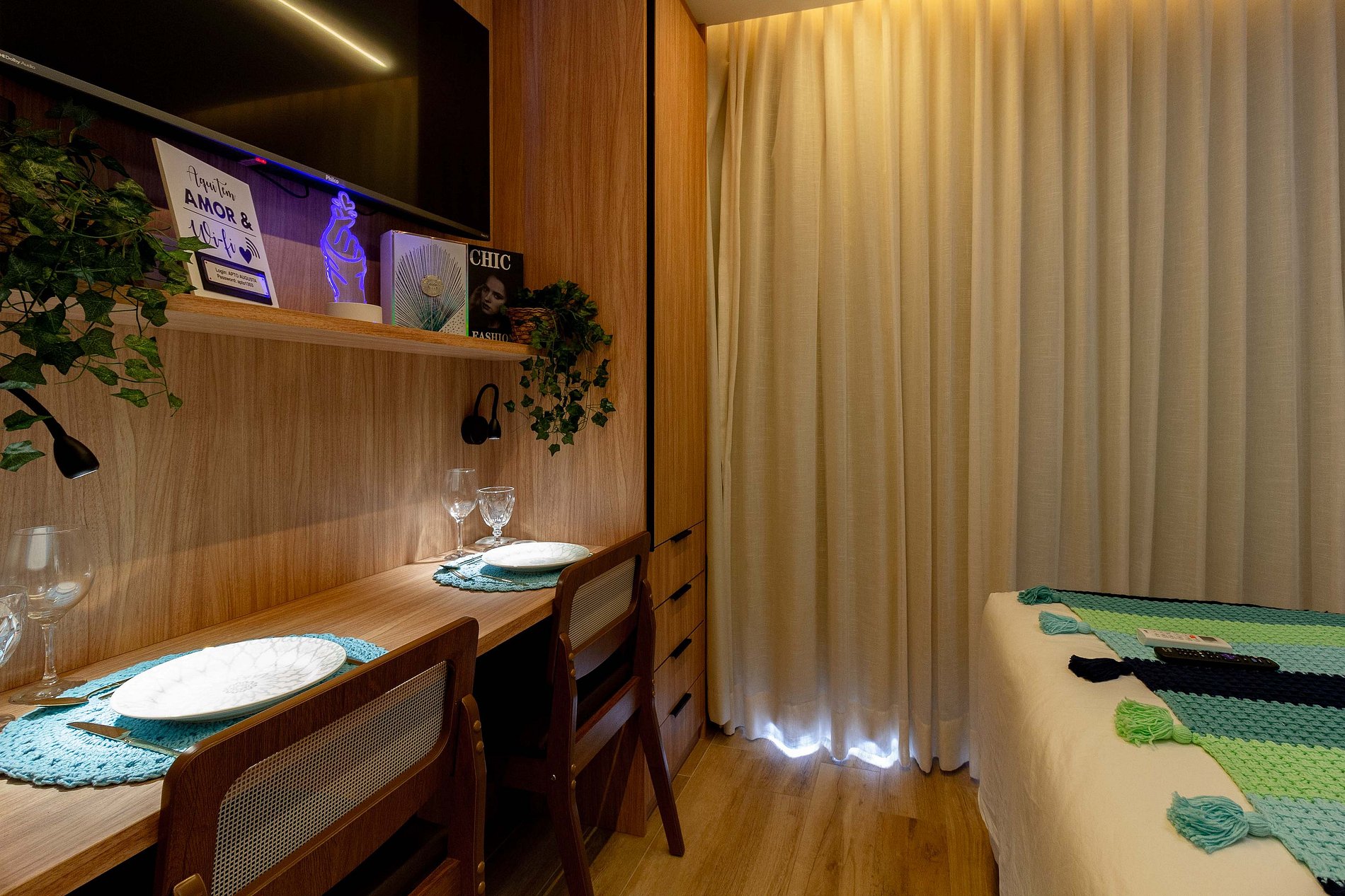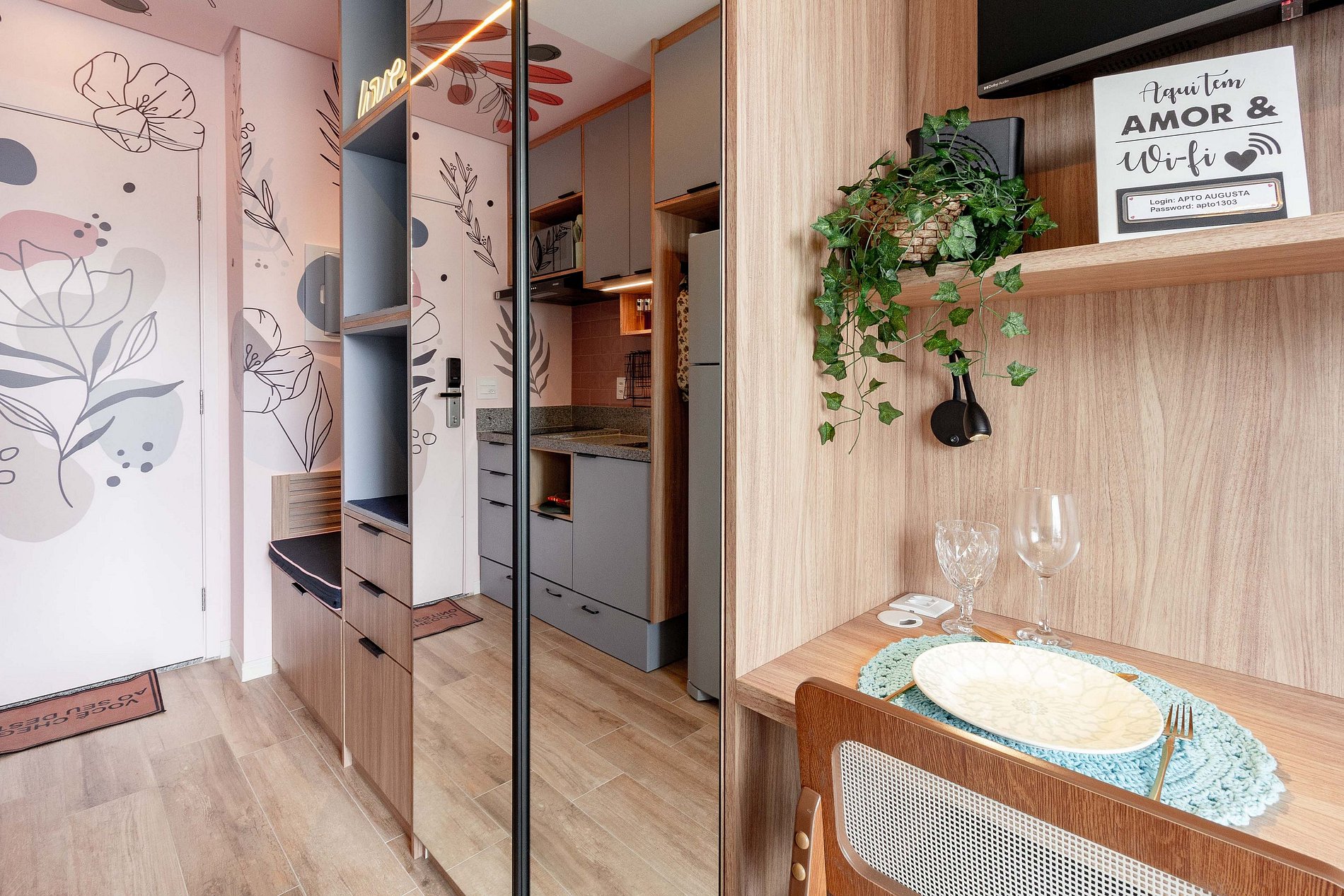 No dia do check-in iremos encaminhar: senha da fechadura eletrônica, dados do WI-FI e número do apartamento