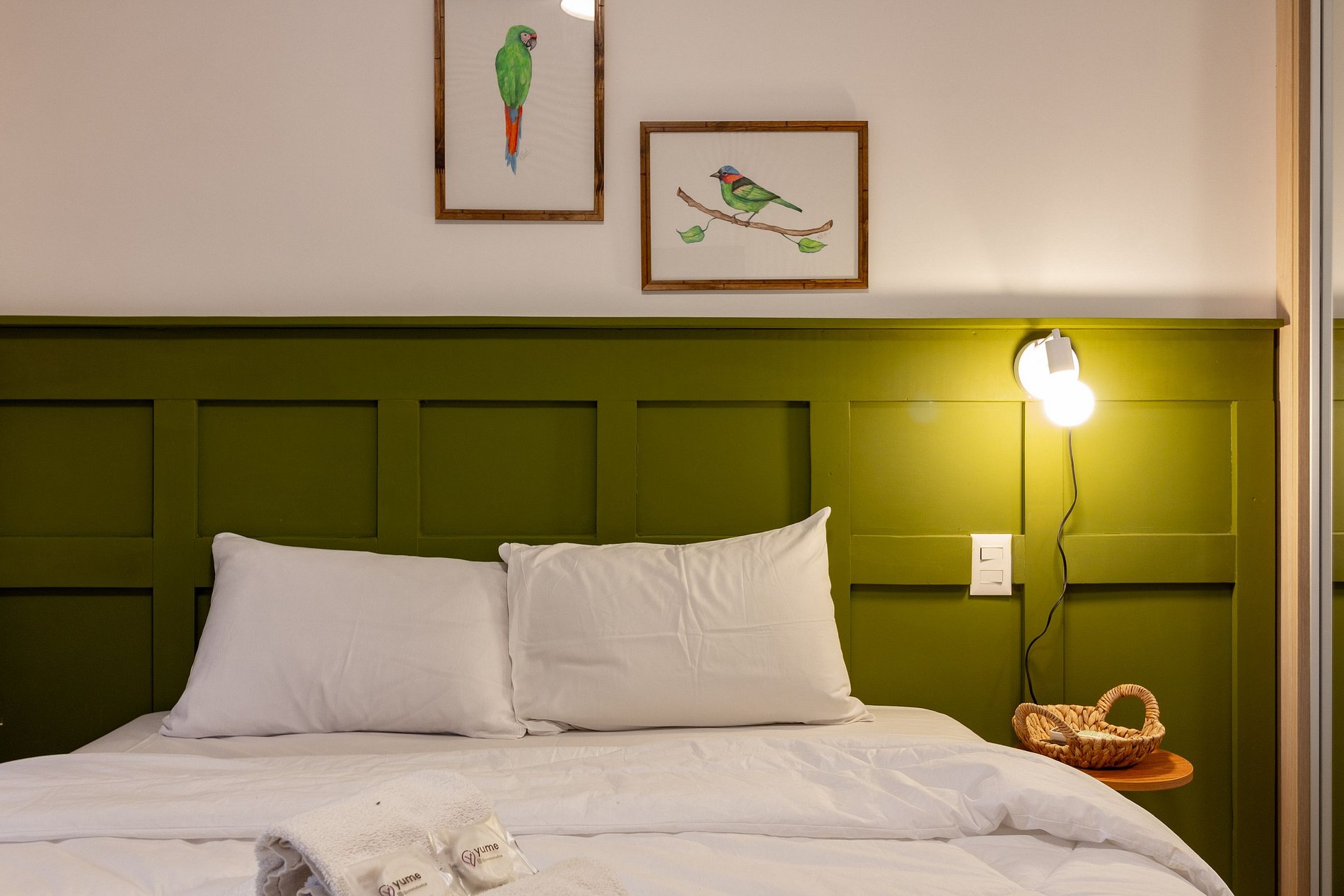 Este apartamento aconchegante oferece vista para áreas verdes, cama queen com enxoval premium, Wi-Fi, Smart TV e cozinha completa.