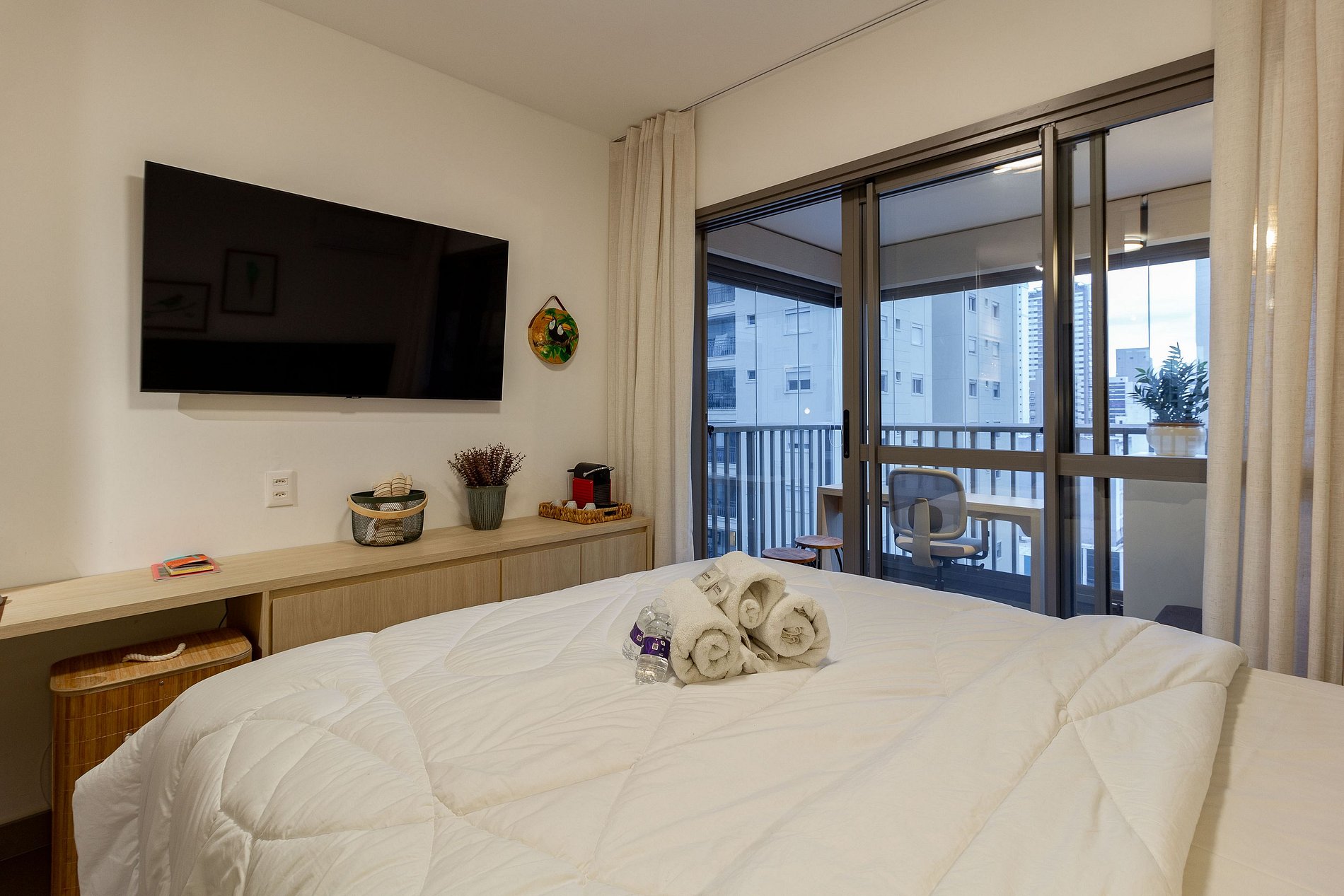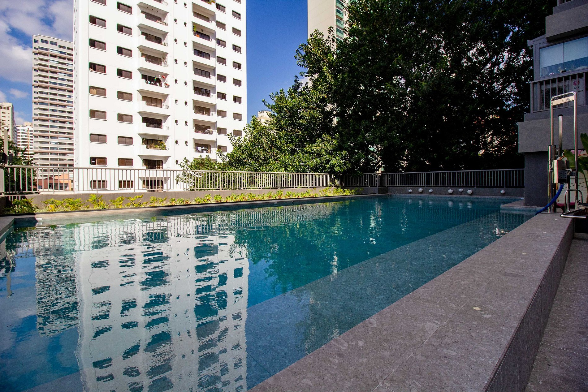 O prédio possui sistema de self check-in, portaria 24h, segurança e espaços de área comum que os hóspedes podem utilizar normalmente, como: academia, piscina, lavanderia compartilhada e coworking