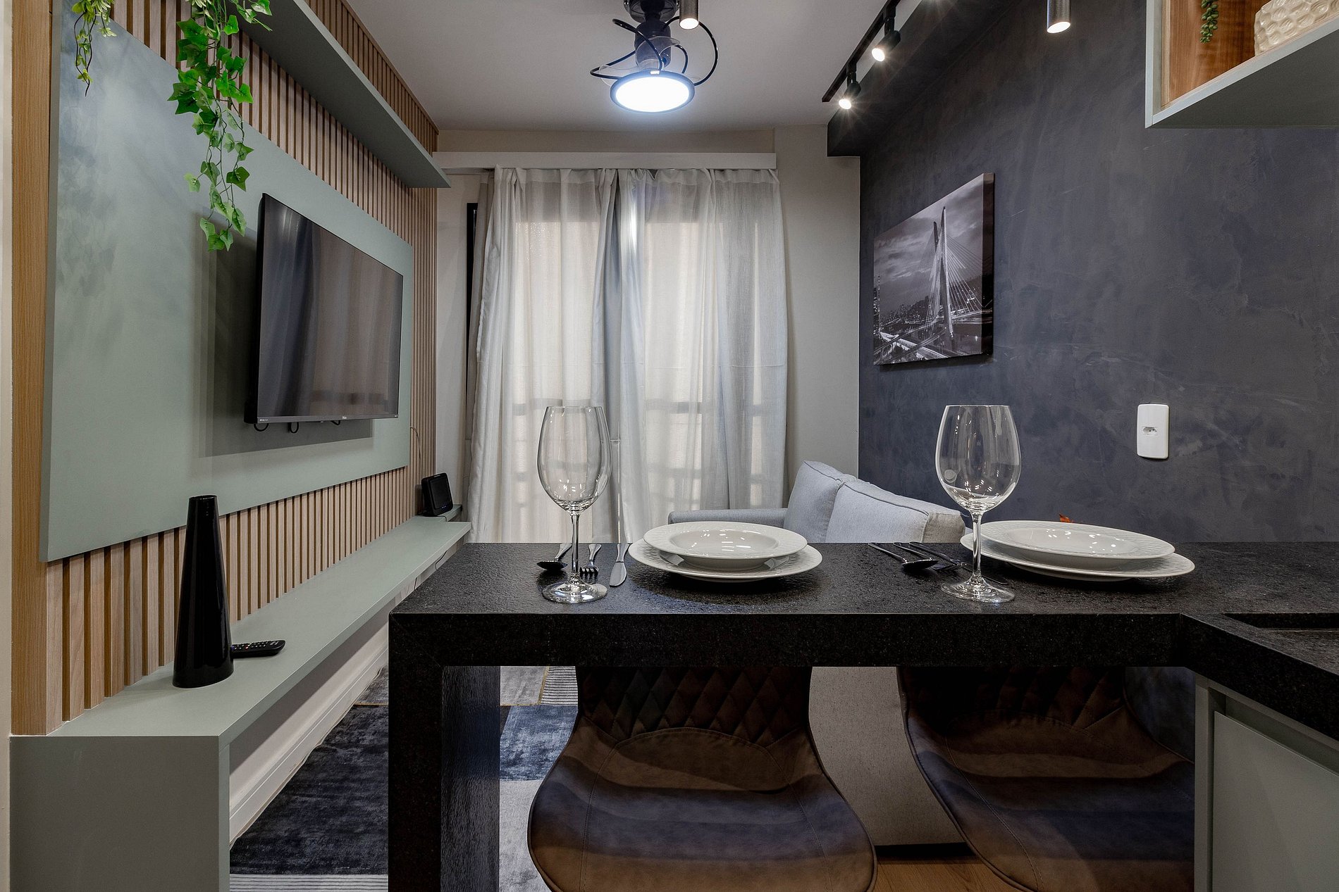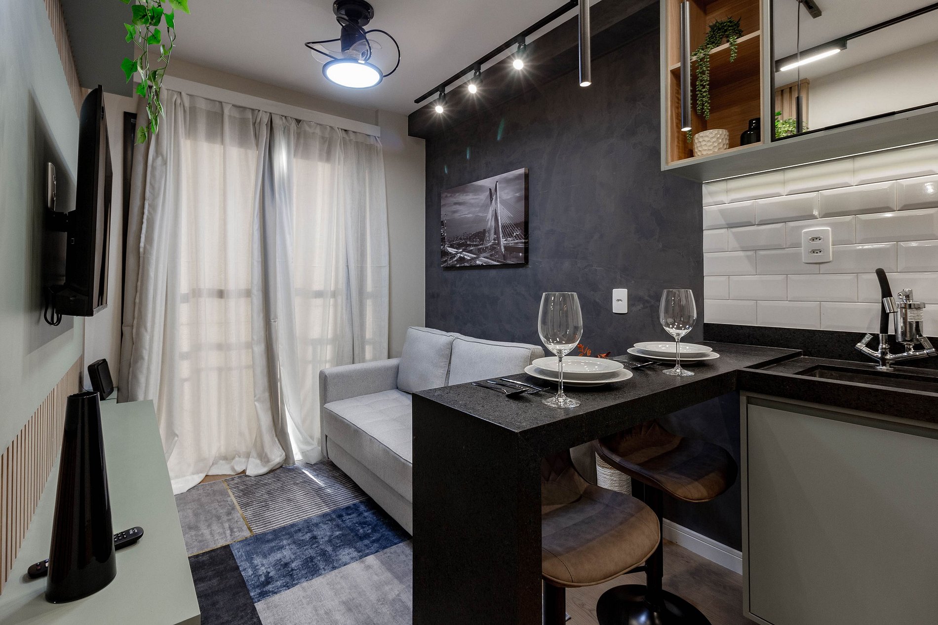 Apartamento moderno e encantador, projetado para quem busca conforto e sofisticação durante uma viagem a trabalho ou a passeio por SP.