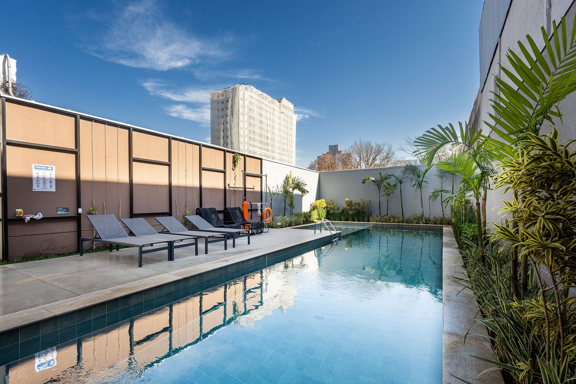 Contamos com portaria 24h, sistema de self check-in e espaços de área comum que os hóspedes podem utilizar normalmente, como: academia, piscina e lavanderia.