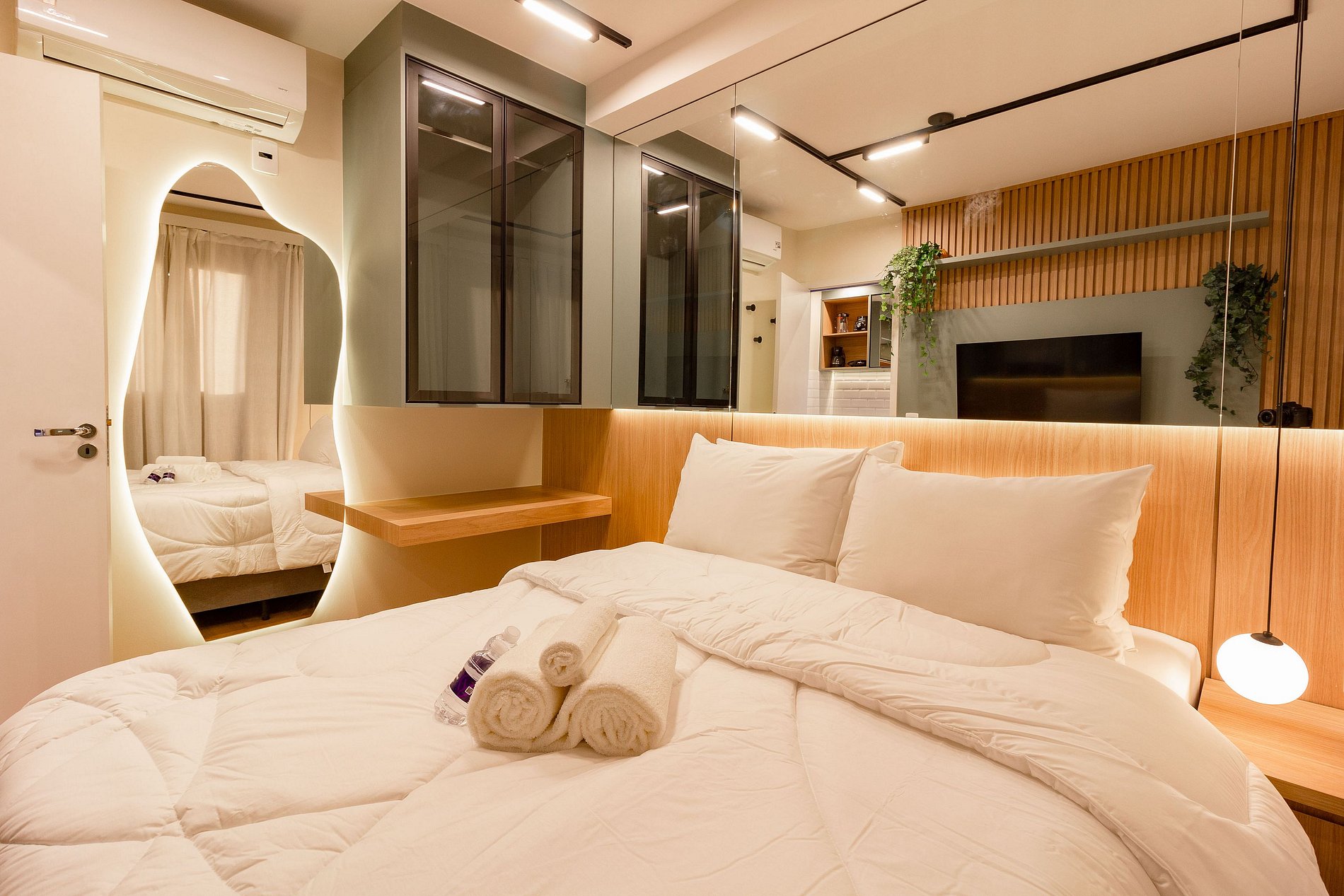 O apartamento é aconchegante e idêntico as fotos. Você encontrará um ambiente higienizado e idêntico as fotos com todas as amenidades que você merece para a sua estadia: cama confortável, roupa de cama e banho, ar condicionado, WI-FI, TV Smart, cozinha equipada e banheiro privativo com ducha de água quente.