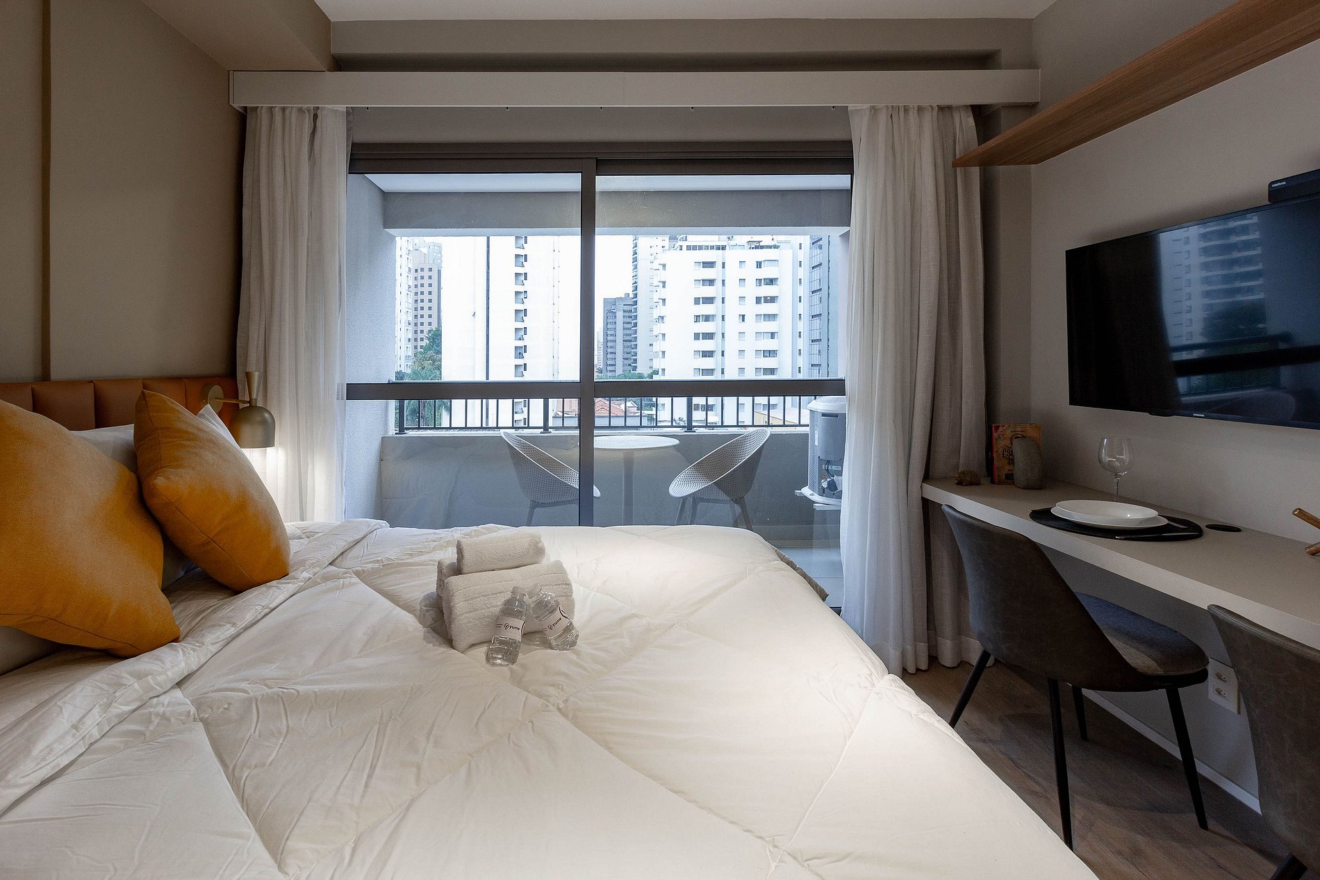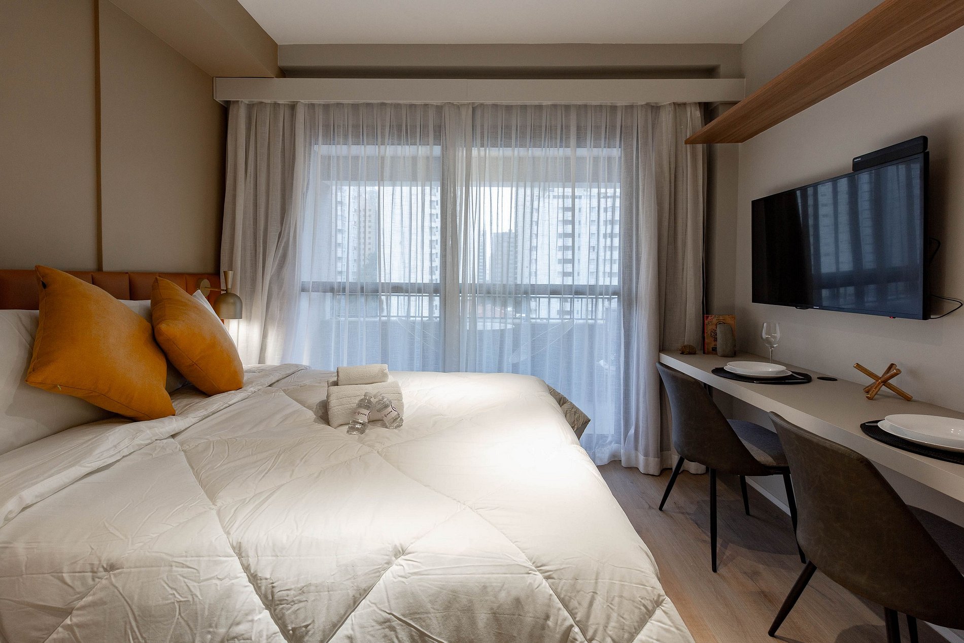 No dia do check-in será encaminhado: senha da fechadura eletrônica, dados do WI-FI e número do apartamento.