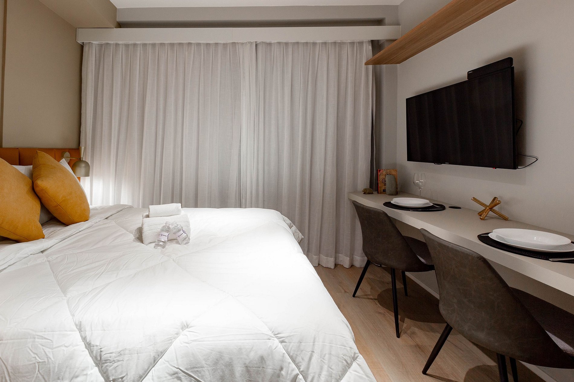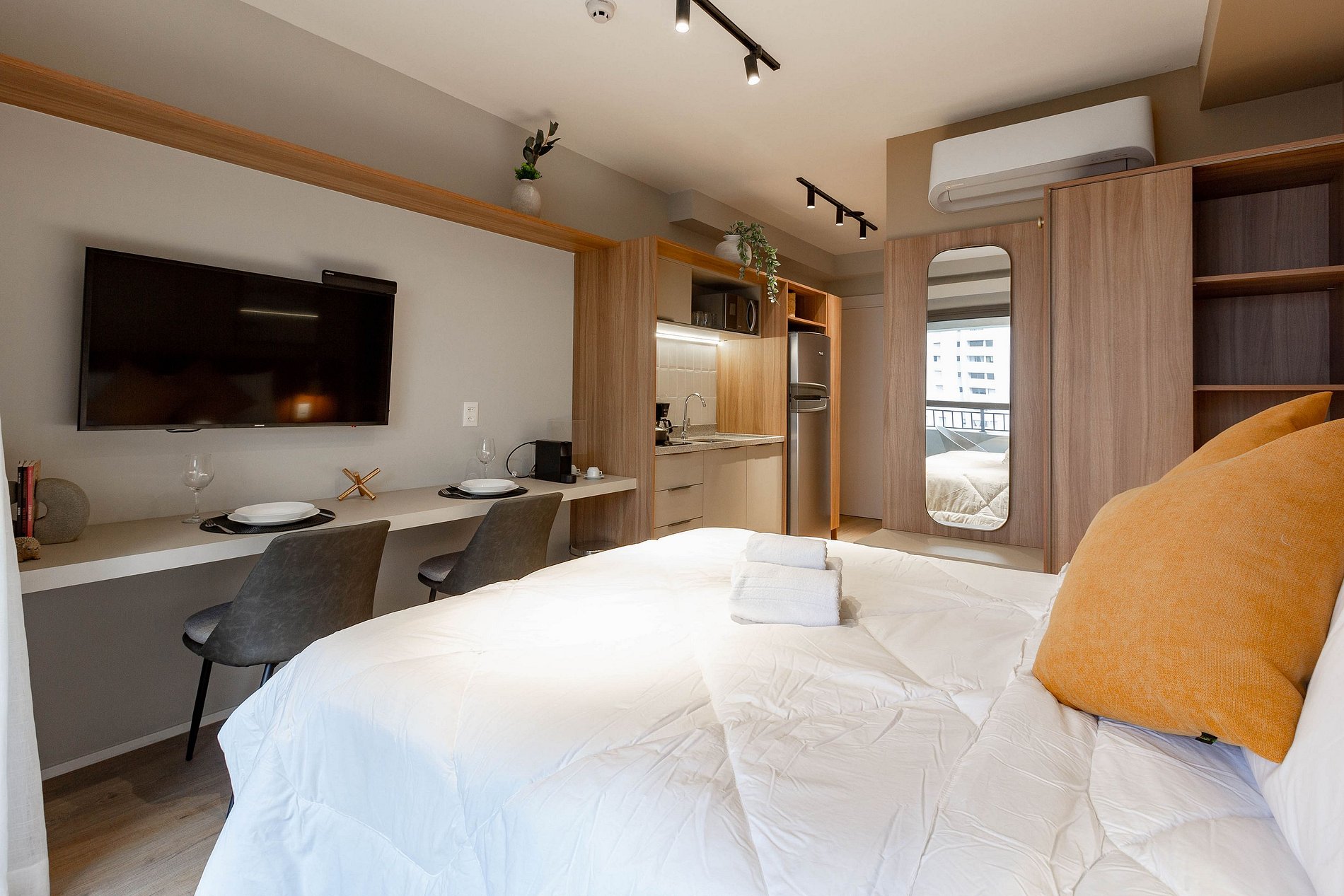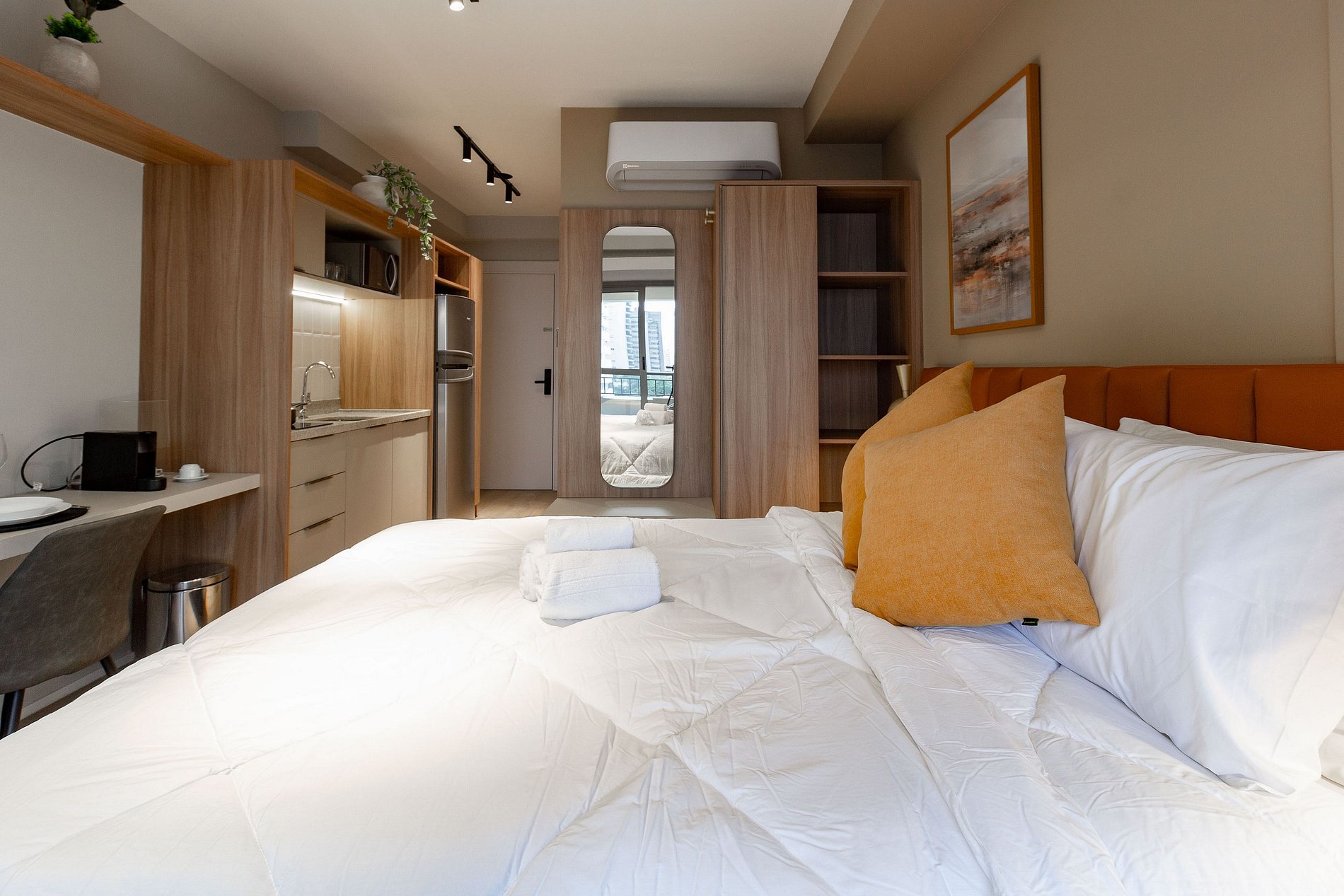 No apartamento você encontrará o conforto que merece. Será disponibilizado: roupa de cama, banho, edredom, travesseiros, ar condicionado, WI-FI, TV Smart, cozinha completa e banheiro privativo com ducha de água quente.
