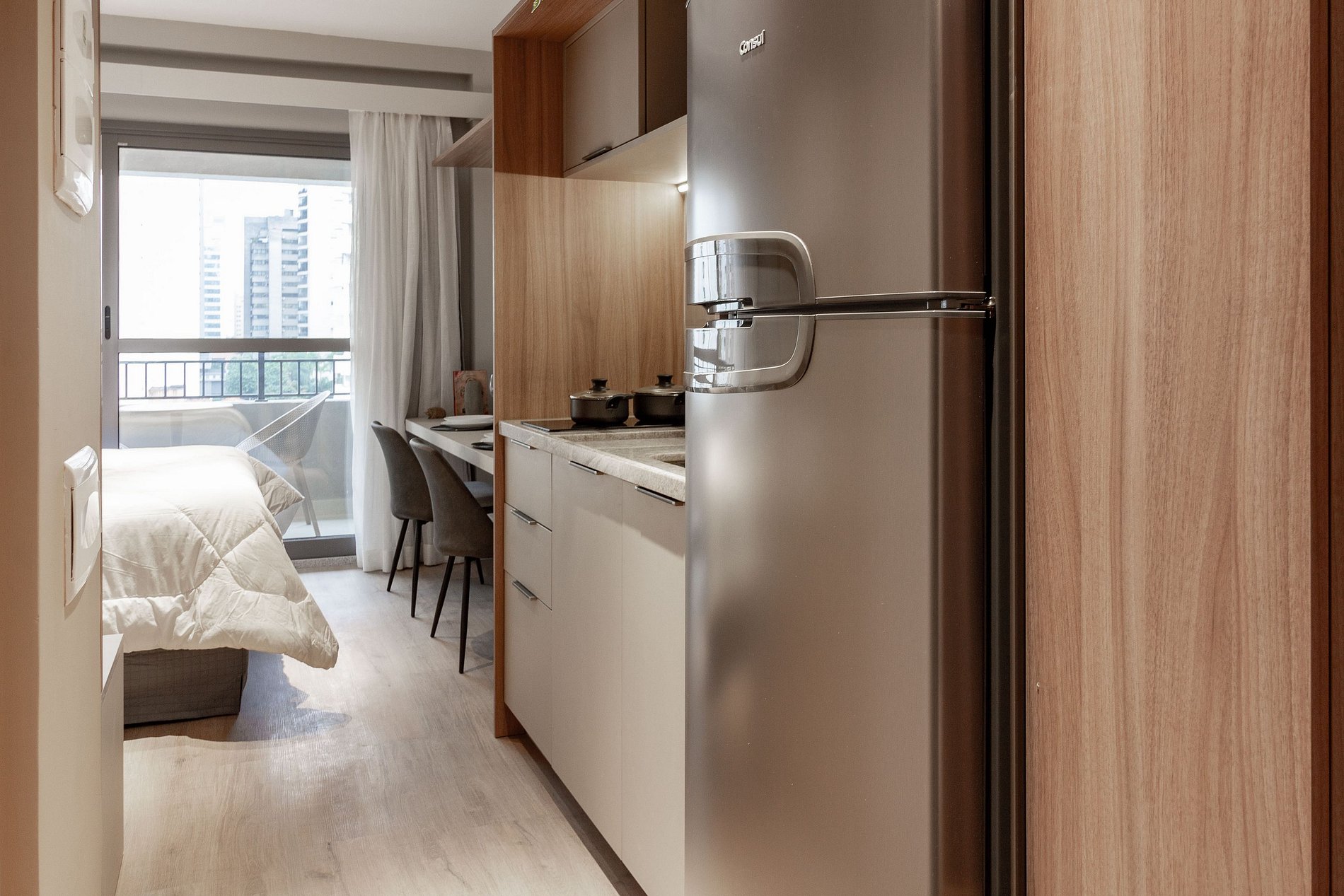 O prédio conta com portaria 24h, acesso por elevadores, sistema de self check-in e espaços de área comum, com: academia, piscina ao ar livre, lavanderia compartilhada e coworking