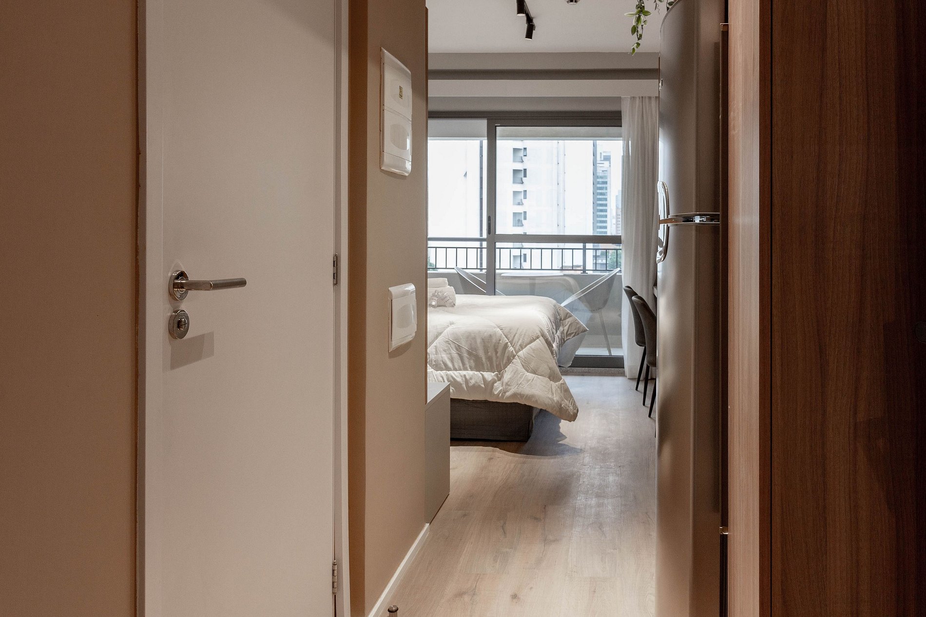 No dia do check-in será encaminhado: senha da fechadura eletrônica, dados do WI-FI e número do apartamento.