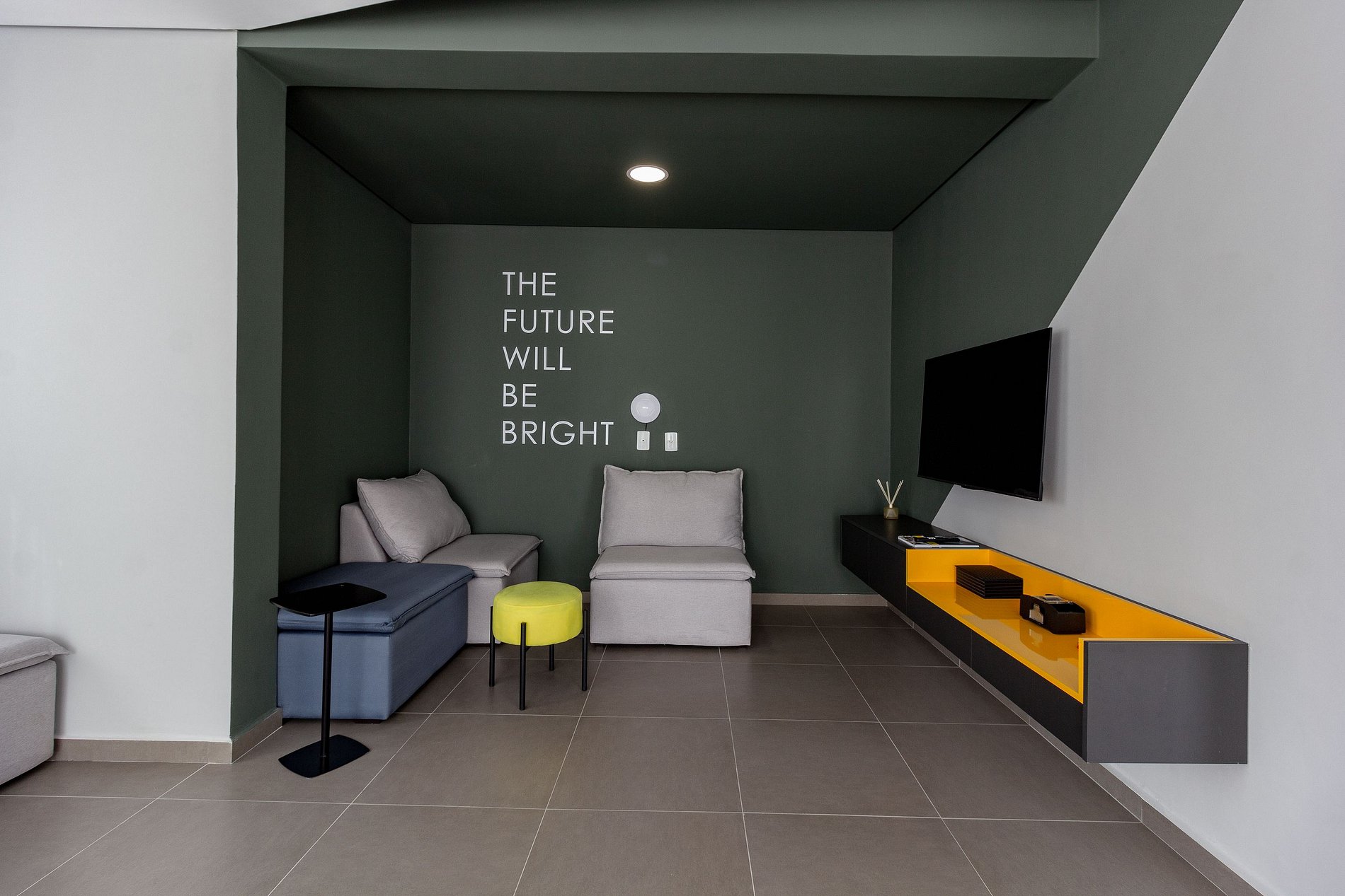 Área de estar com sofá/cadeira