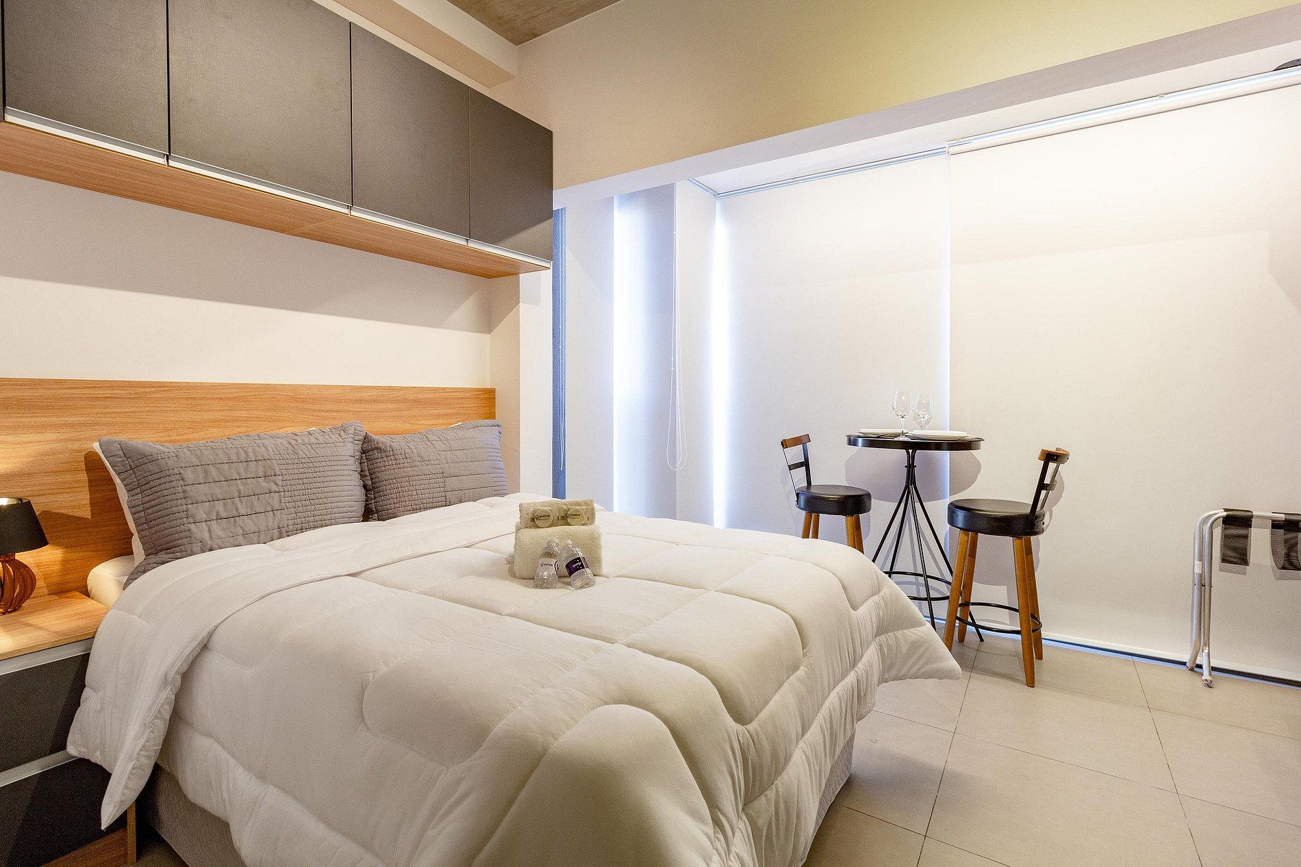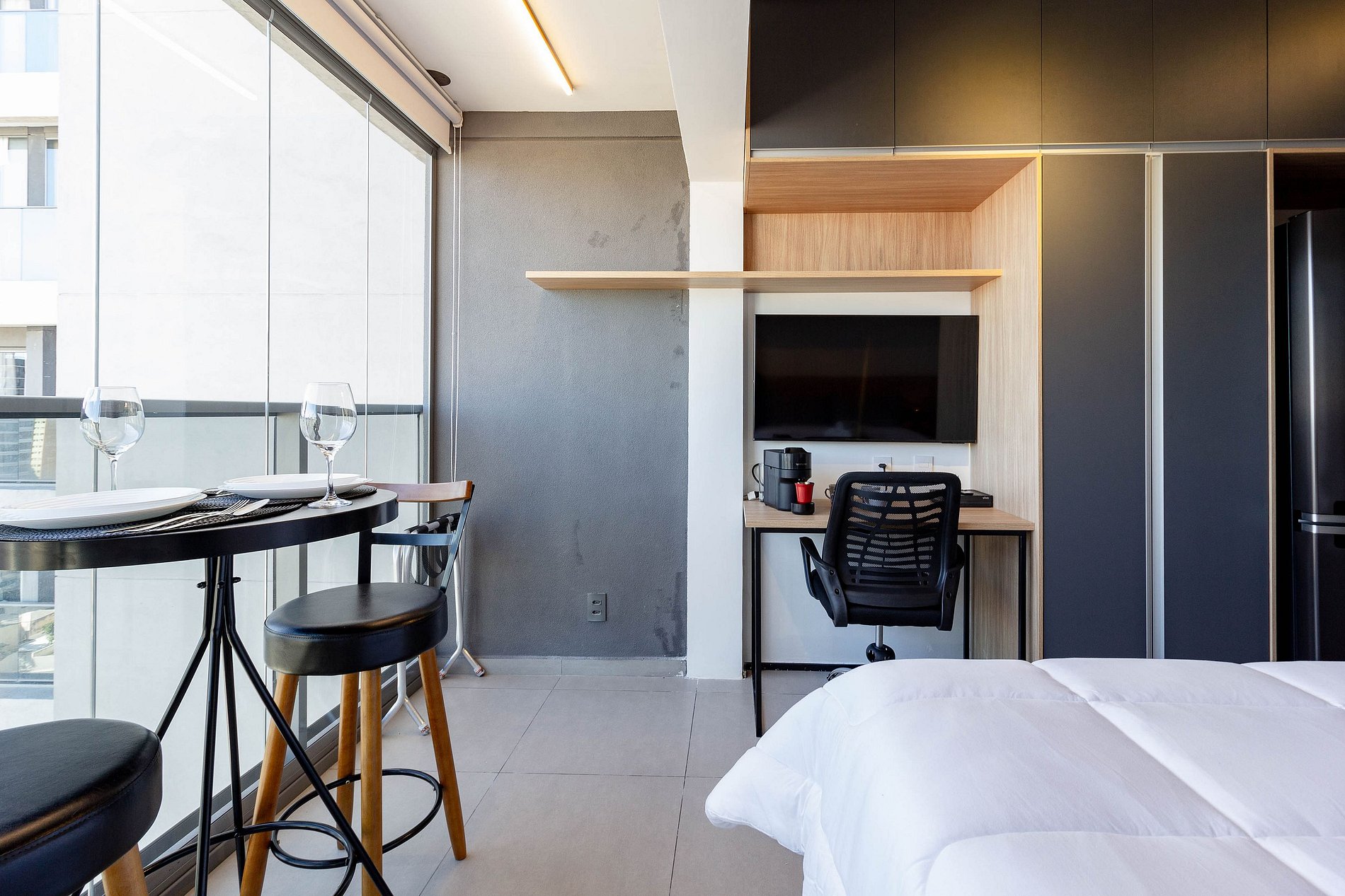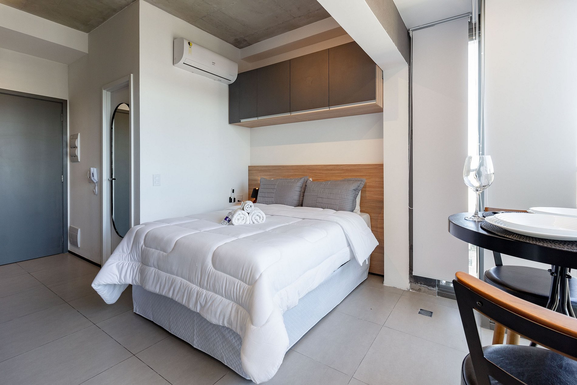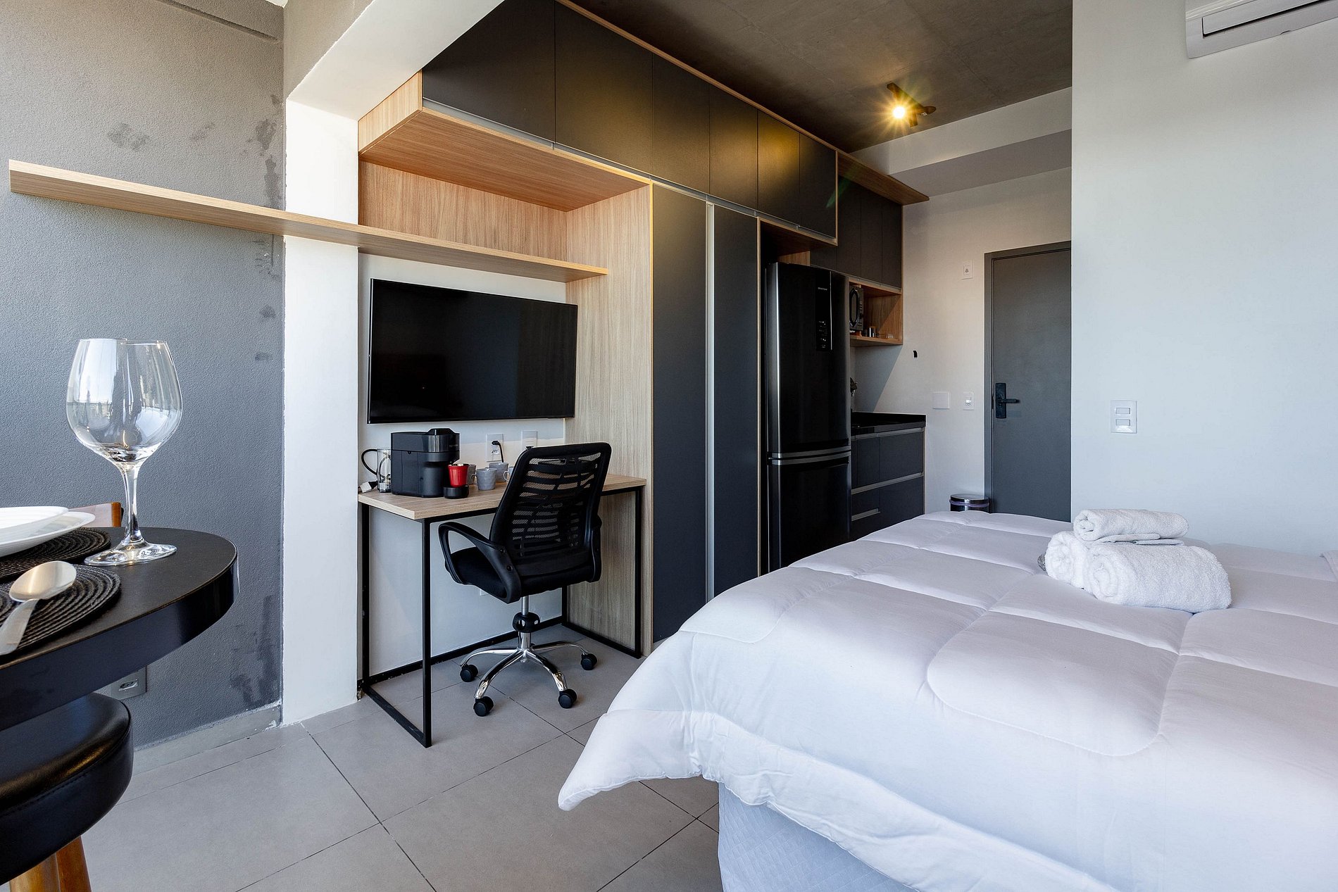 O apartamento estará limpo e é idêntico as fotos: cama confortável, travesseiros, WI-FI, TV Smart, ar condicionado, cozinha equipada e banheiro privativo.