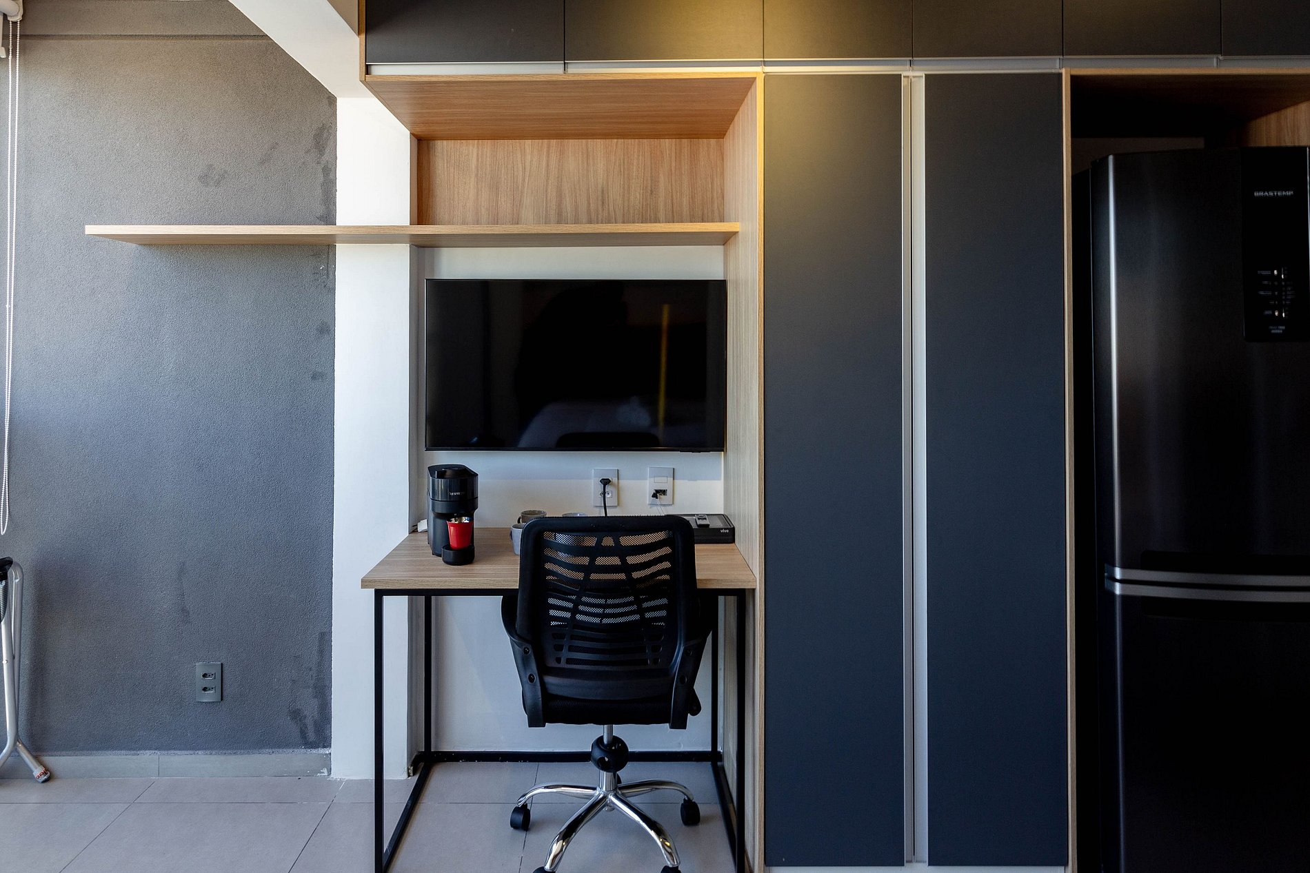 O prédio conta com portaria 24h, sistema de self check-in, elevadores e espaços de área comum, como: academia, piscina, lavanderia e espaço de trabalho.