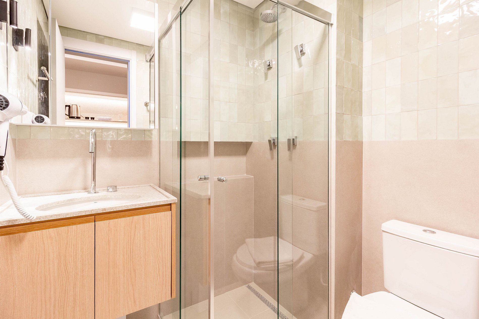 Hóspedes poderão utilizar os espaços de área comum do prédio normalmente, como: academia, piscina, lavanderia e espaço de trabalho.