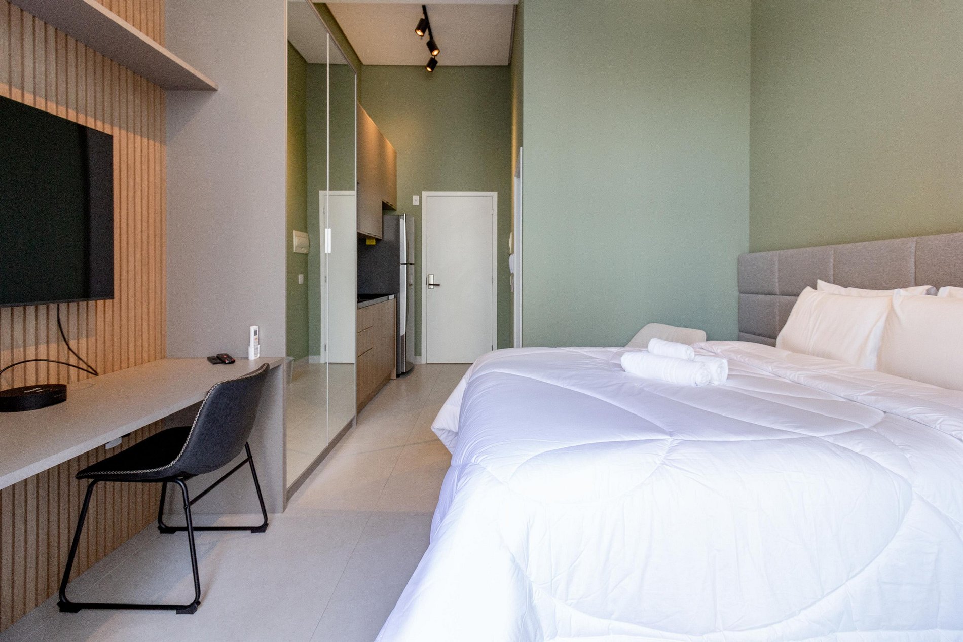 No dia da sua chegada, você receberá tudo por mensagem: a senha da fechadura eletrônica, a senha do Wi-Fi e o número do seu apartamento. Tudo pronto para você chegar e se sentir em casa!