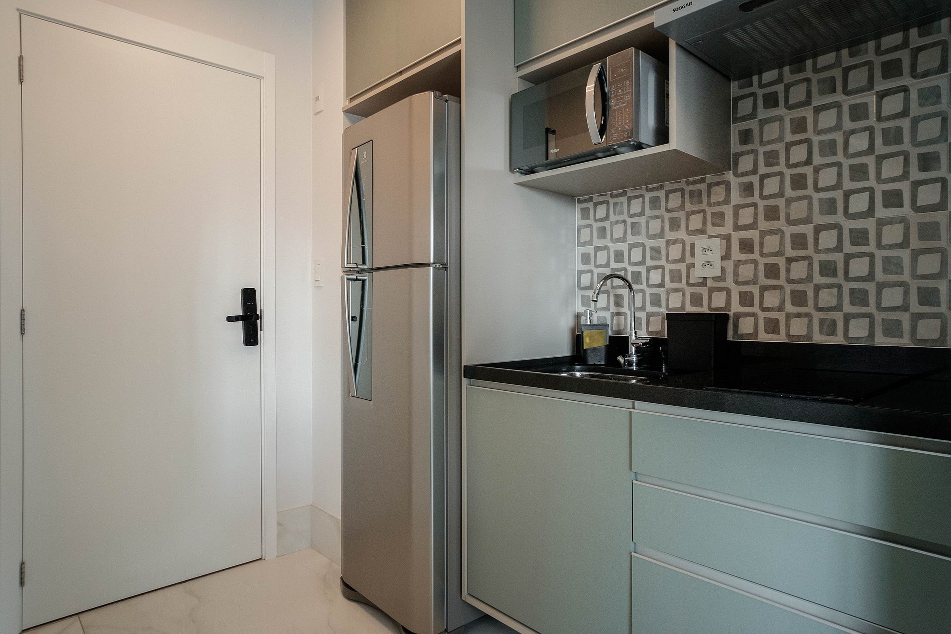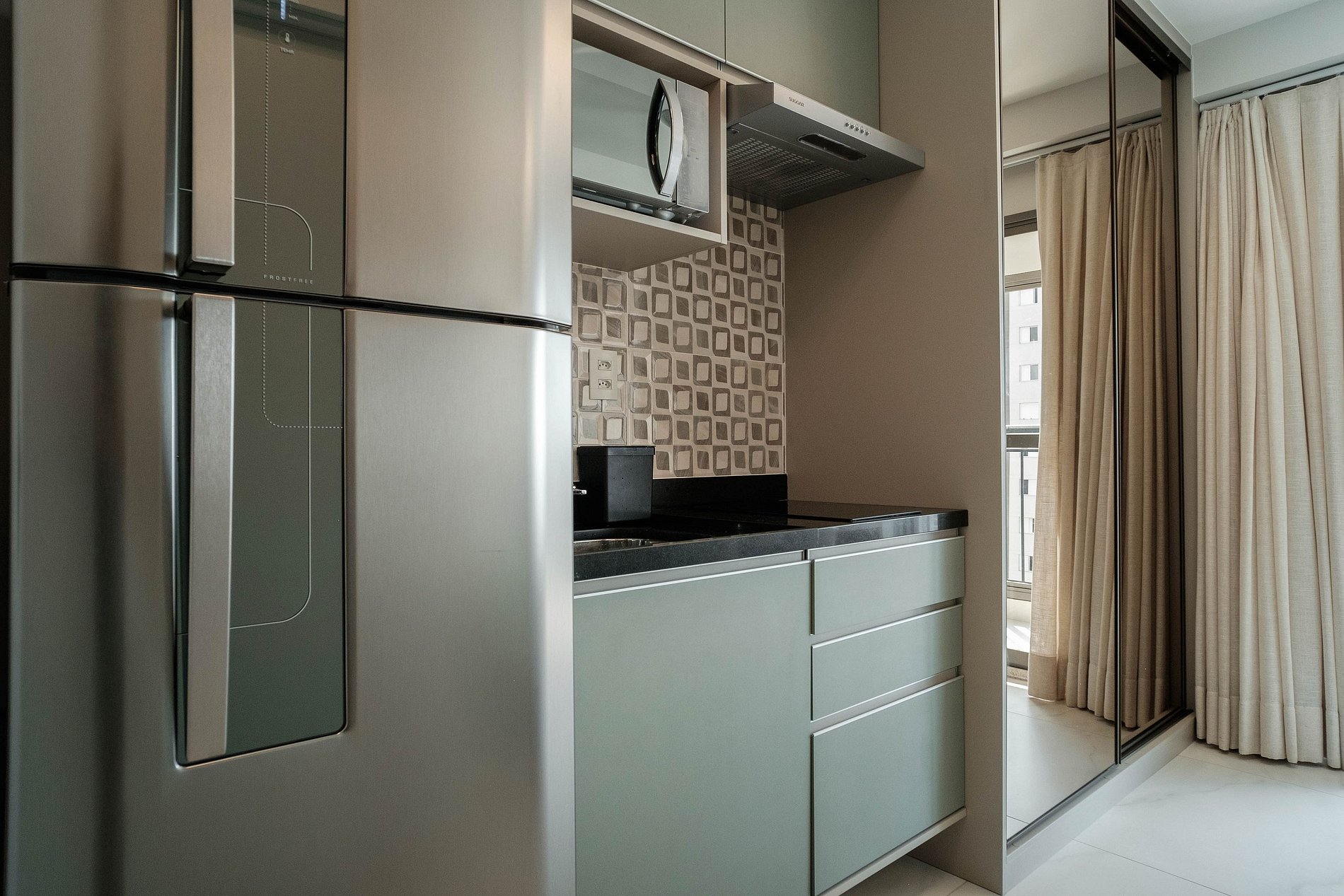 Apto c/ varanda completo em Moema e self check-in